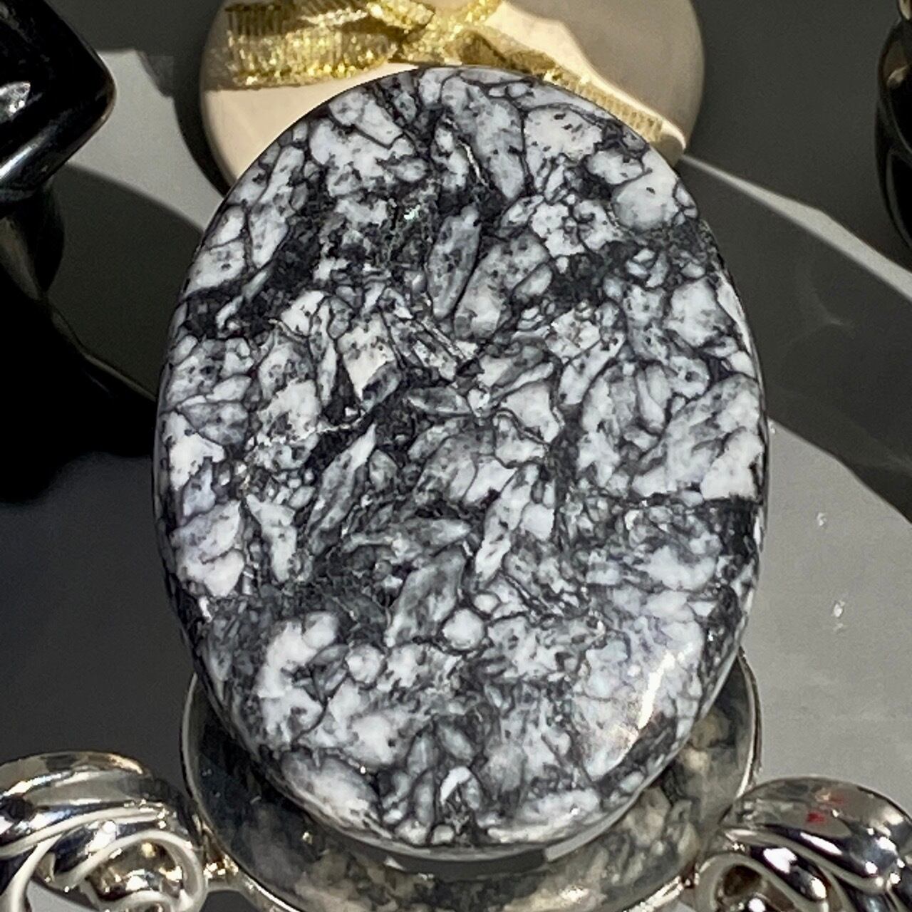 欧州オーストリアの限られた鉱山でしか採掘されないため、非常に流通量が少ないピノリス(ピノライト)のパームストーンなります