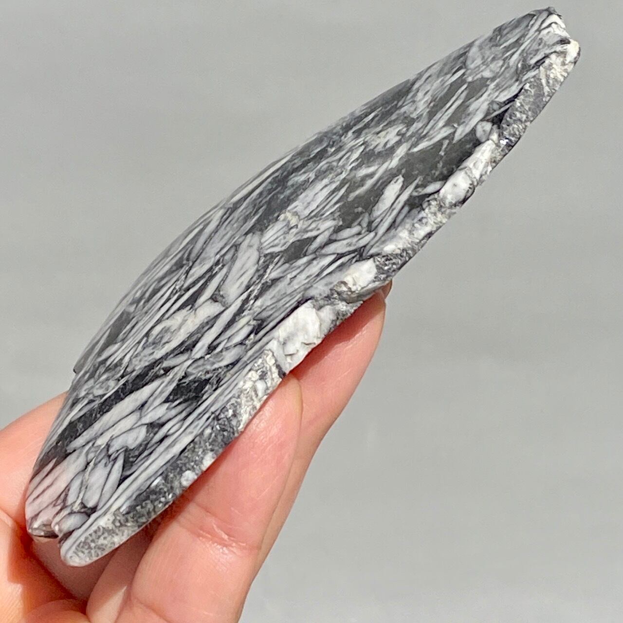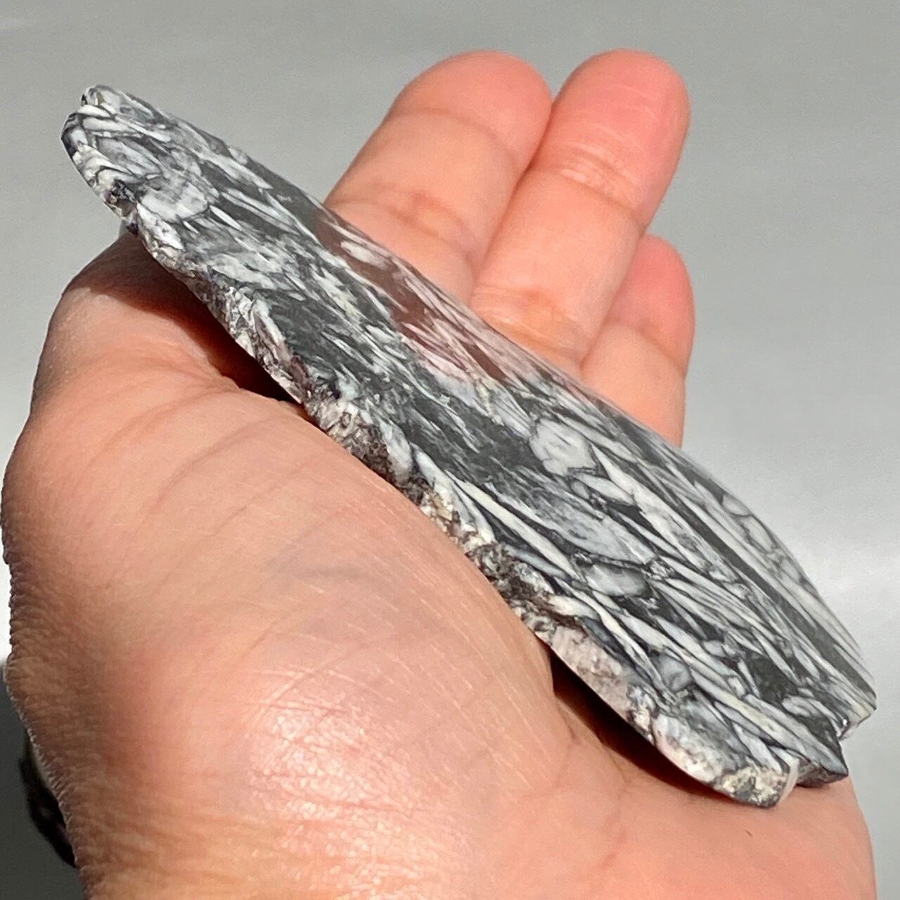 まるで、鉛筆で描かれたモノクロのデッサンの様!手で鉛筆の線をぼやかしたようなタッチまでもが芸術的で、自然の偉大さとこの石の魅力を感じます。