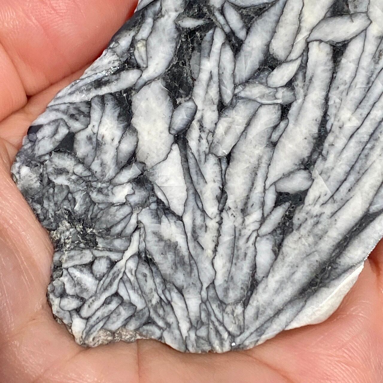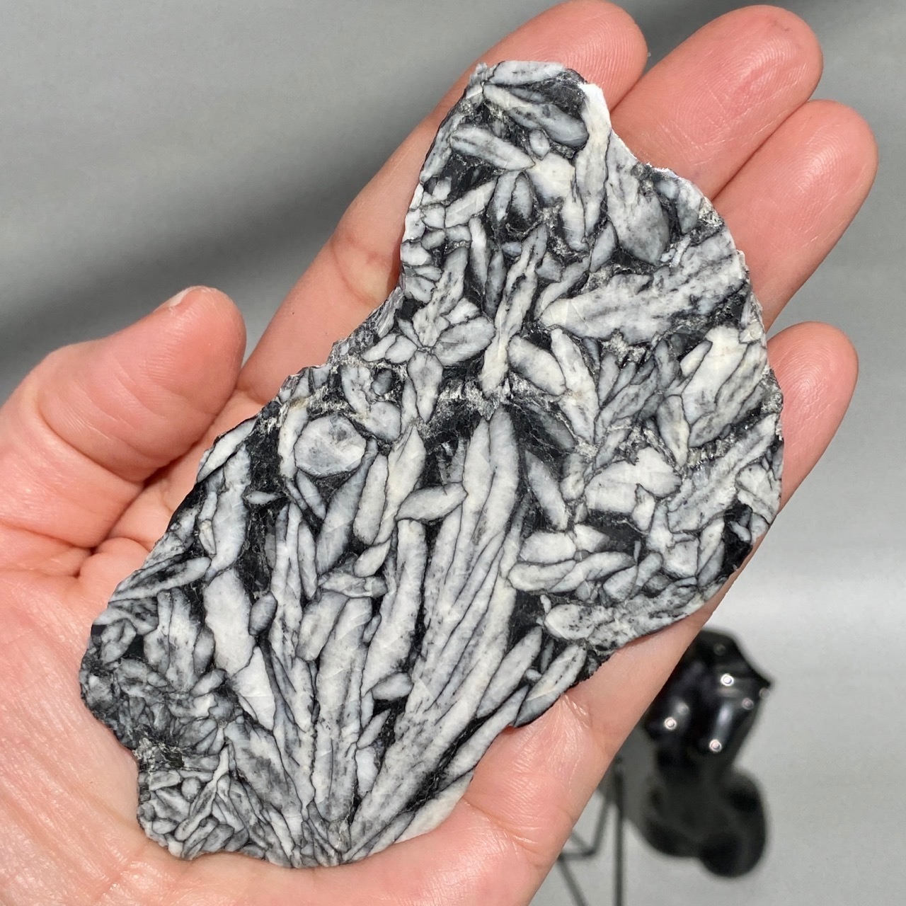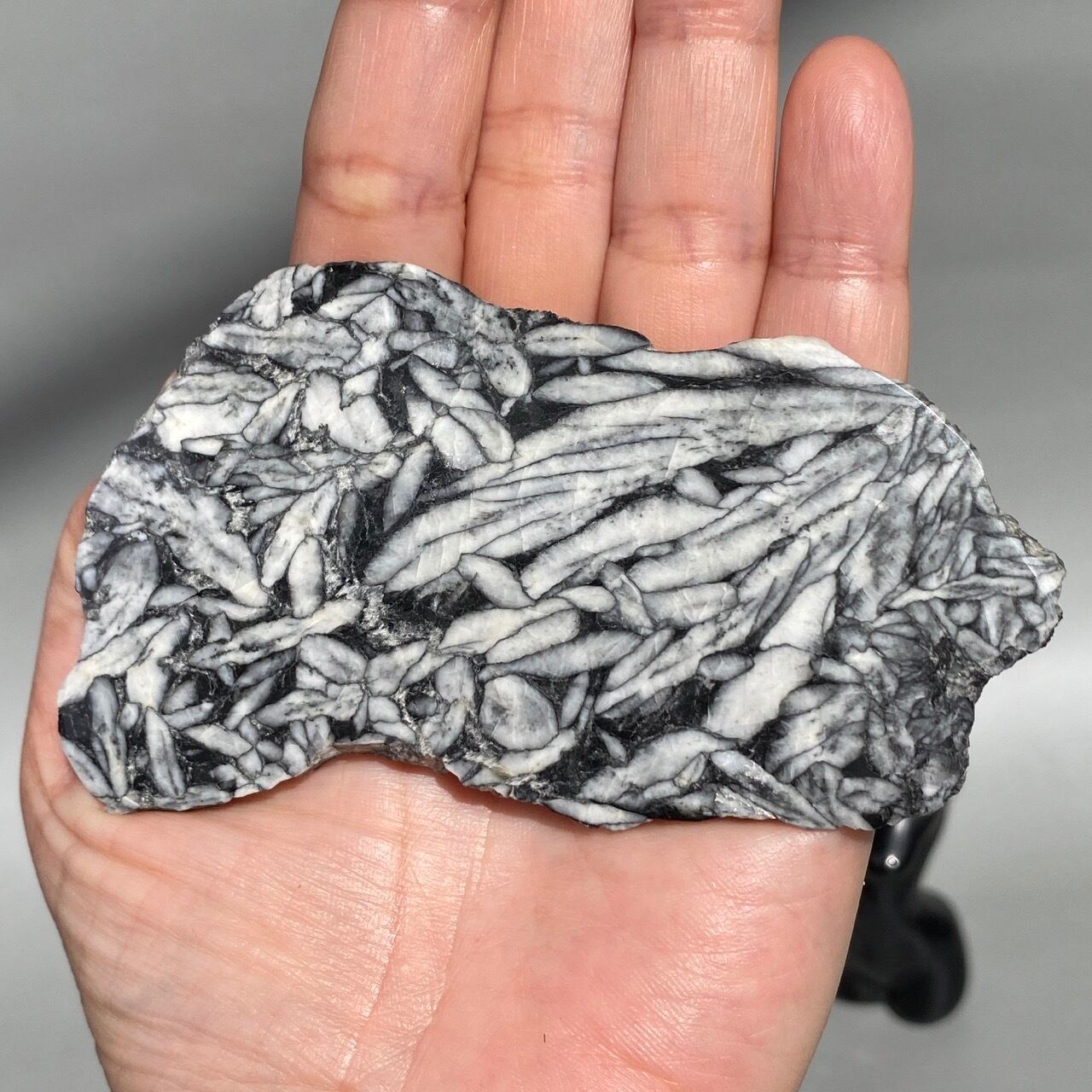 まるで、鉛筆で描かれたモノクロのデッサンの様!手で鉛筆の線をぼやかしたようなタッチまでもが芸術的で、自然の偉大さとこの石の魅力を感じます。