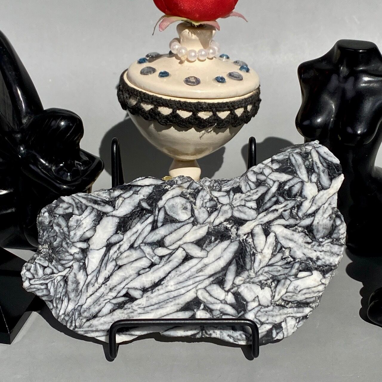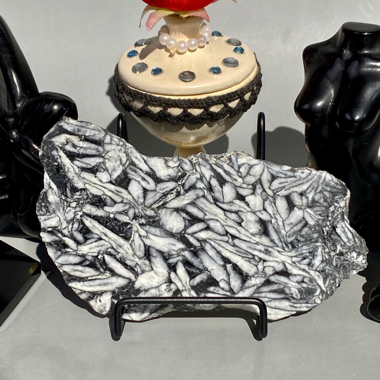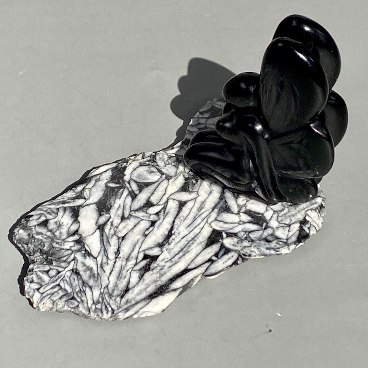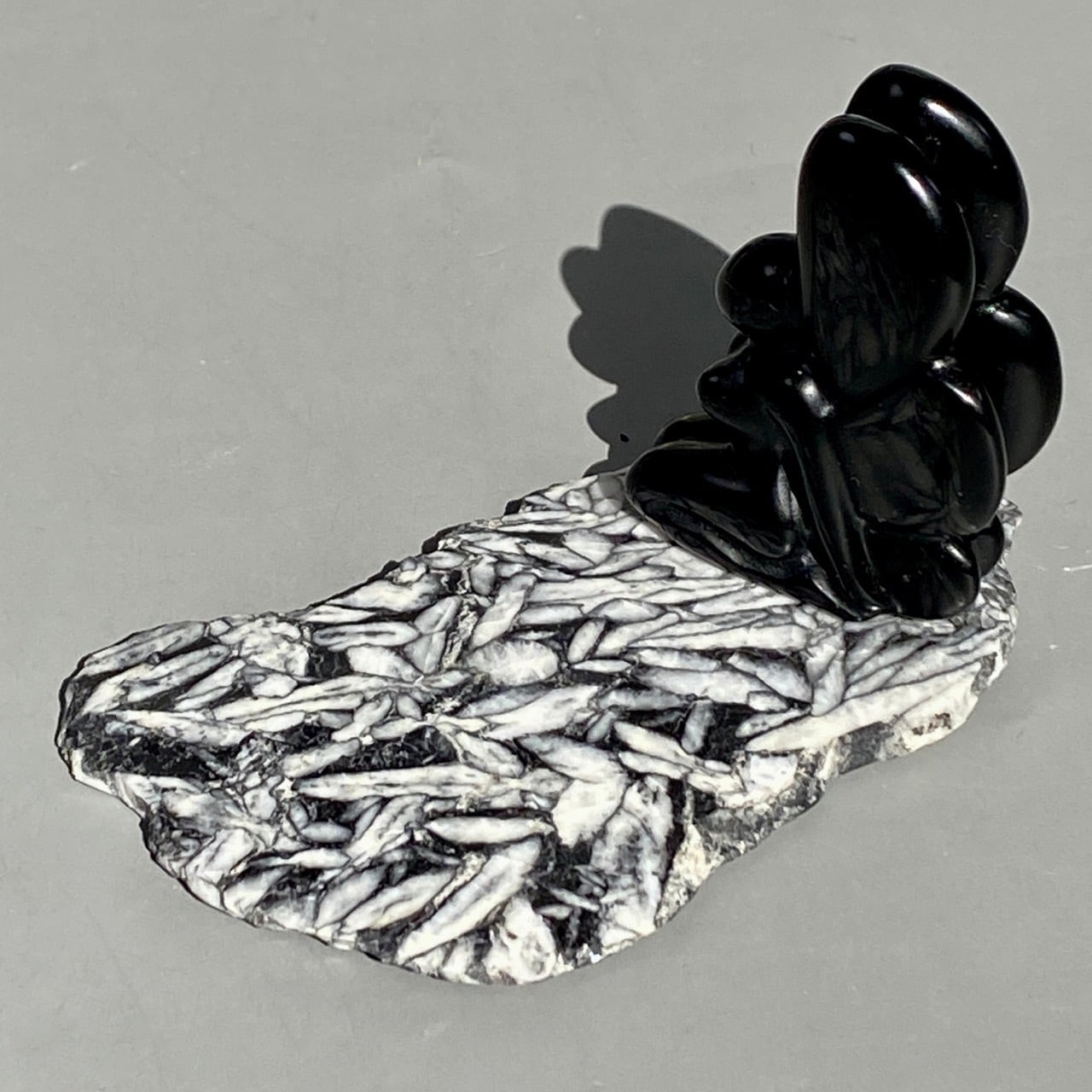 まるで、鉛筆で描かれたモノクロのデッサンの様!手で鉛筆の線をぼやかしたようなタッチまでもが芸術的で、自然の偉大さとこの石の魅力を感じます。