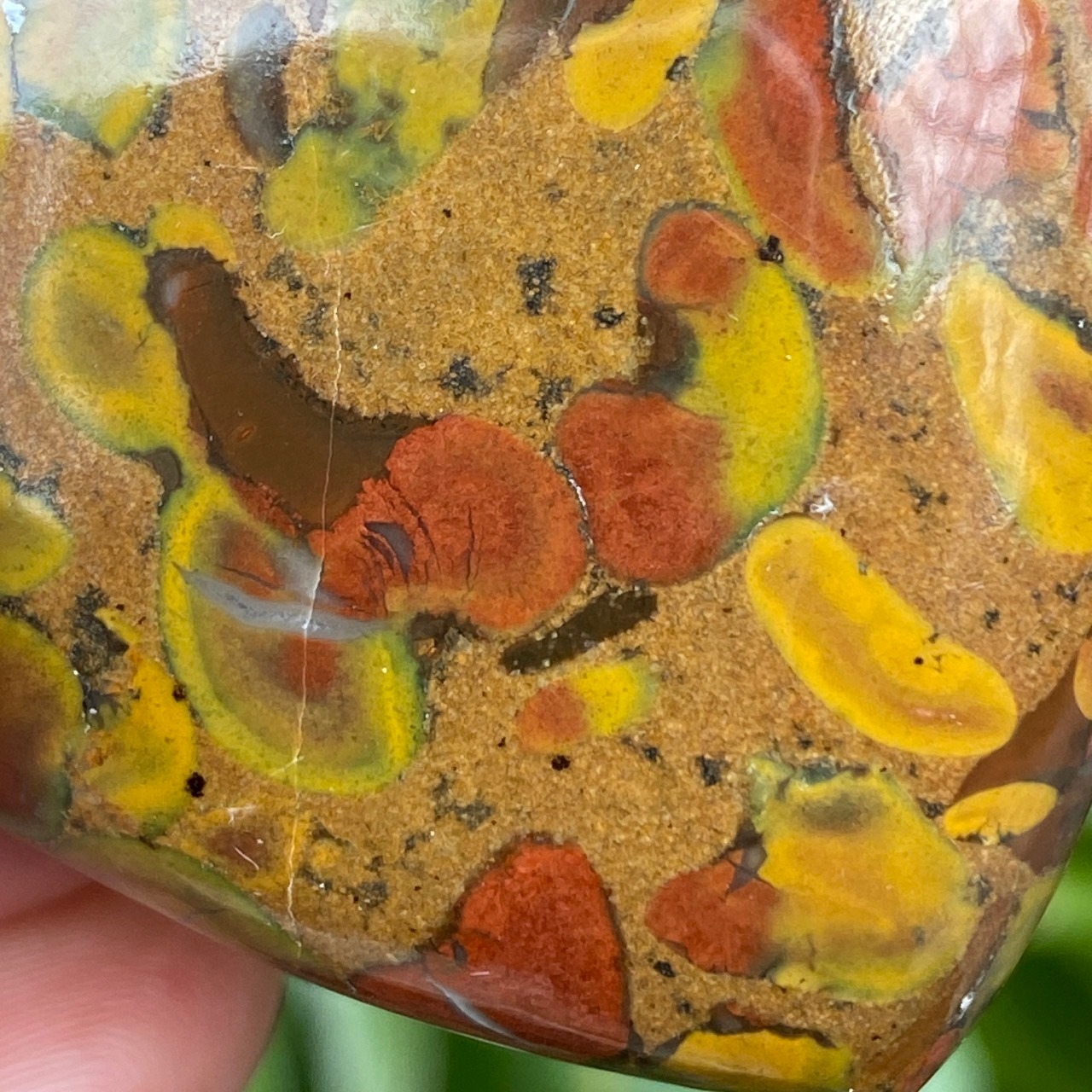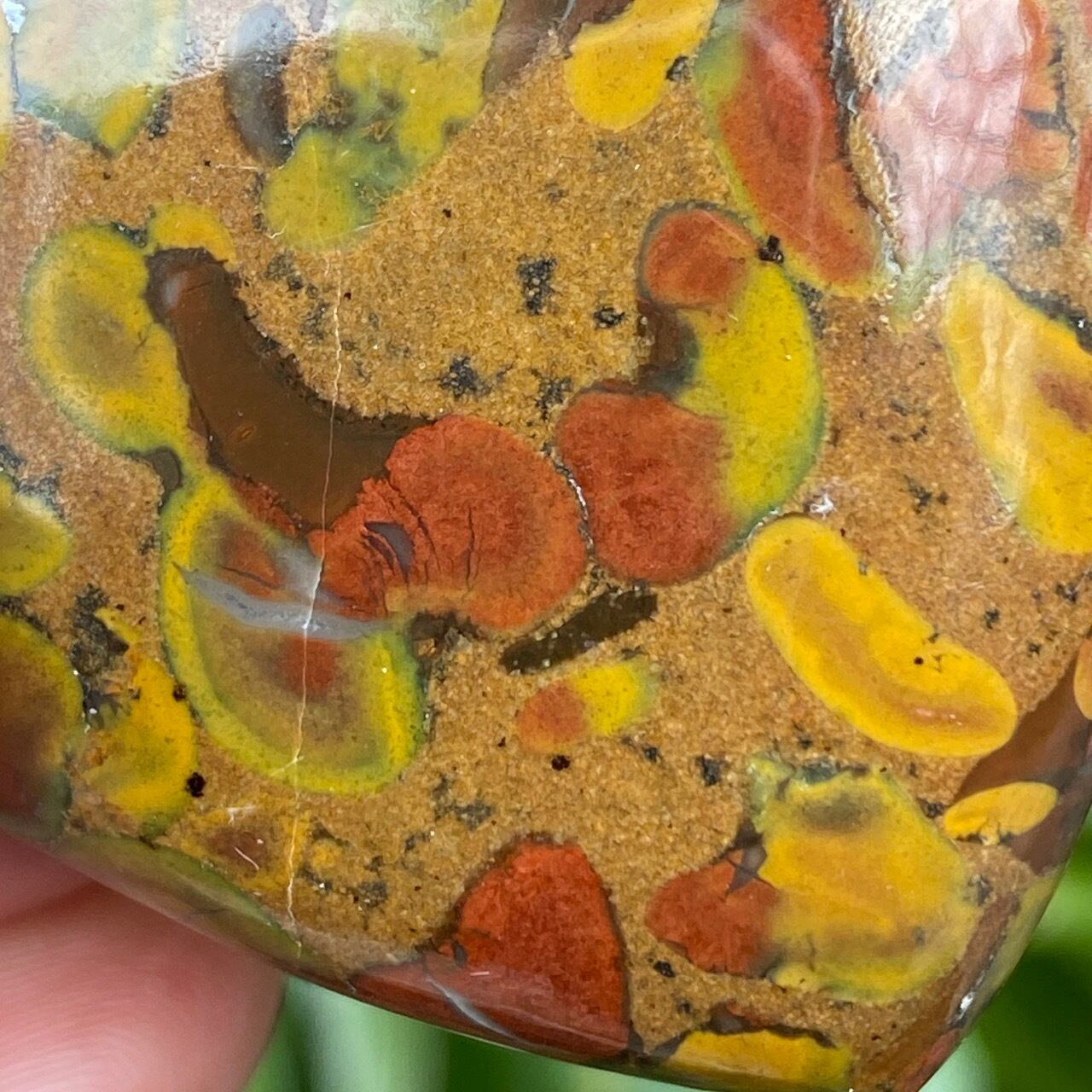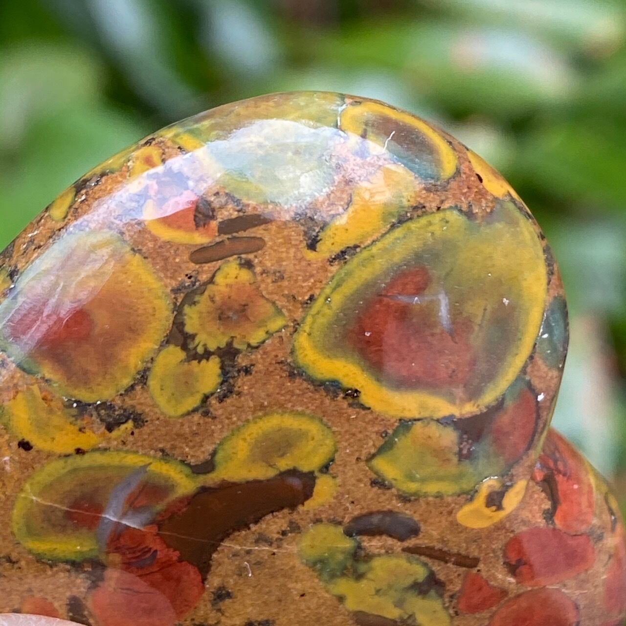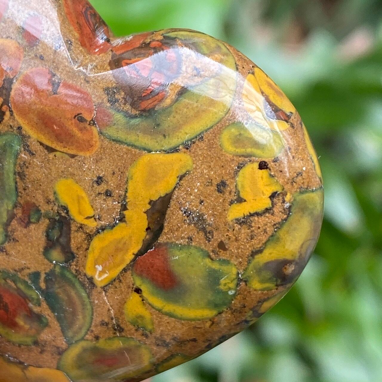黄土色のベースに赤や黄色、そして緑などのフルーツの模様が見られる、とてもユニークな石で、店主の大好きなジャスパーの内の1つです。
