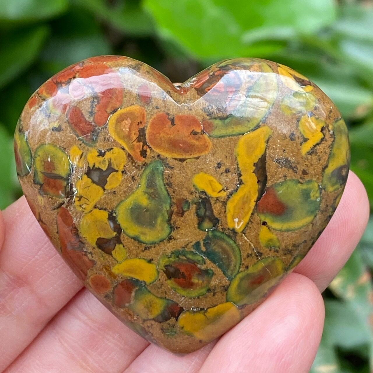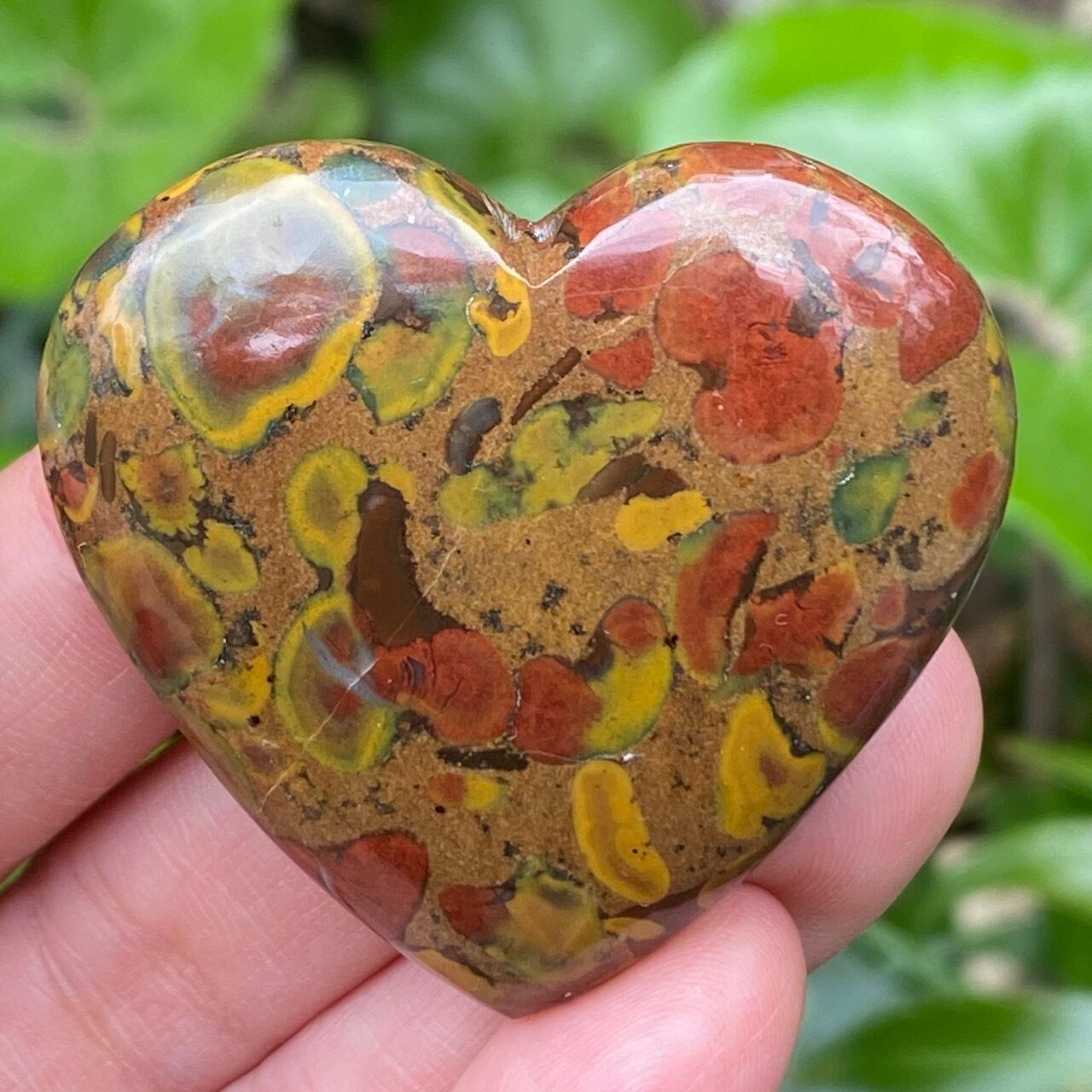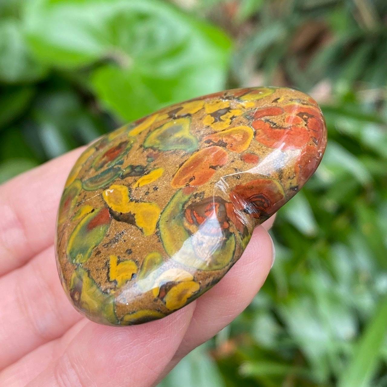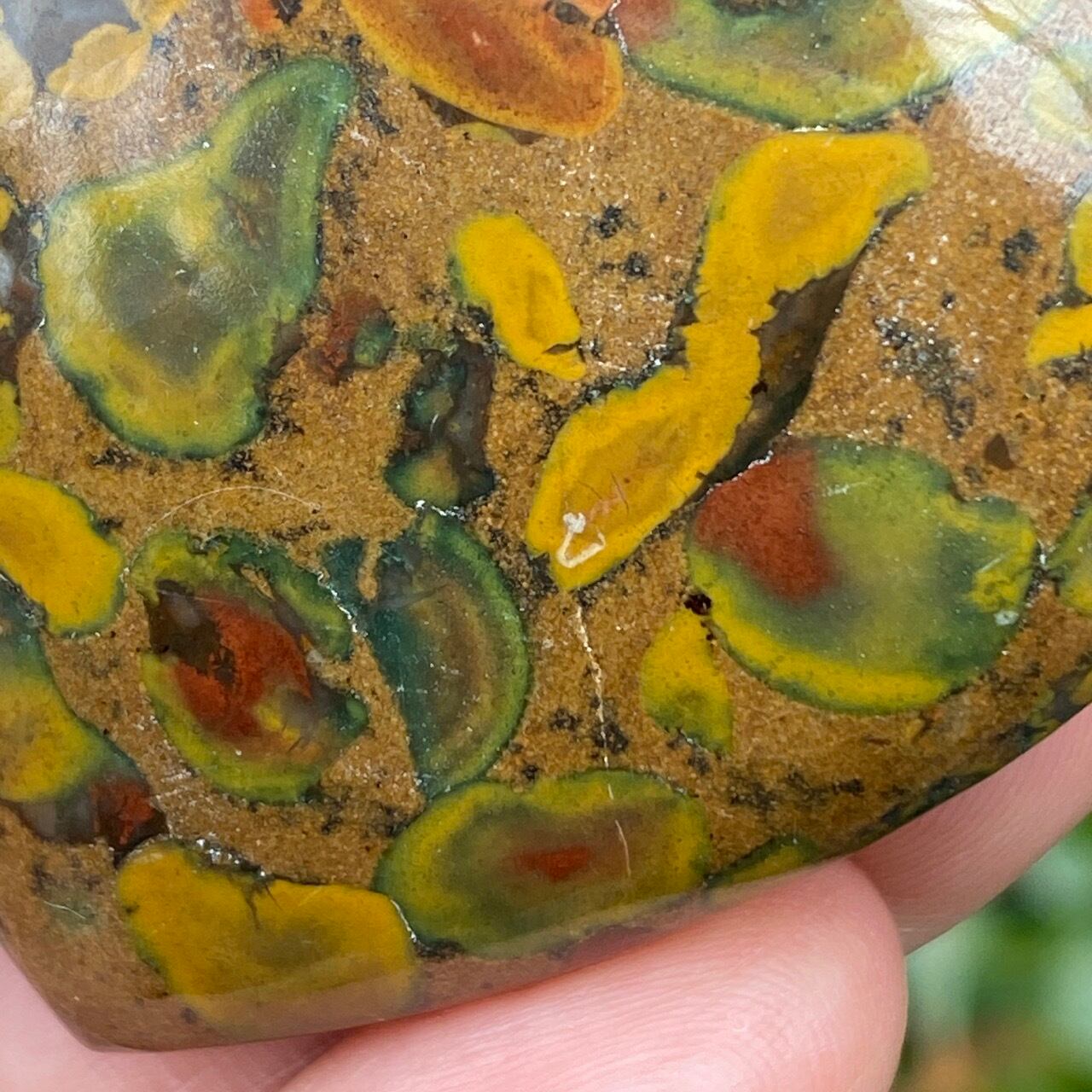 黄土色のベースに赤や黄色、そして緑などのフルーツの模様が見られる、とてもユニークな石で、店主の大好きなジャスパーの内の1つです。