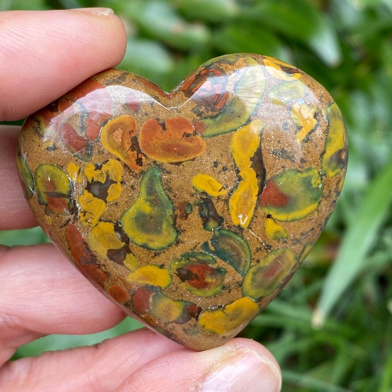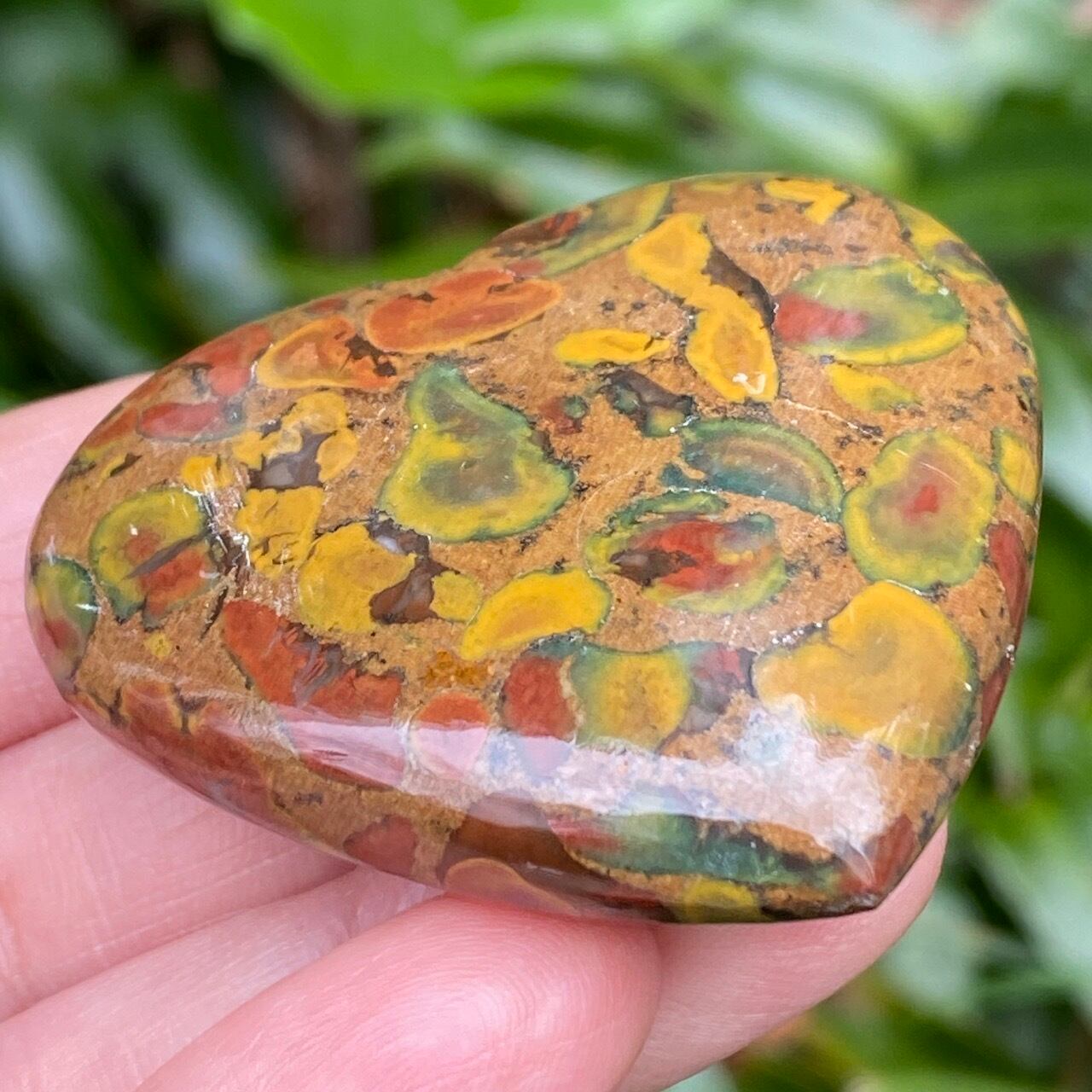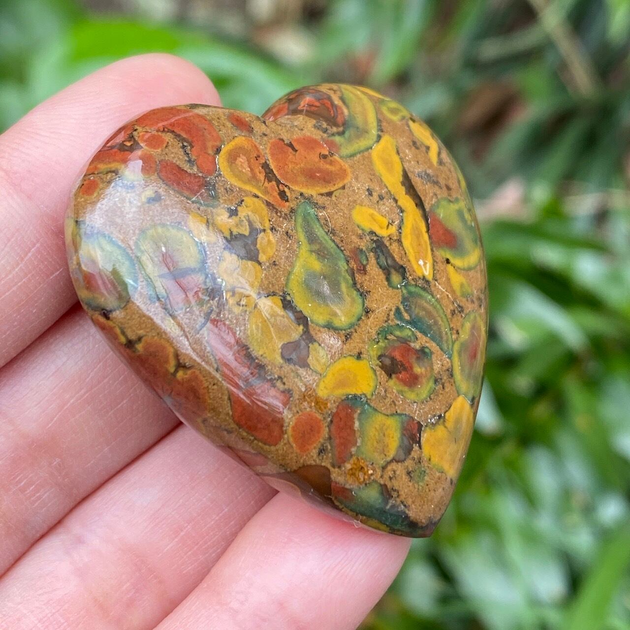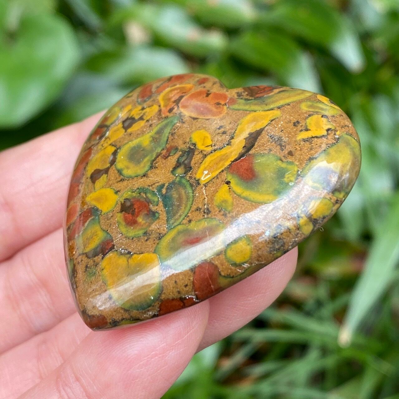 黄土色のベースに赤や黄色、そして緑などのフルーツの模様が見られる、とてもユニークな石で、店主の大好きなジャスパーの内の1つです。