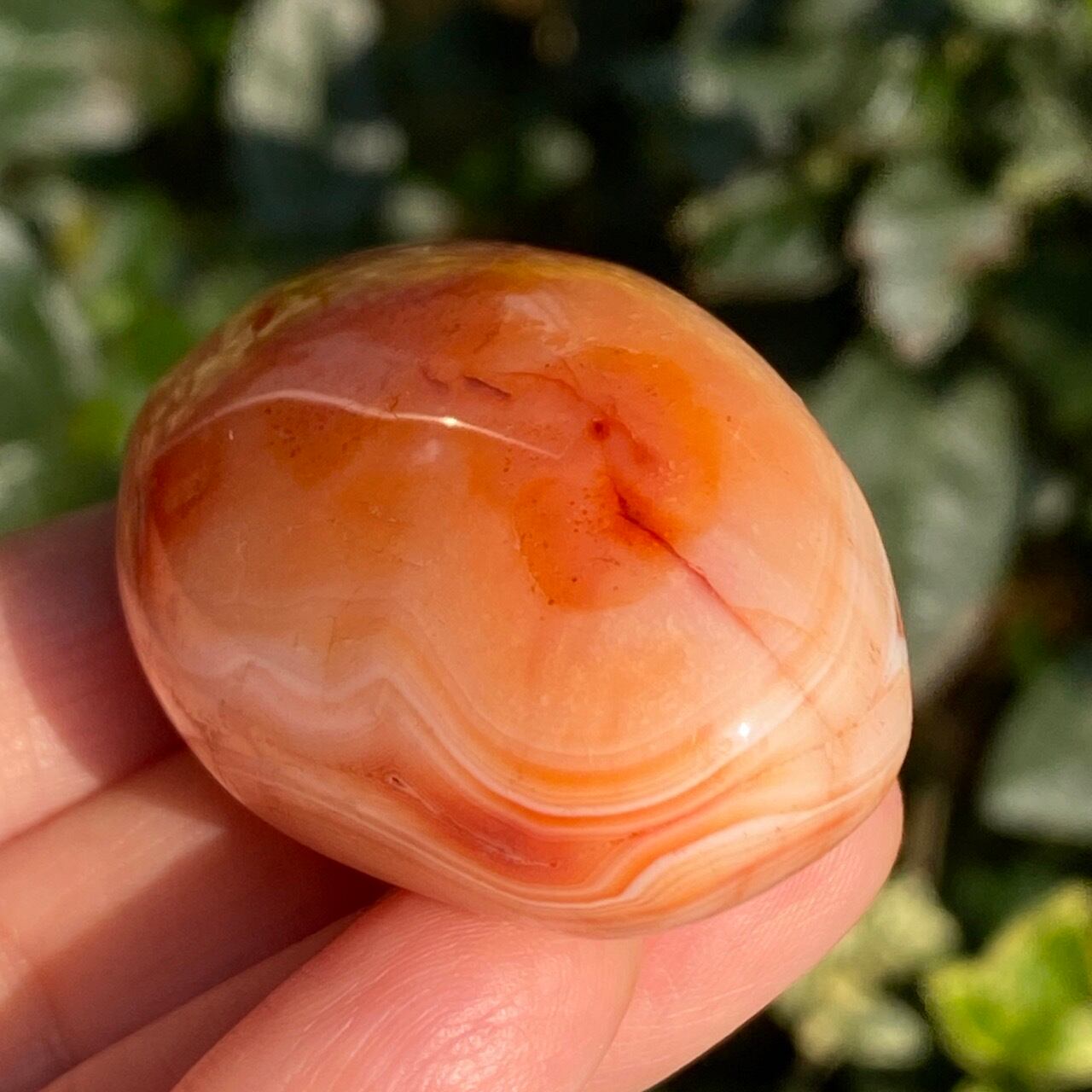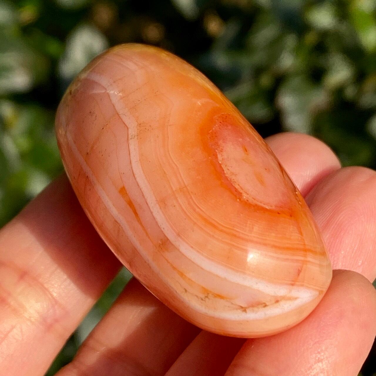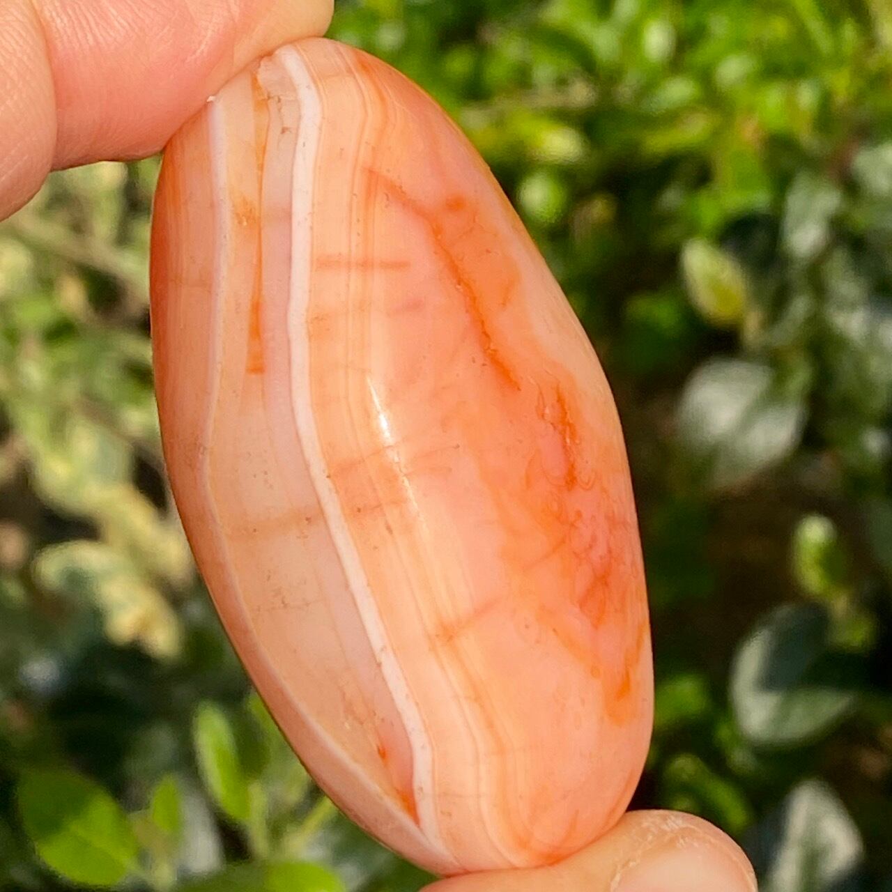 アゲート特有のバンディング(帯状の模様)がサイド部分をぐるっと取り囲んでいます。通常のカーネリアンとは異なり色味は優しい感じで、形状が握り易いです。