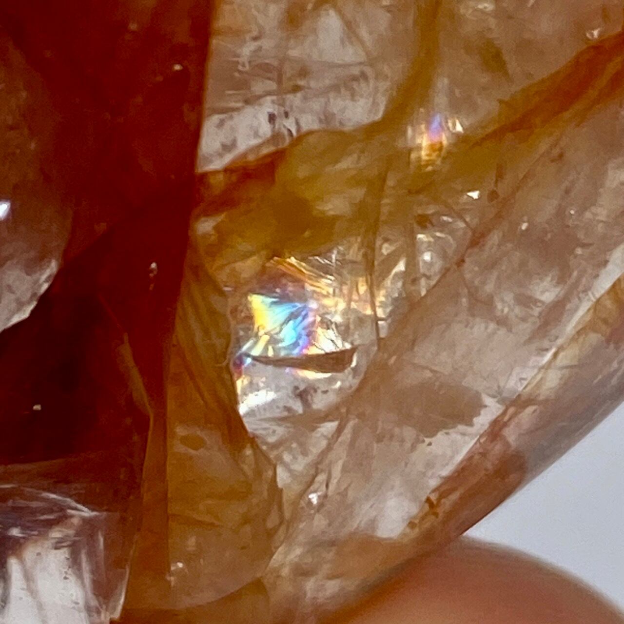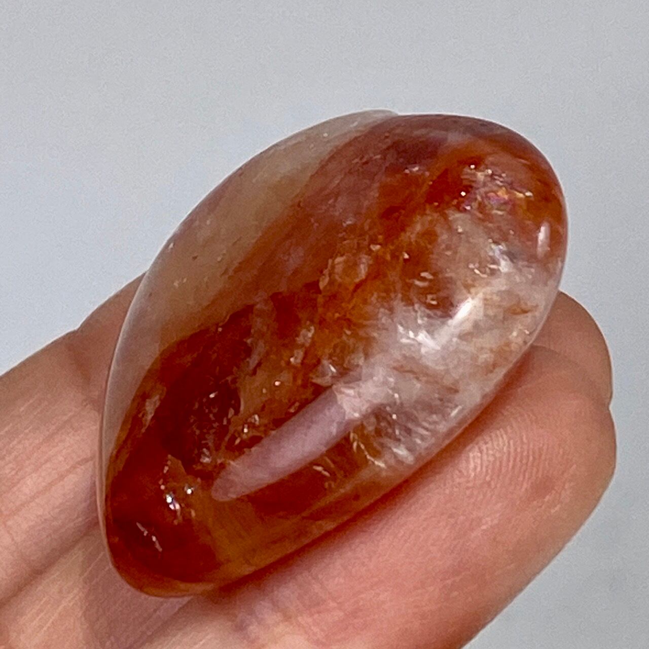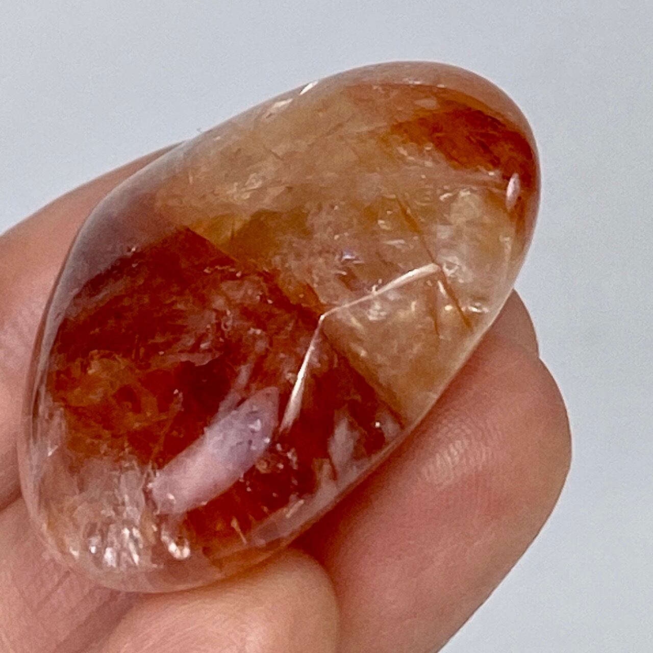 水晶に赤いレピドクロサイト(鱗鉄鉱)を内包する石で、その見た目から力強さを象徴し、持ち主に自信や決断力、そして前進する力をを与えてくれると言われています。