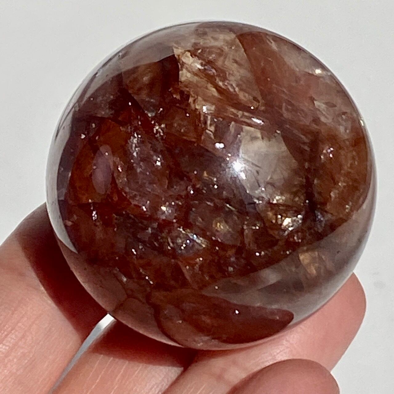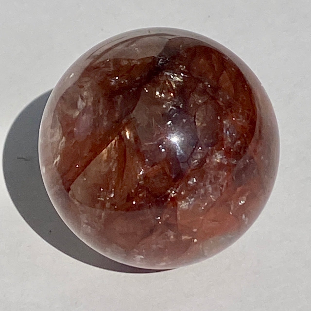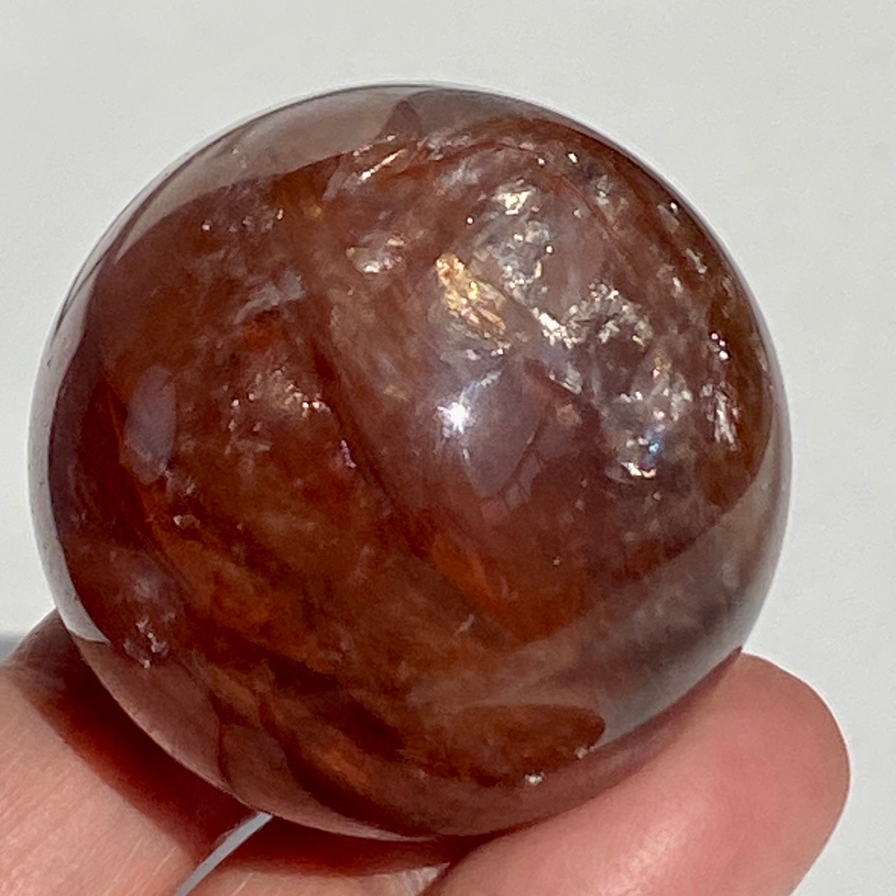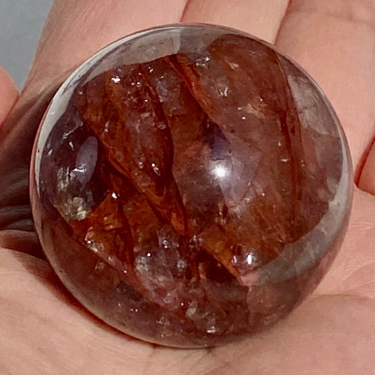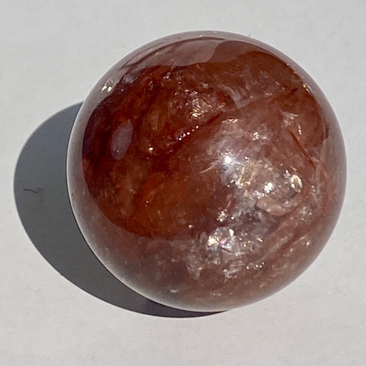 クォーツに赤茶系のインクルージョンのが惜しみなく入った、ファイアークォーツのスフィアになります。