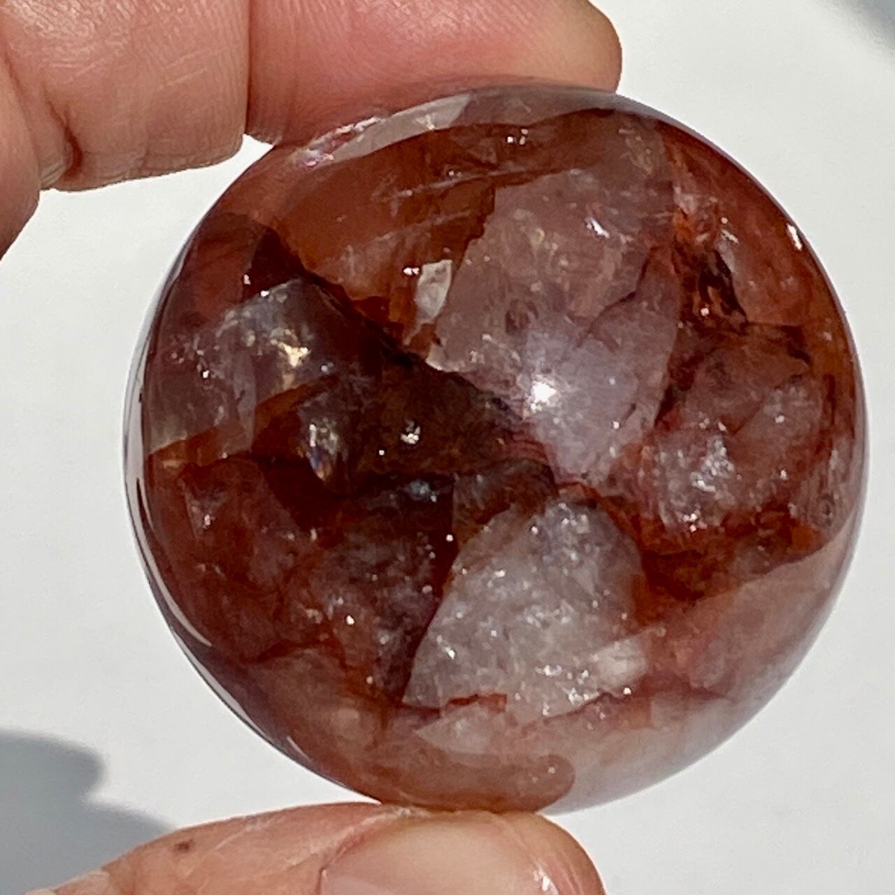 水晶に赤いレピドクロサイト(鱗鉄鉱)を内包する石で、その見た目から力強さを象徴し、持ち主に自信や決断力、そして前進する力をを与えてくれると言われています。