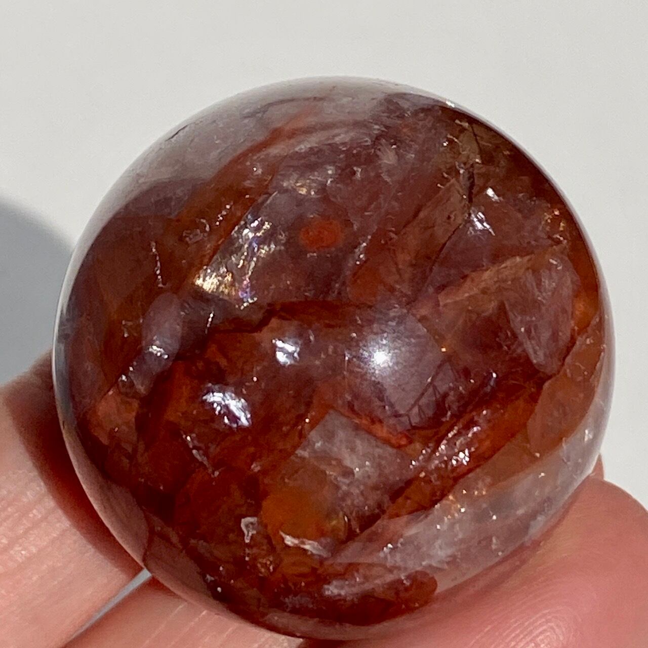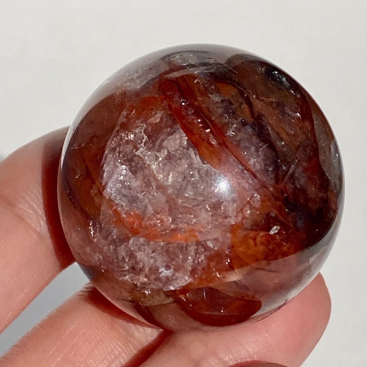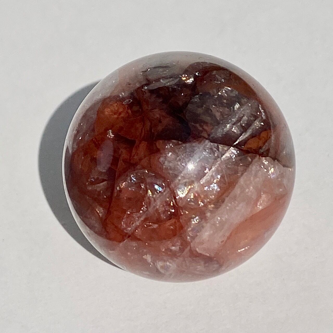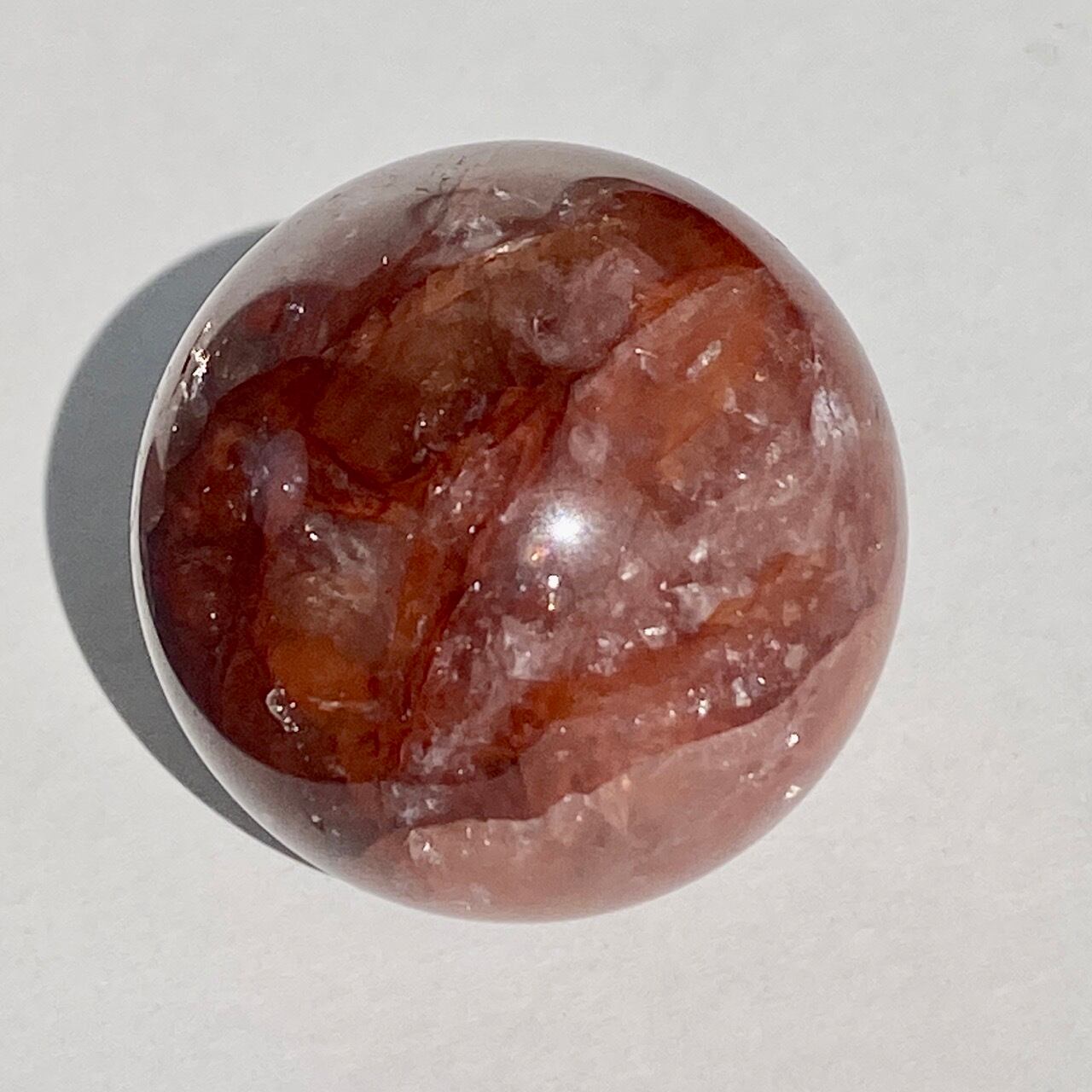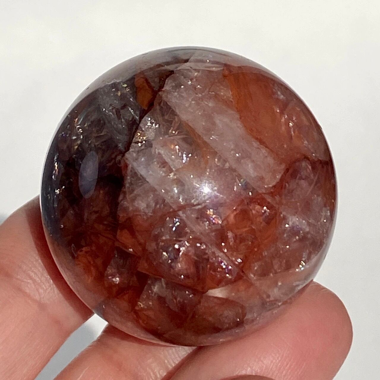 クォーツに赤茶系のインクルージョンのが惜しみなく入った、ファイアークォーツのスフィアになります。