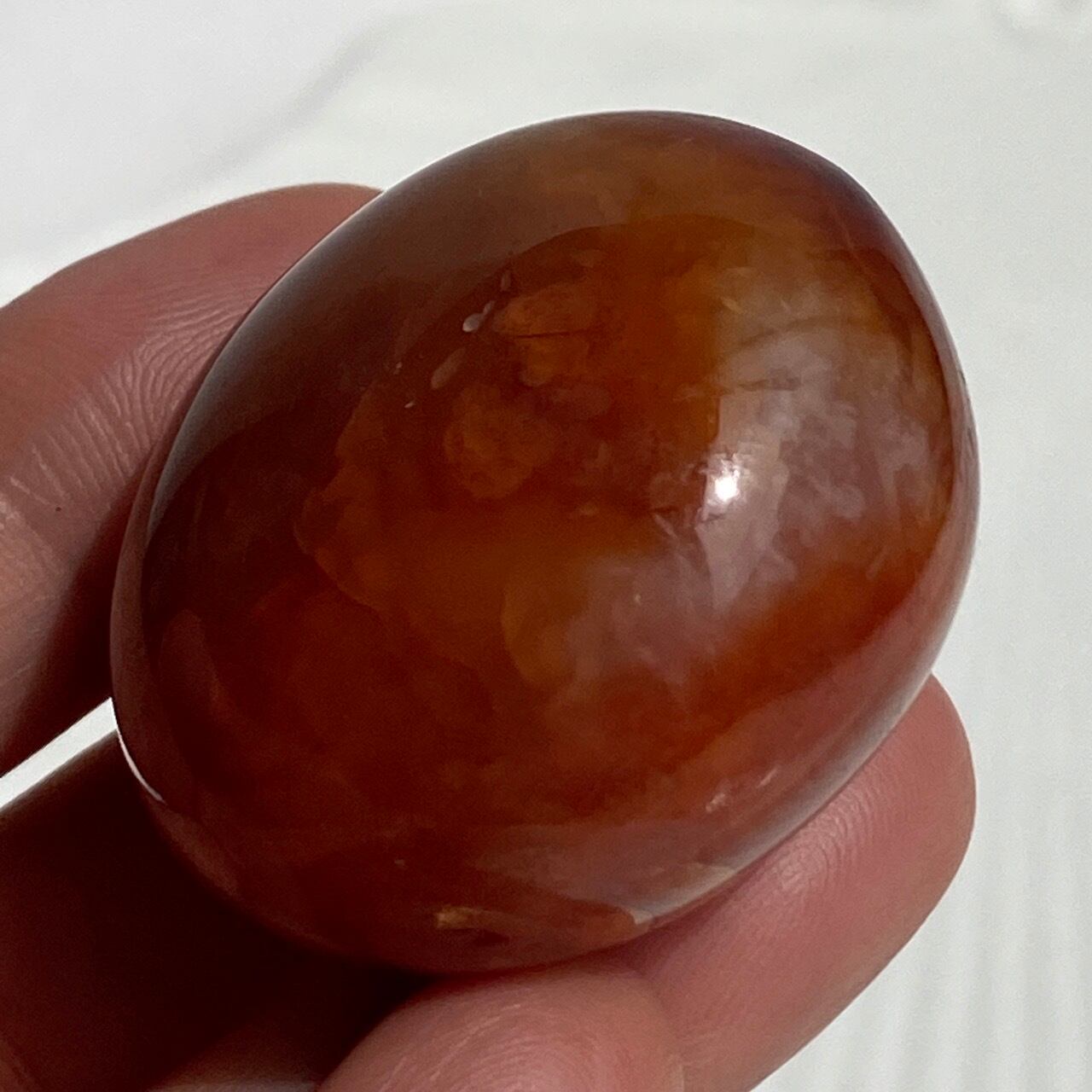 タンブルサイズ位のミニパームストーンの3個入りで、カーネリアンとオルカカーネリアンのセットとなります。