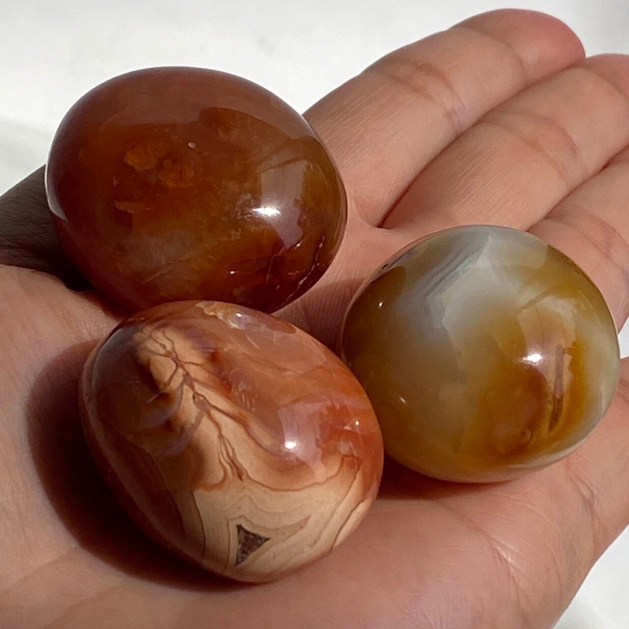 【Set G】Orca Carnelian and Carnelian Mini Palm Stones オルカカーネリアンとカーネリアンのミニパームストーン3個入りセット AC3644/50/56
