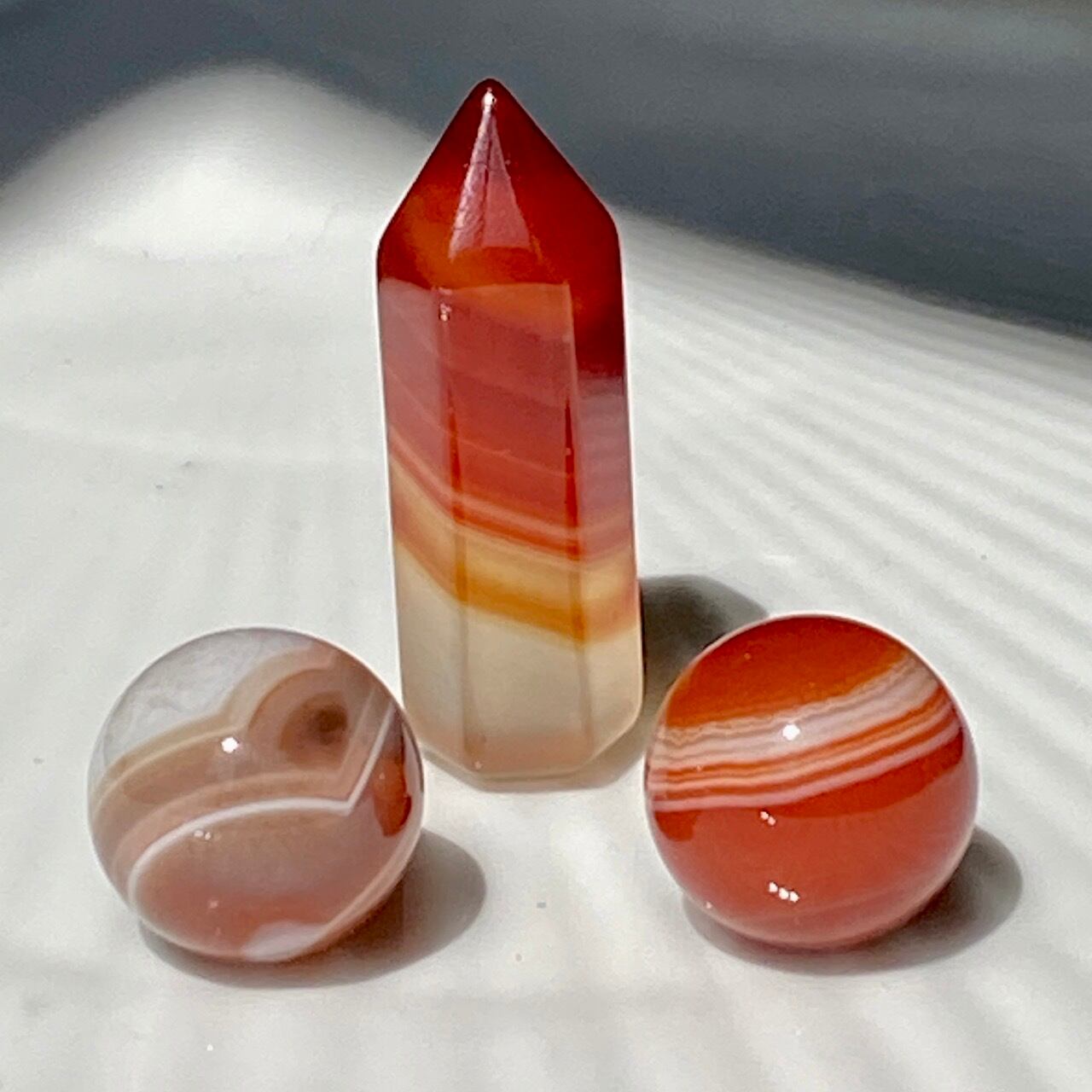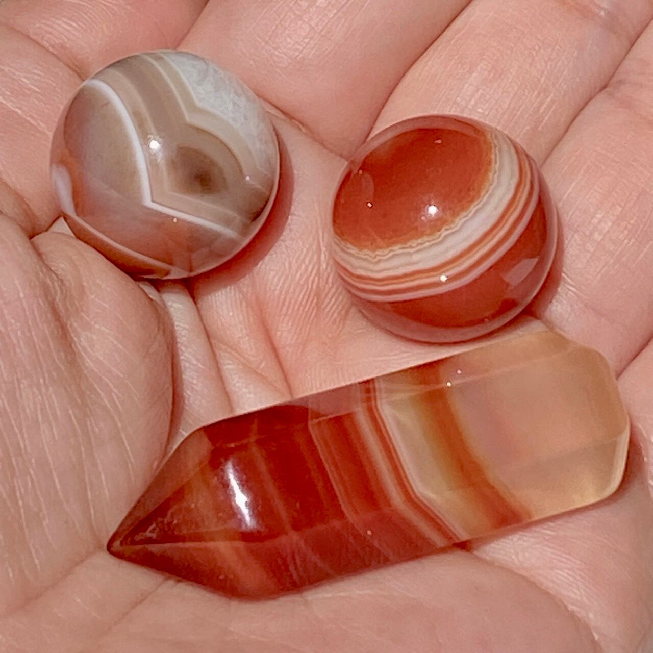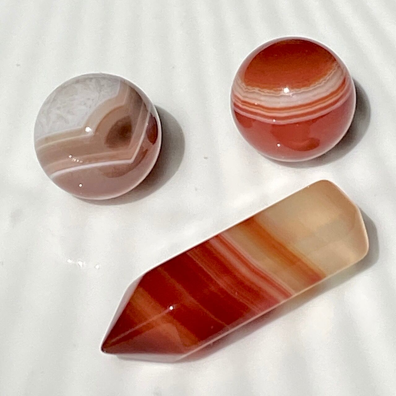 バンディング(帯状の模様)入りの可愛いカーネリアンのミニセットで、ギフトにもぴったりです。