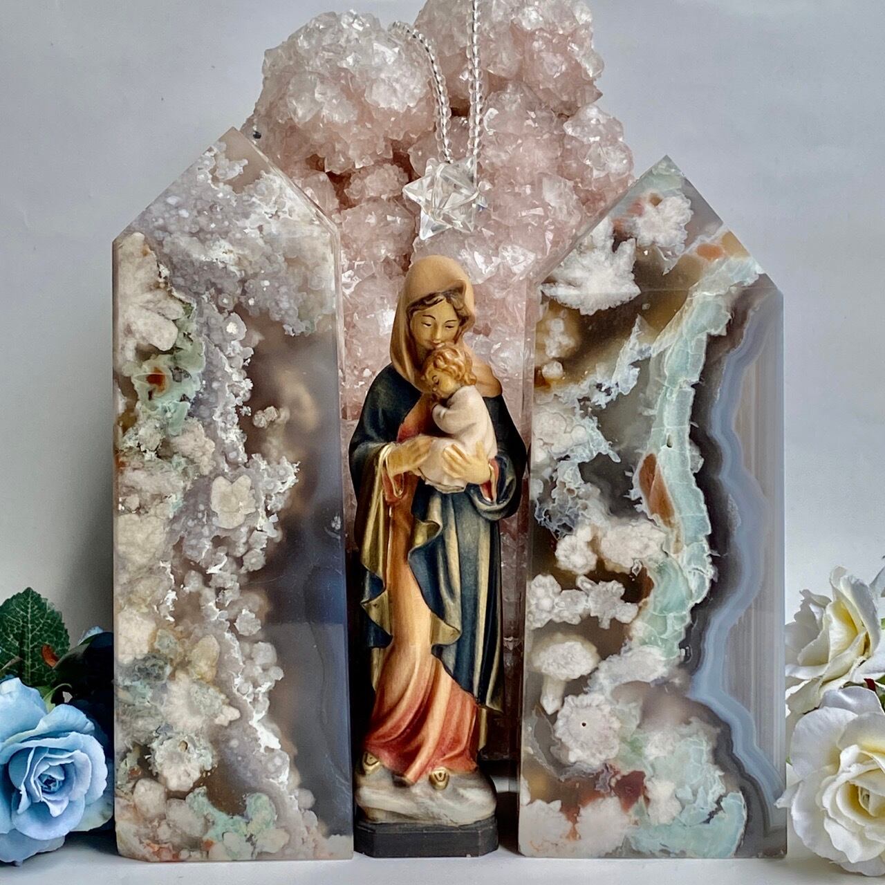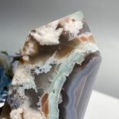 ※アゲートの特性である、クラックやチップ、キズや溝、そして凹み等があります。主なものとしては、ポイント下部の底面に接する部分(13枚目画像参照)や、タワー上部のファセット部分2箇所(18と19枚目画像参照)にチップがあります。