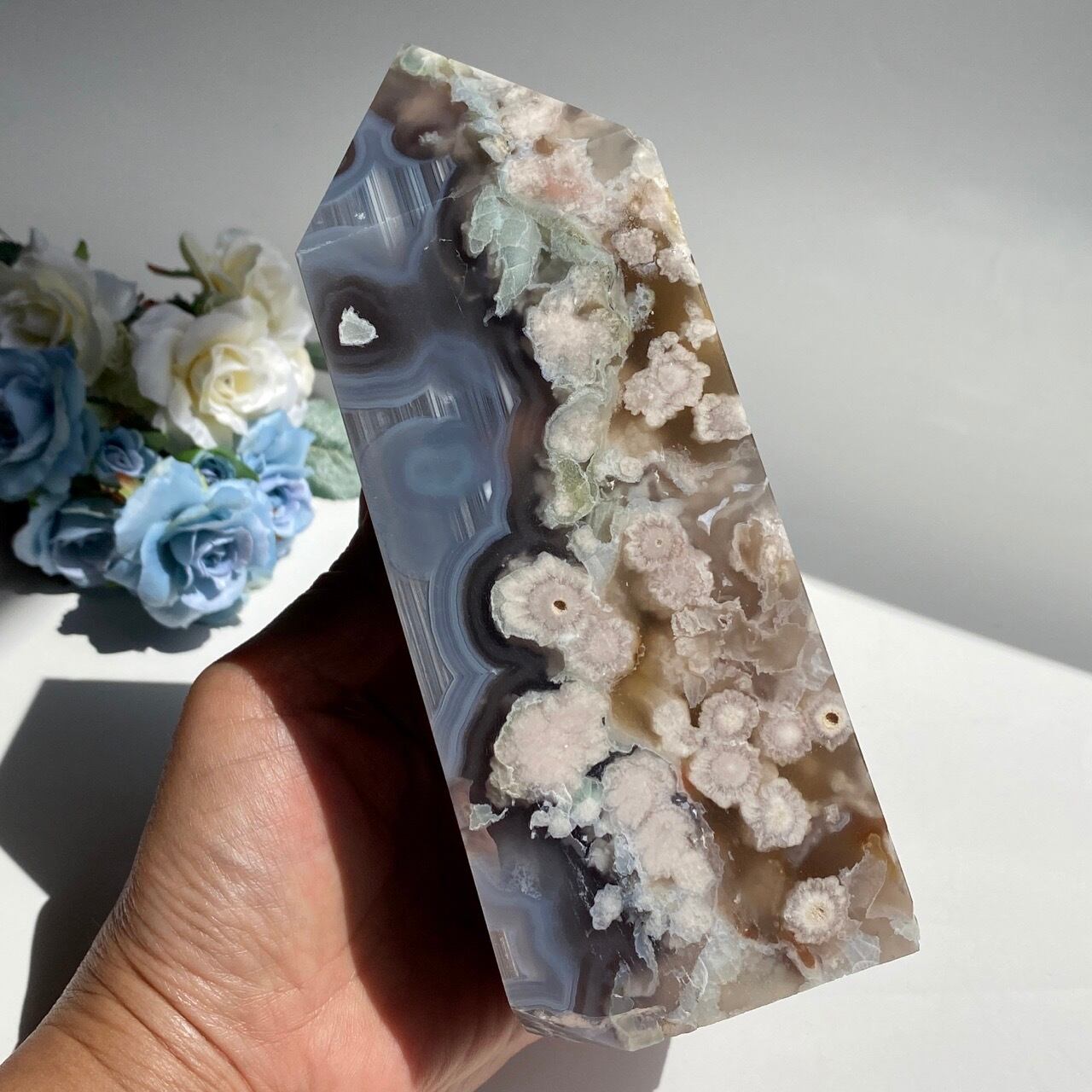 存在感のあるフラワーアゲート(桜瑪瑙)のタワーです。