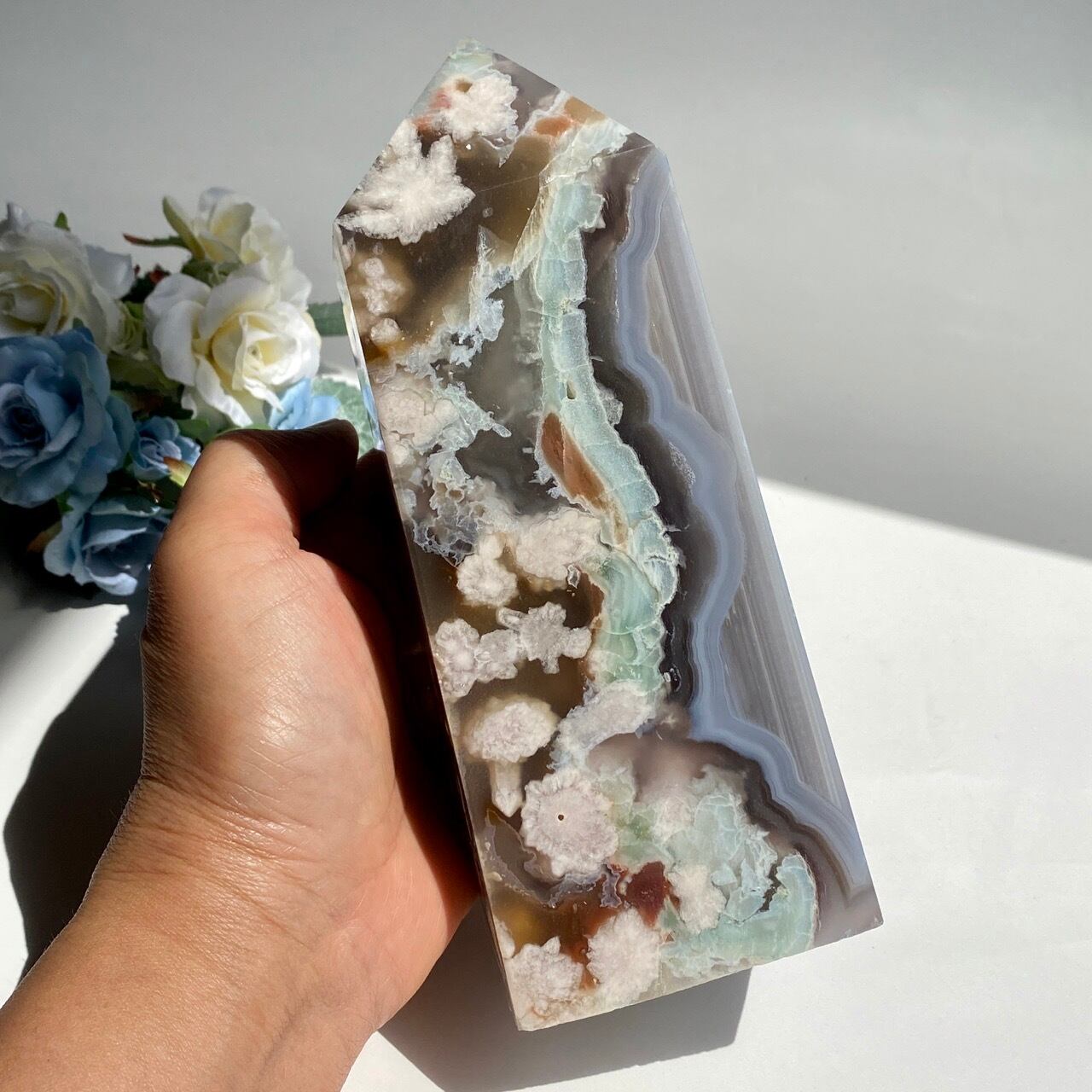 【高さ170mm/重量1,132g】ゴージャスなフラワーアゲートのタワー Flower Agate Tower TW1001
