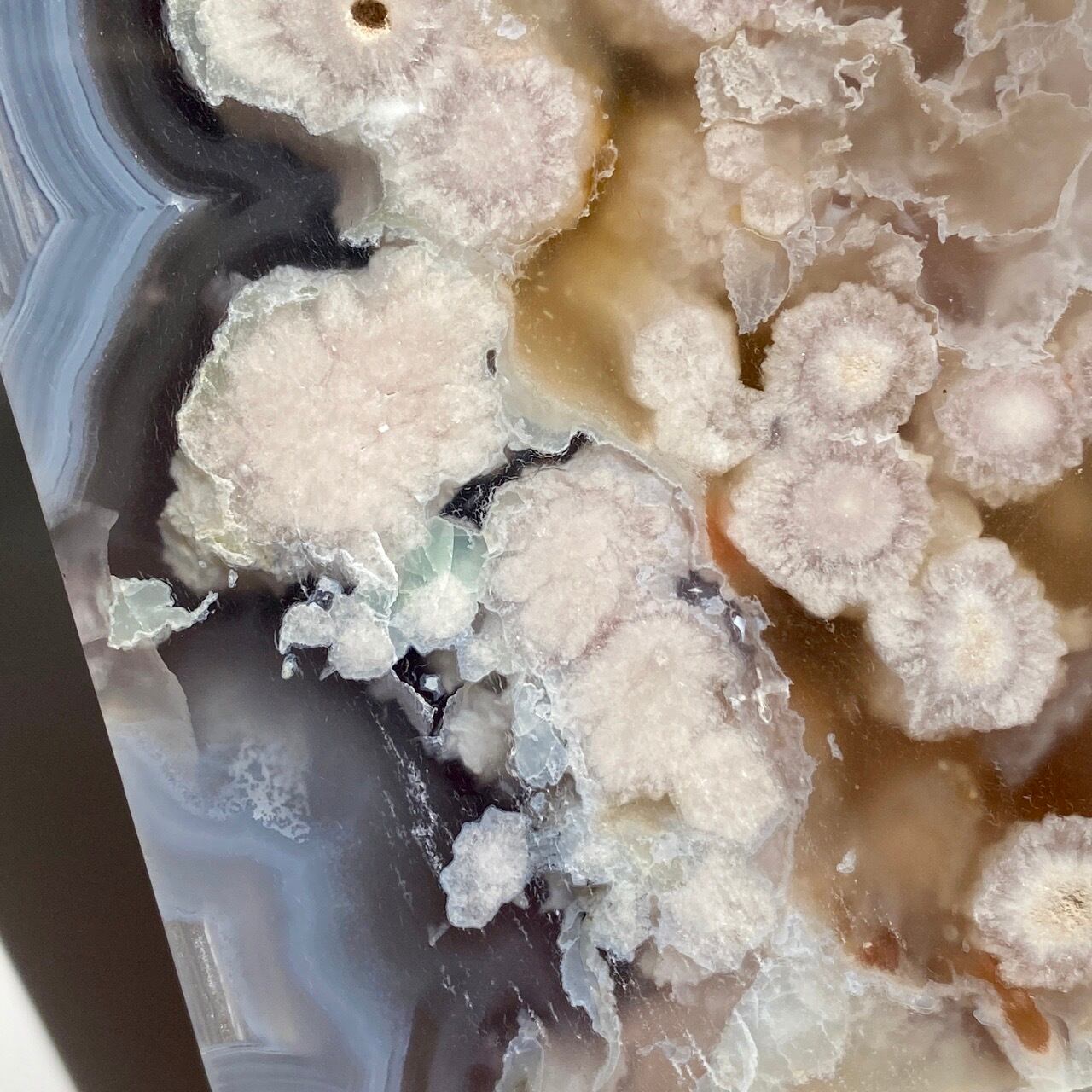 アゲートは石英グループの仲間で、岩の空洞や割れ目に入り込んだ地下水から形成され、水に溶け込んでいたSilica(シリカ)が、ゼリーの様になって固まったものだそうです。アゲートの様々な模様は天然が作り出す芸術作品で、世界中の愛好家を魅了してやみません。