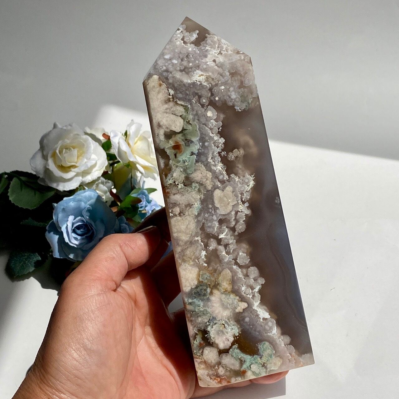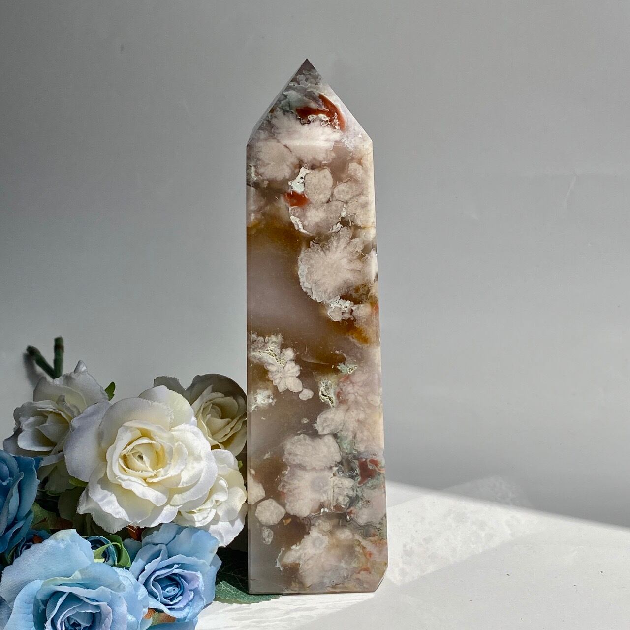 存在感のあるフラワーアゲート(桜瑪瑙)のタワーです。