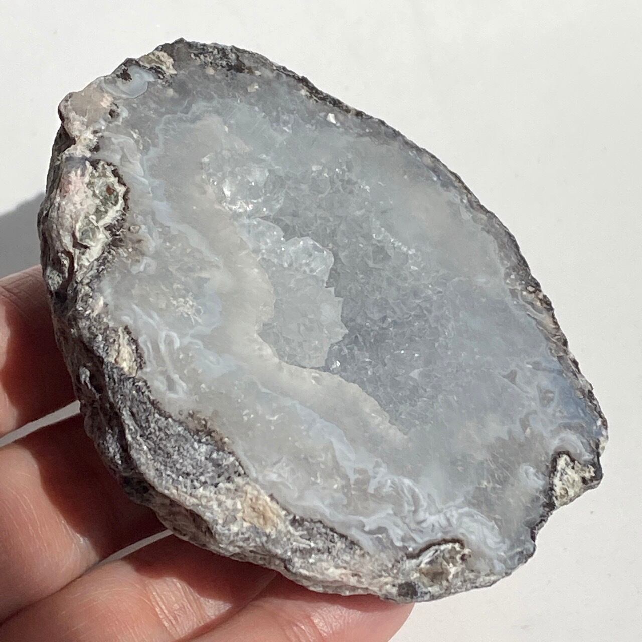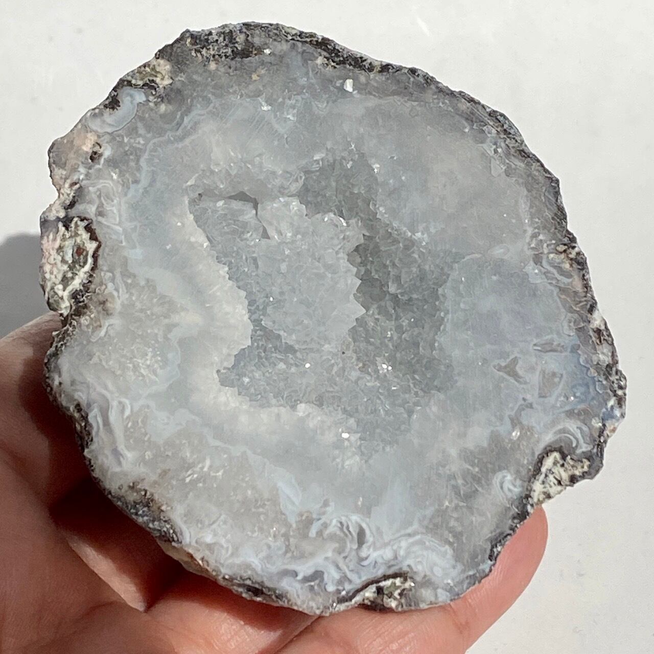 きらきら光るドゥルージークォーツ入りアゲートのジオード Agate Geode with Druzy Quartz RW6230