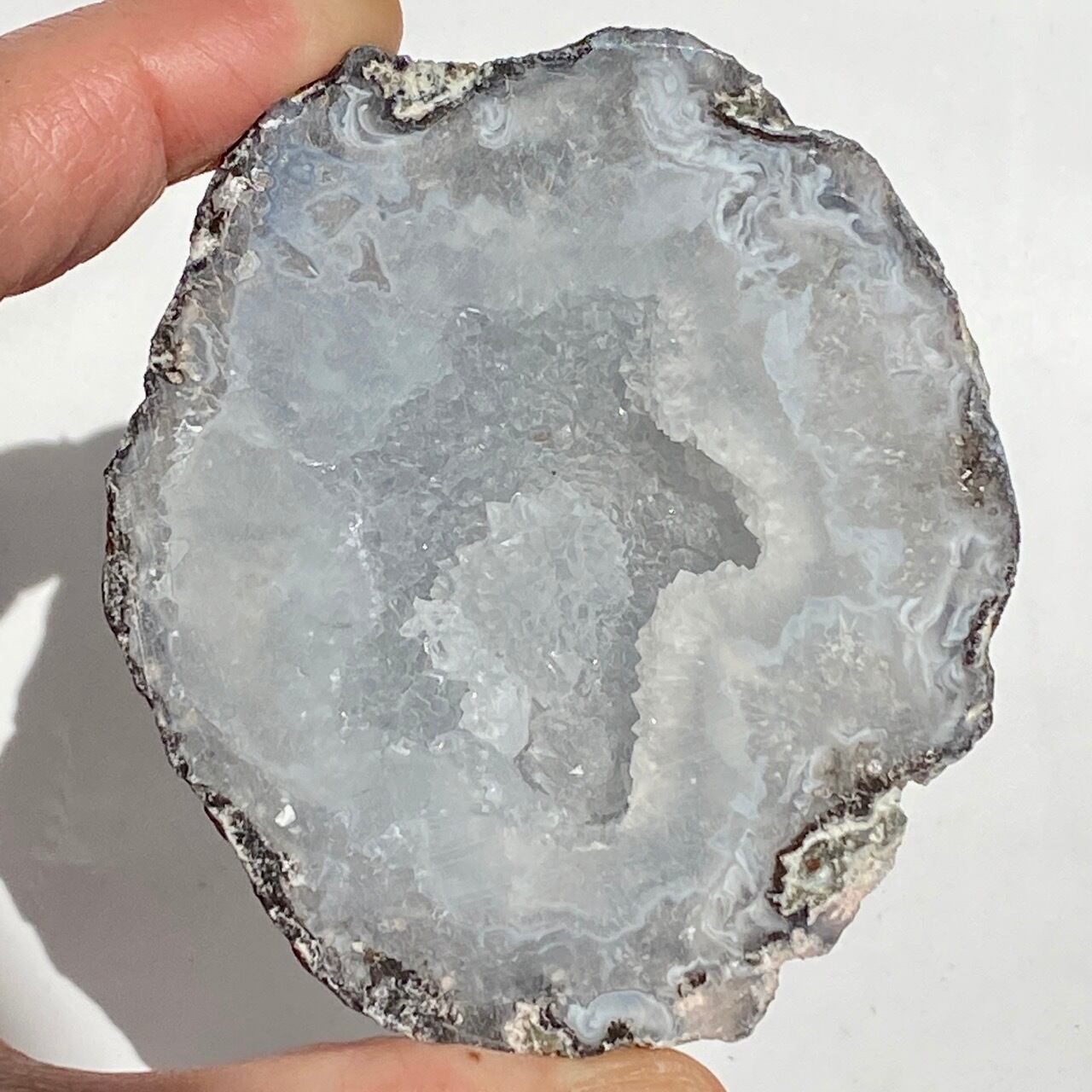 カットされたアゲート表面部分は研磨されていますが、外側の母岩は天然そのままで、研磨されていません。