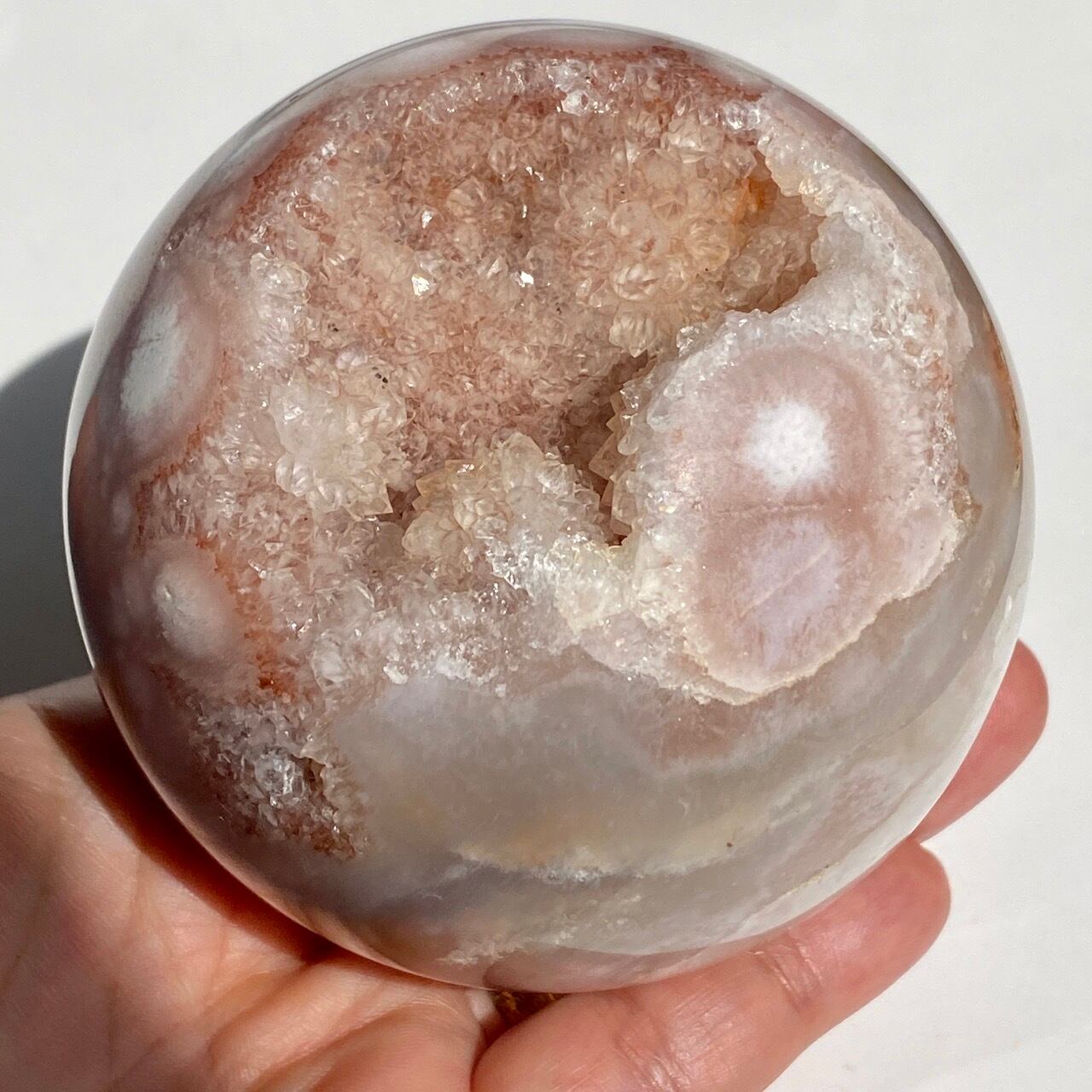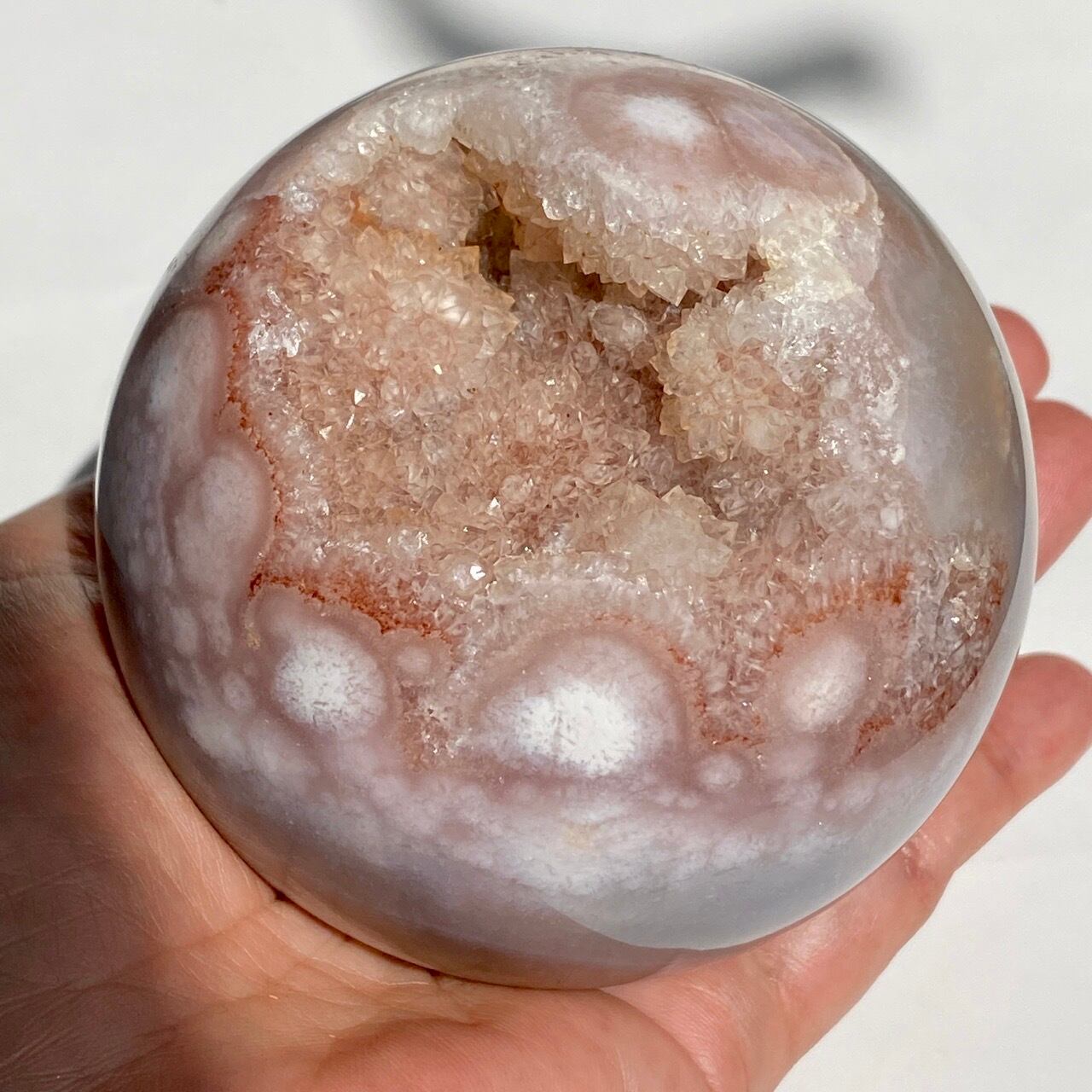 【76mm/723g】ドゥルージー入りピンクアメシスト共生アゲートのスフィア Pink Amethyst x Druzy Agate Sphere SP2023