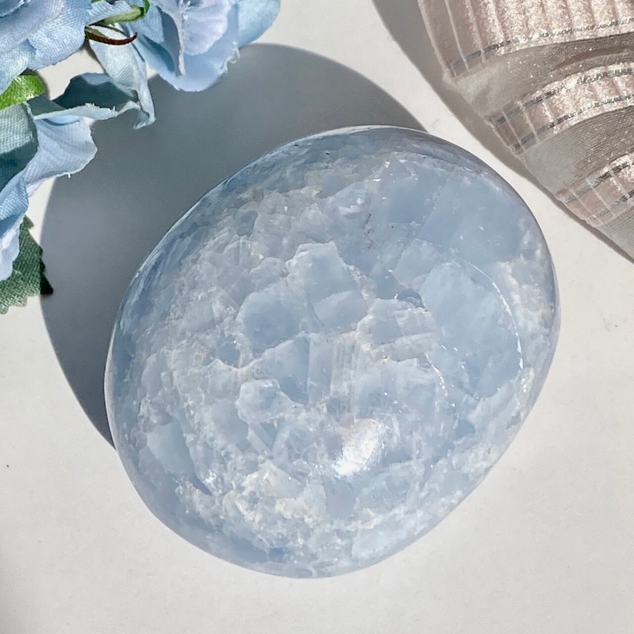 ⚠︎中国のサプライヤーより石名『天青石』=セレスタイトである事をダブルチェックして購入しましたが、先日他の国のバイヤーよりセレスタイトはこのレベルの研磨に耐えられないためスフィアやパームなどのセレスタイトはブルーカルサイトであるという指摘がありました。