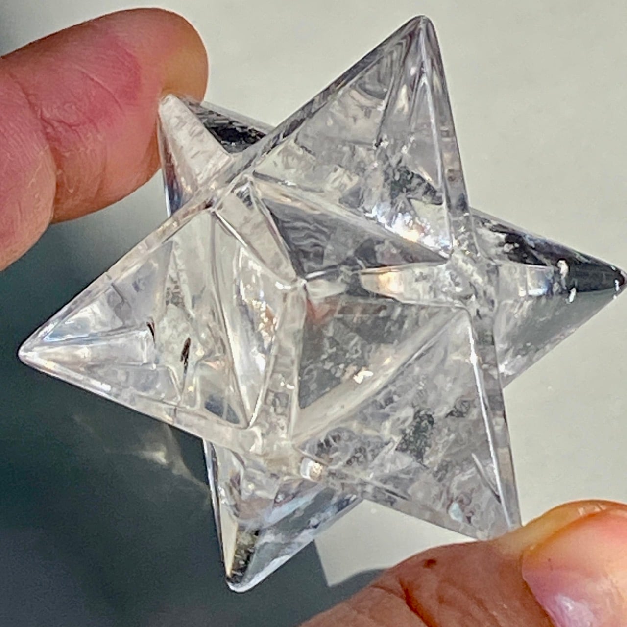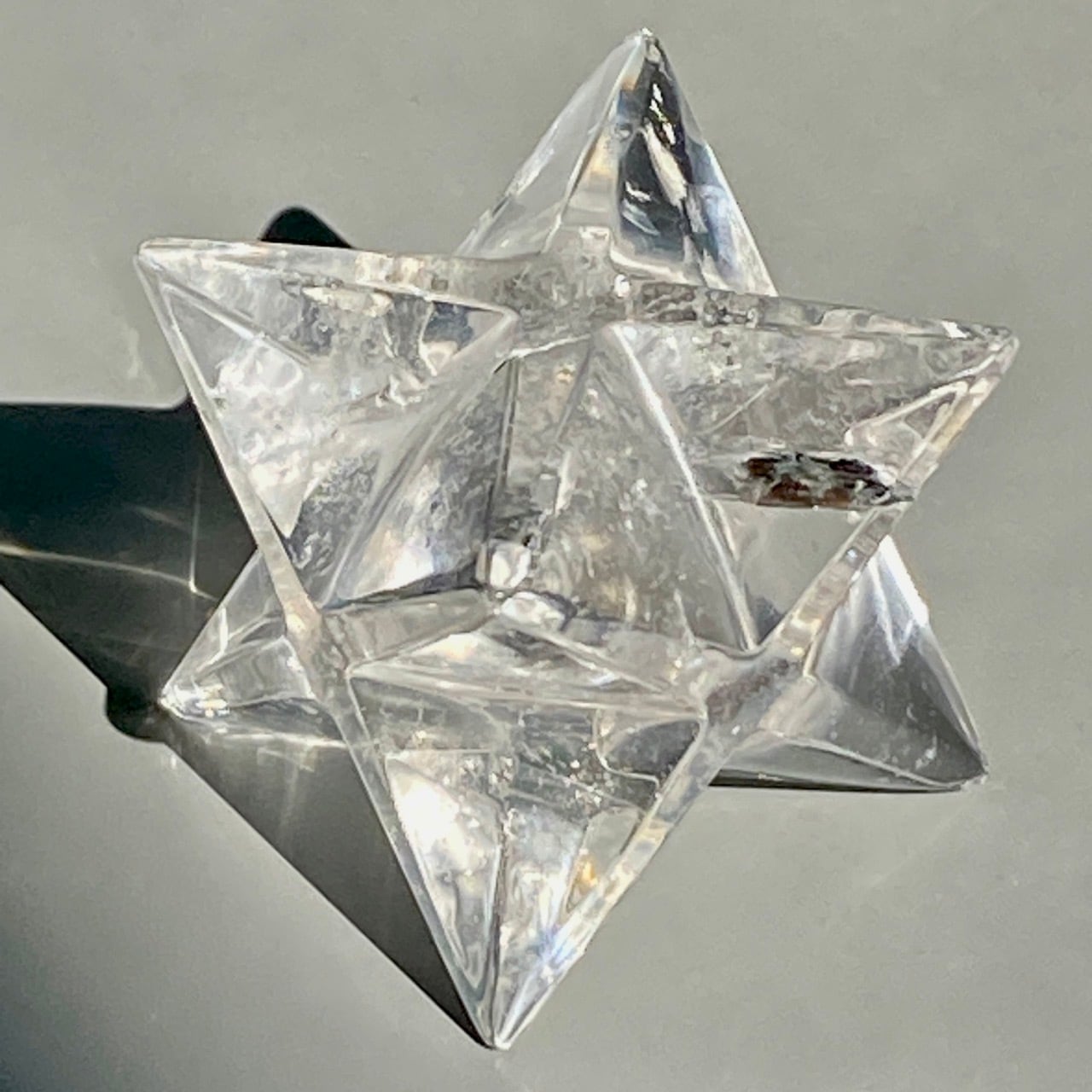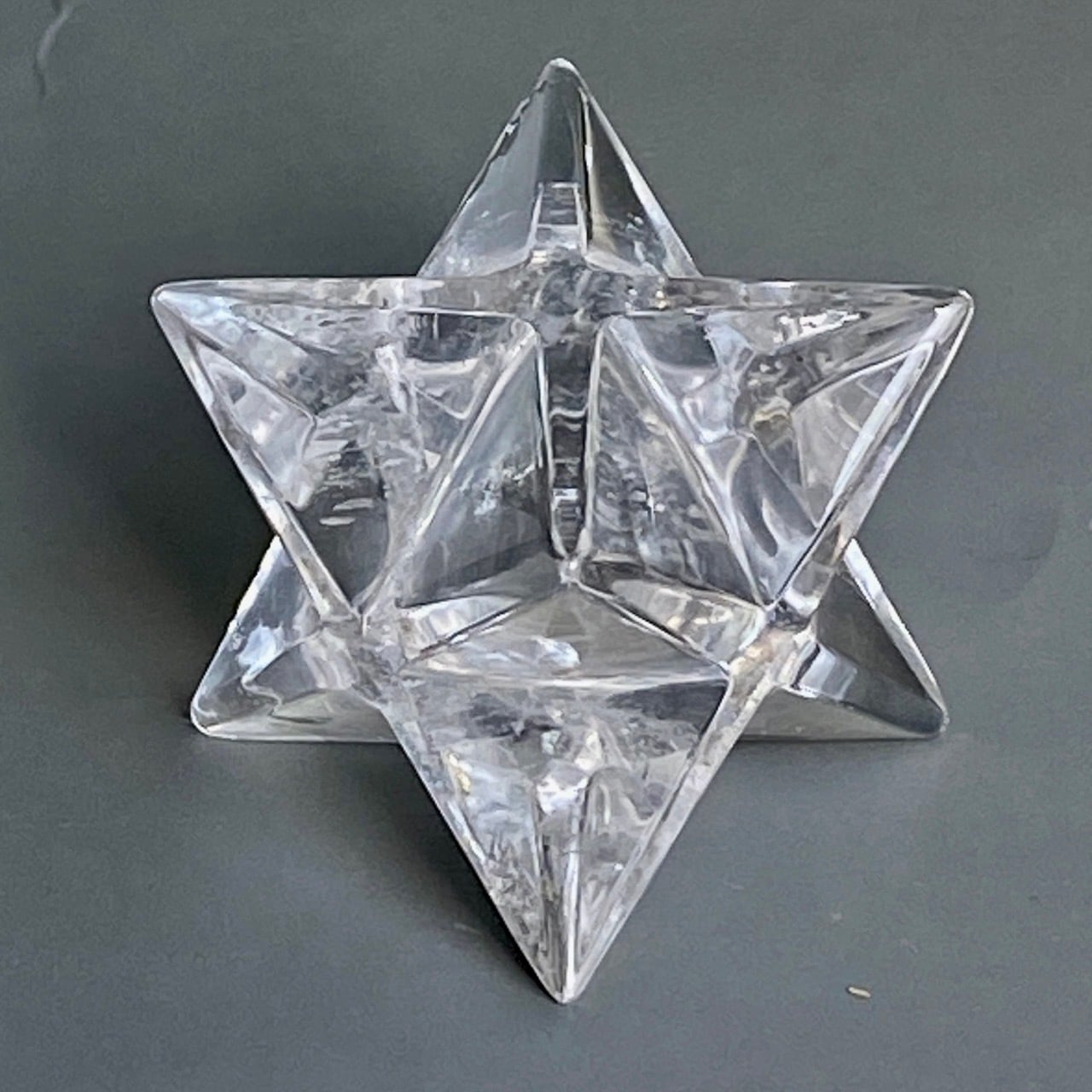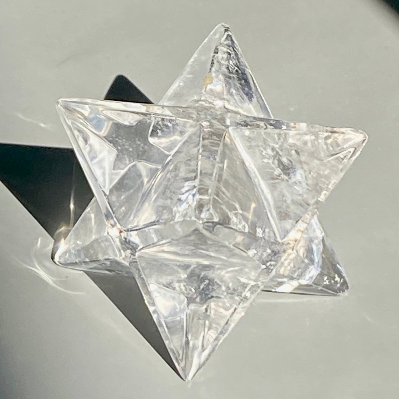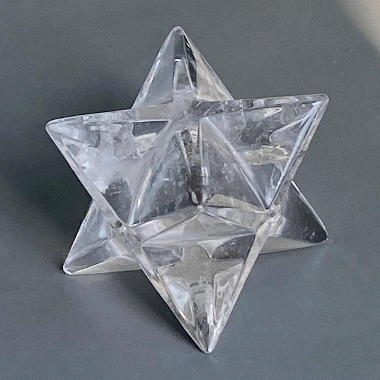 ドランヴァロ メルキゼデクの著書Flower of Lifeでもお馴染みの古代神聖幾何学のマカバ(マルカバスター)で、石はクリアクォーツになります。