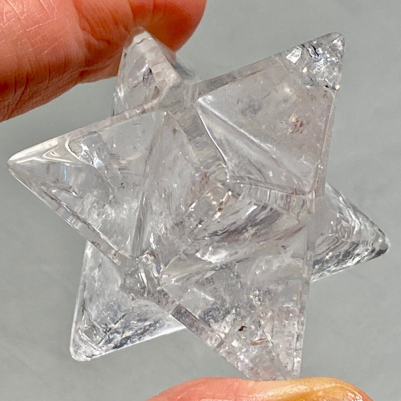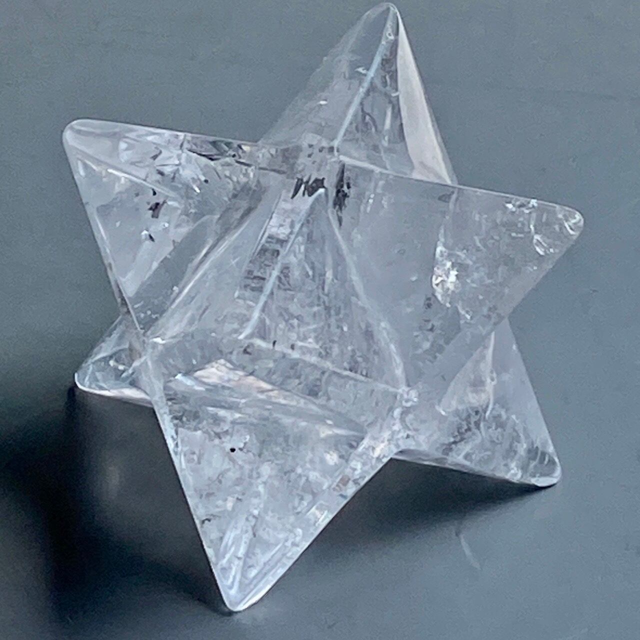 ドランヴァロ メルキゼデクの著書Flower of Lifeでもお馴染みの古代神聖幾何学のマカバ(マルカバスター)で、石はクリアクォーツになります。