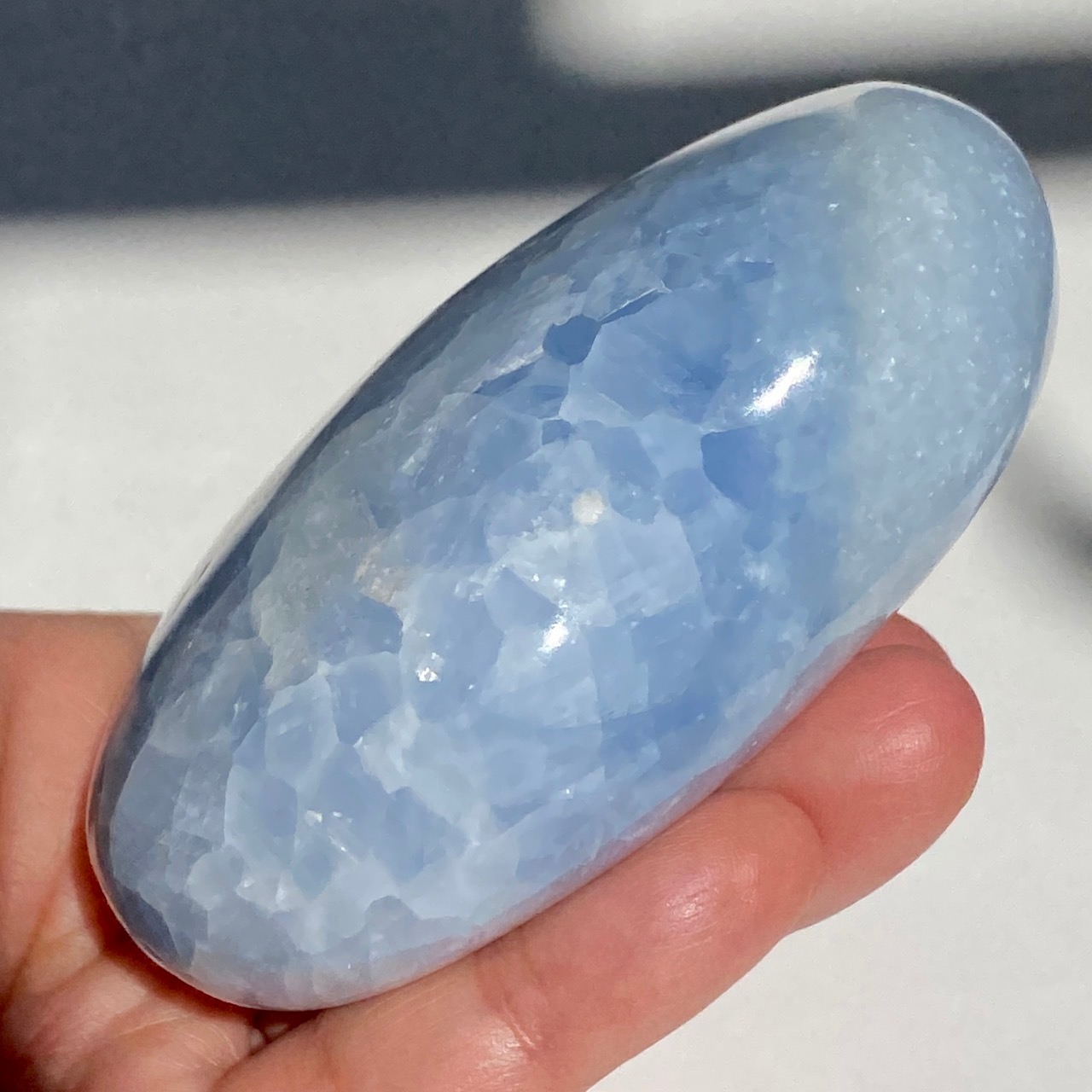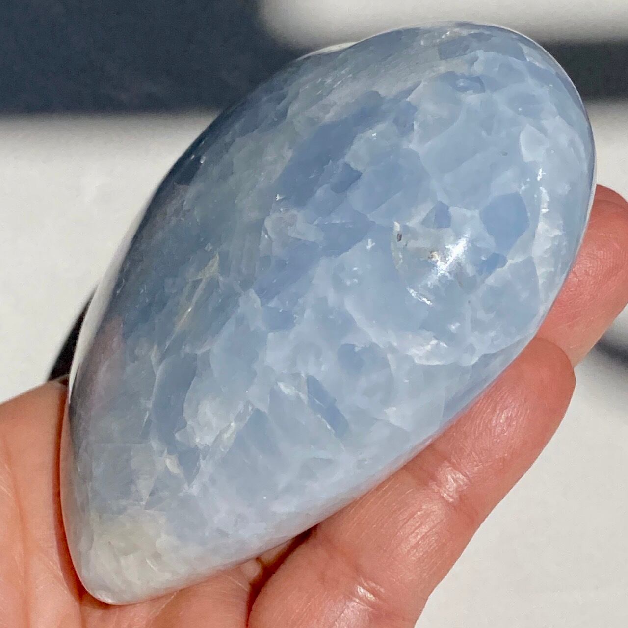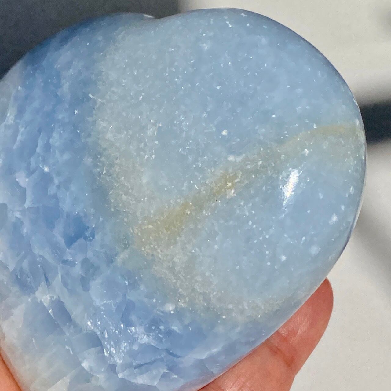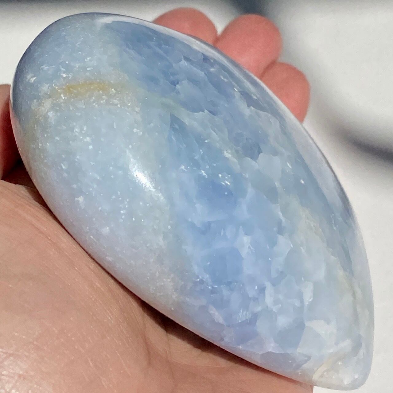 ⚠︎中国のサプライヤーより石名『天青石』=セレスタイトである事をダブルチェックして購入しましたが、先日他の国のバイヤーよりセレスタイトはこのレベルの研磨に耐えられないためスフィアやパームなどのセレスタイトはブルーカルサイトであるという指摘がありました。