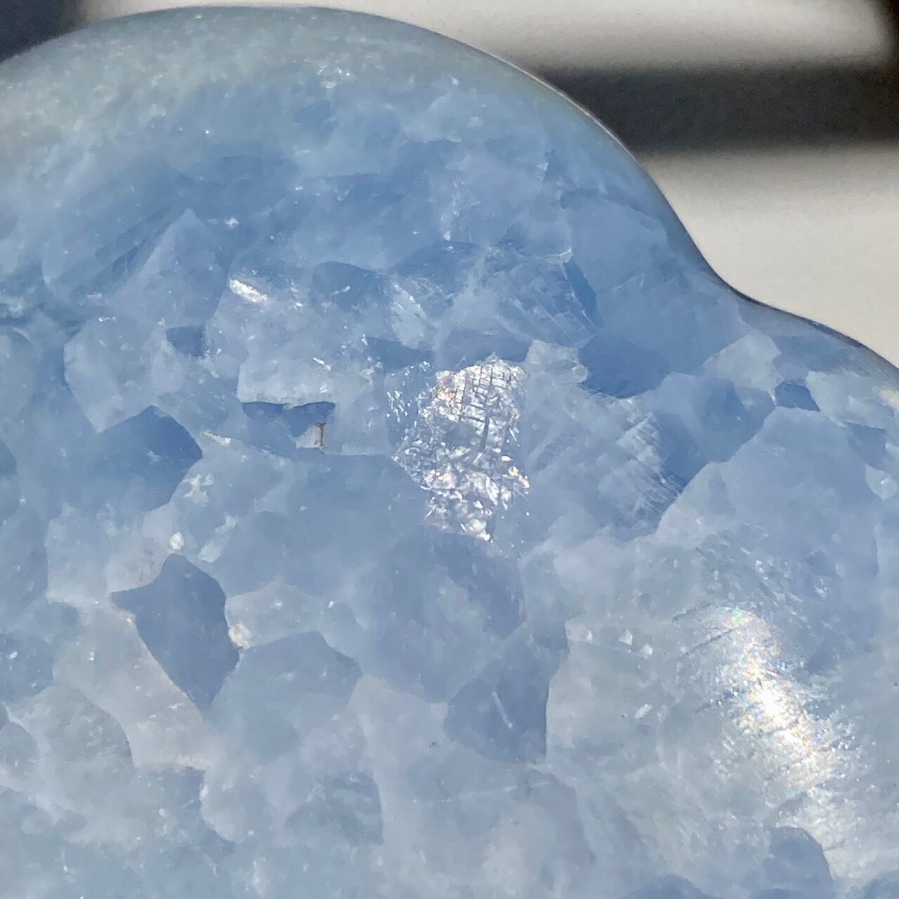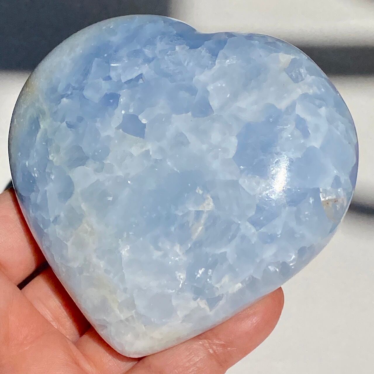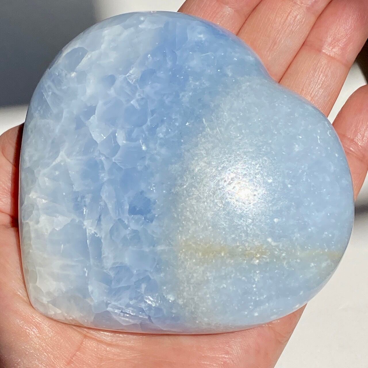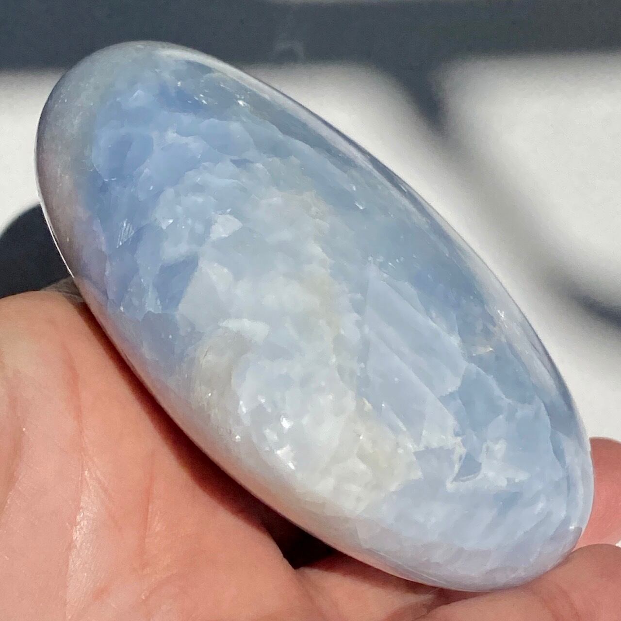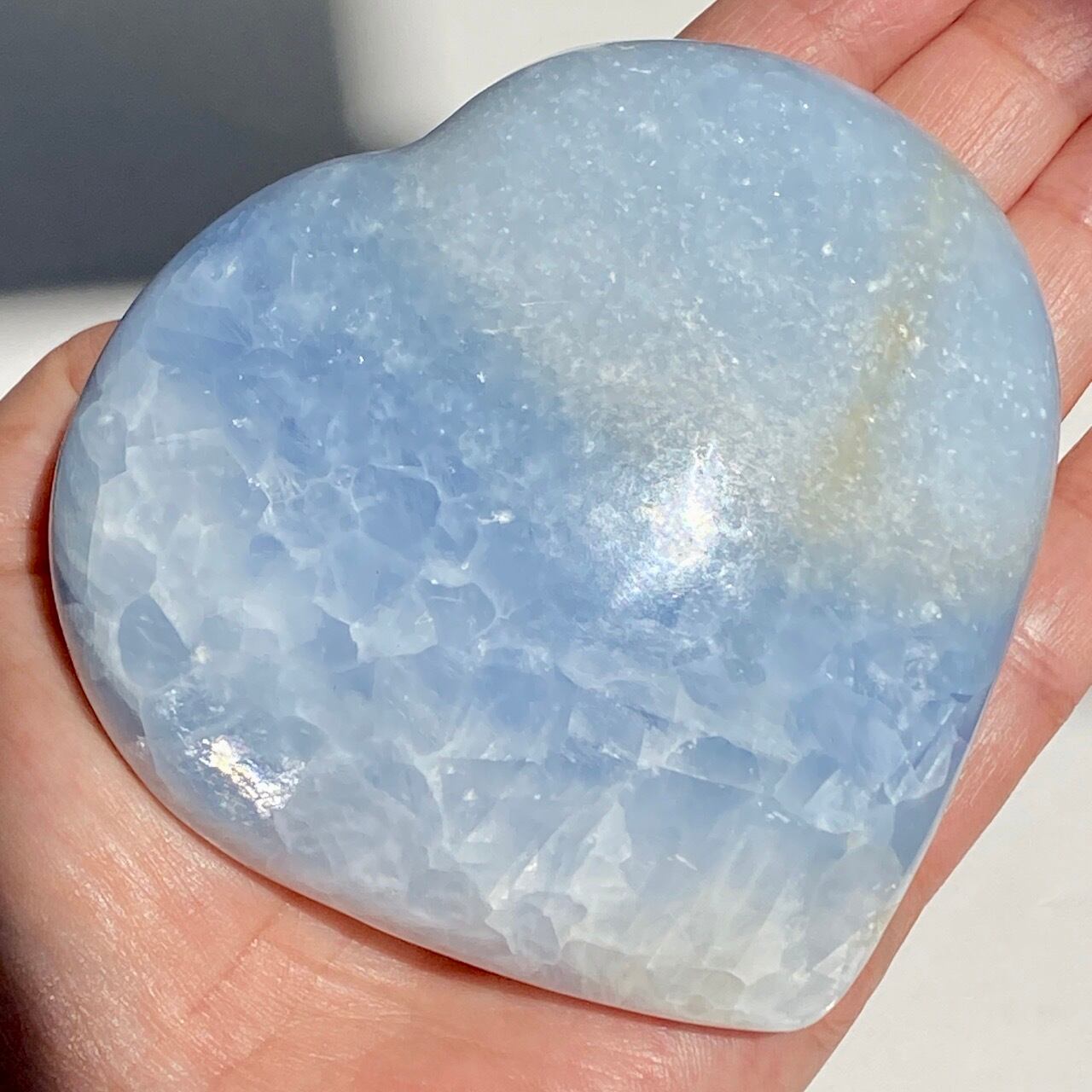 ⚠︎中国のサプライヤーより石名『天青石』=セレスタイトである事をダブルチェックして購入しましたが、先日他の国のバイヤーよりセレスタイトはこのレベルの研磨に耐えられないためスフィアやパームなどのセレスタイトはブルーカルサイトであるという指摘がありました。