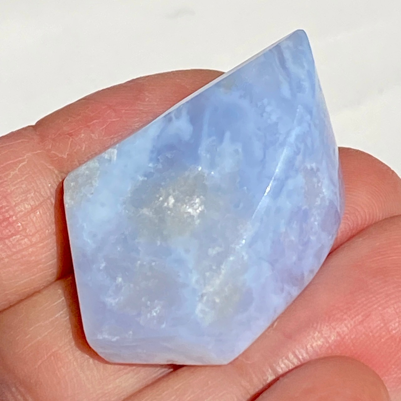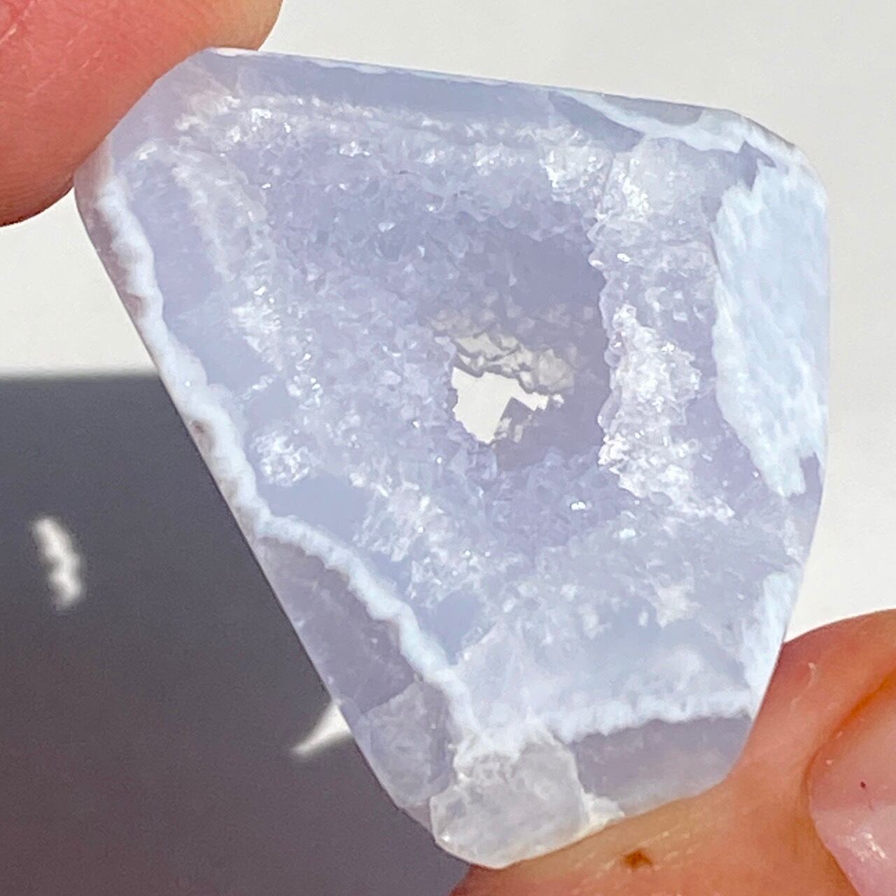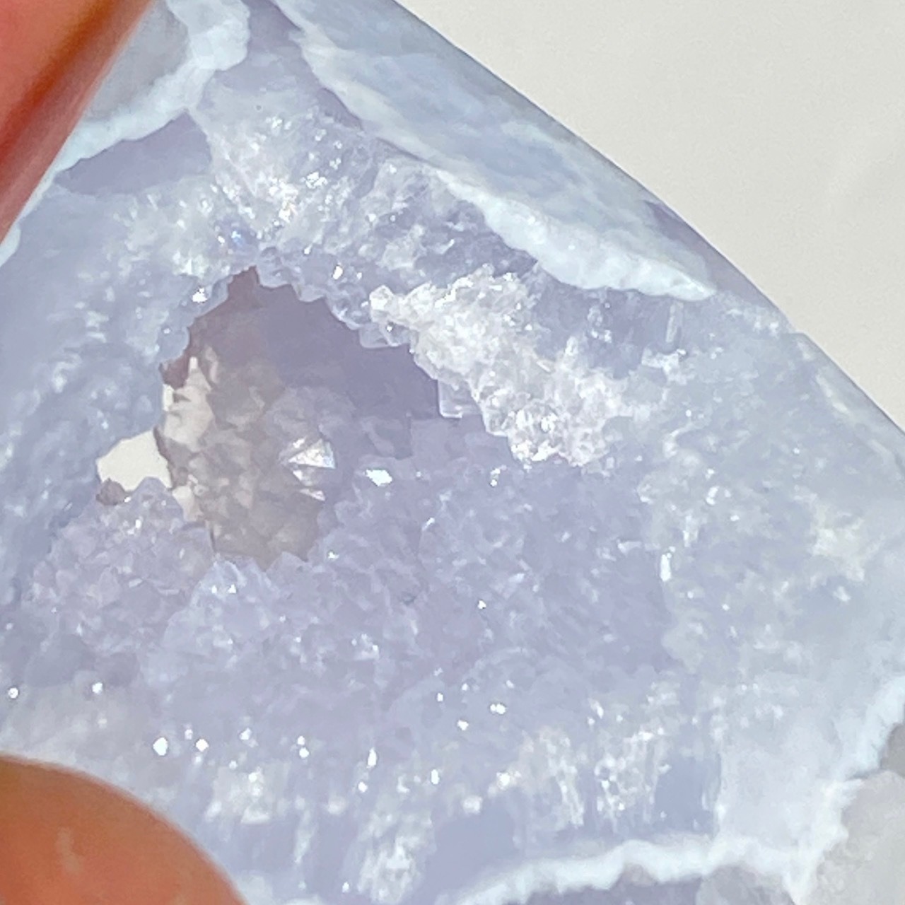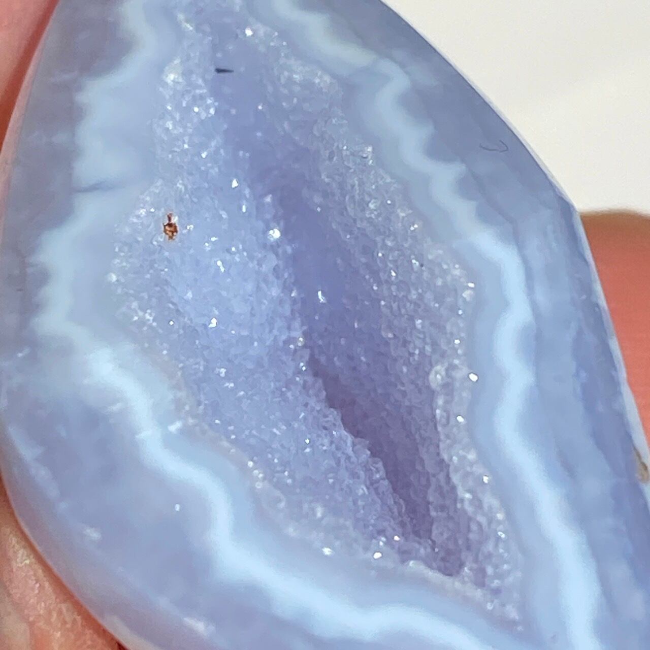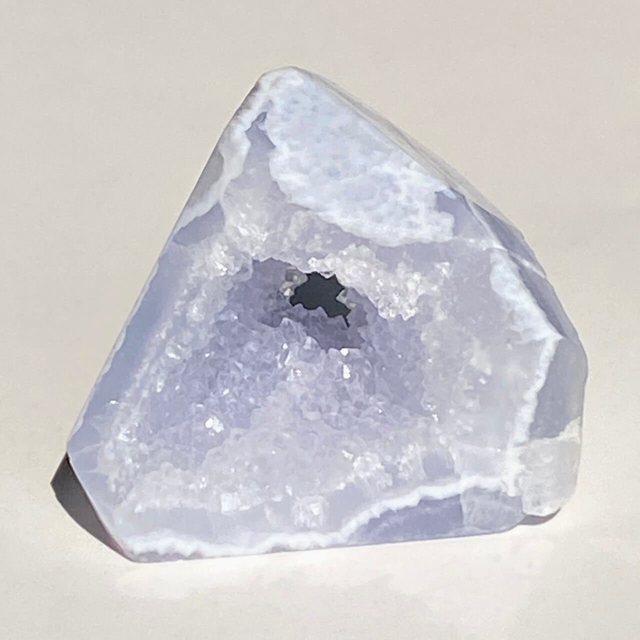 ブルーレースアゲート(和名:空色縞瑪瑙)のドゥルージー入りミニフリーフォームアソート3個セットなります。美しいバンディングと柔らかな煌めきを放つドゥルージー、そして心を穏やかにさせてくれる澄んだライトブルーが美しい子達です。アゲートの中でも算出量が少なく、世界中に愛好家がいるため、サイズが小さくても高値で取引されています。