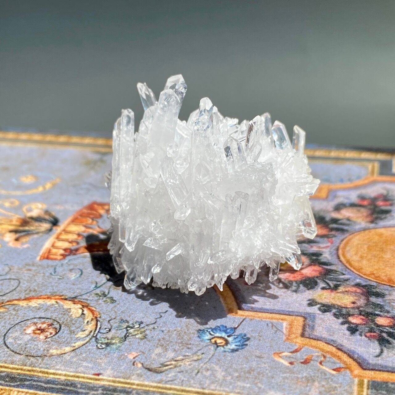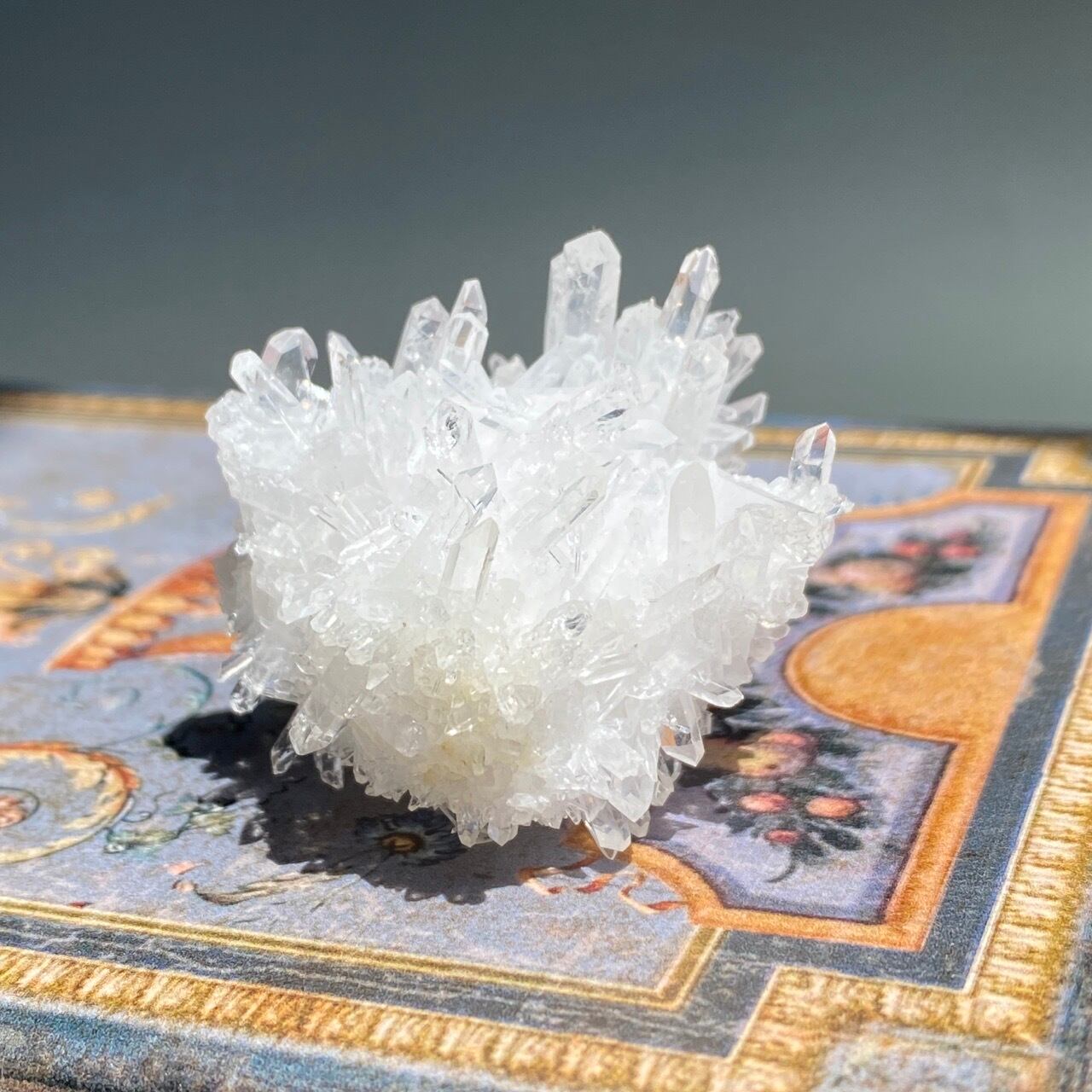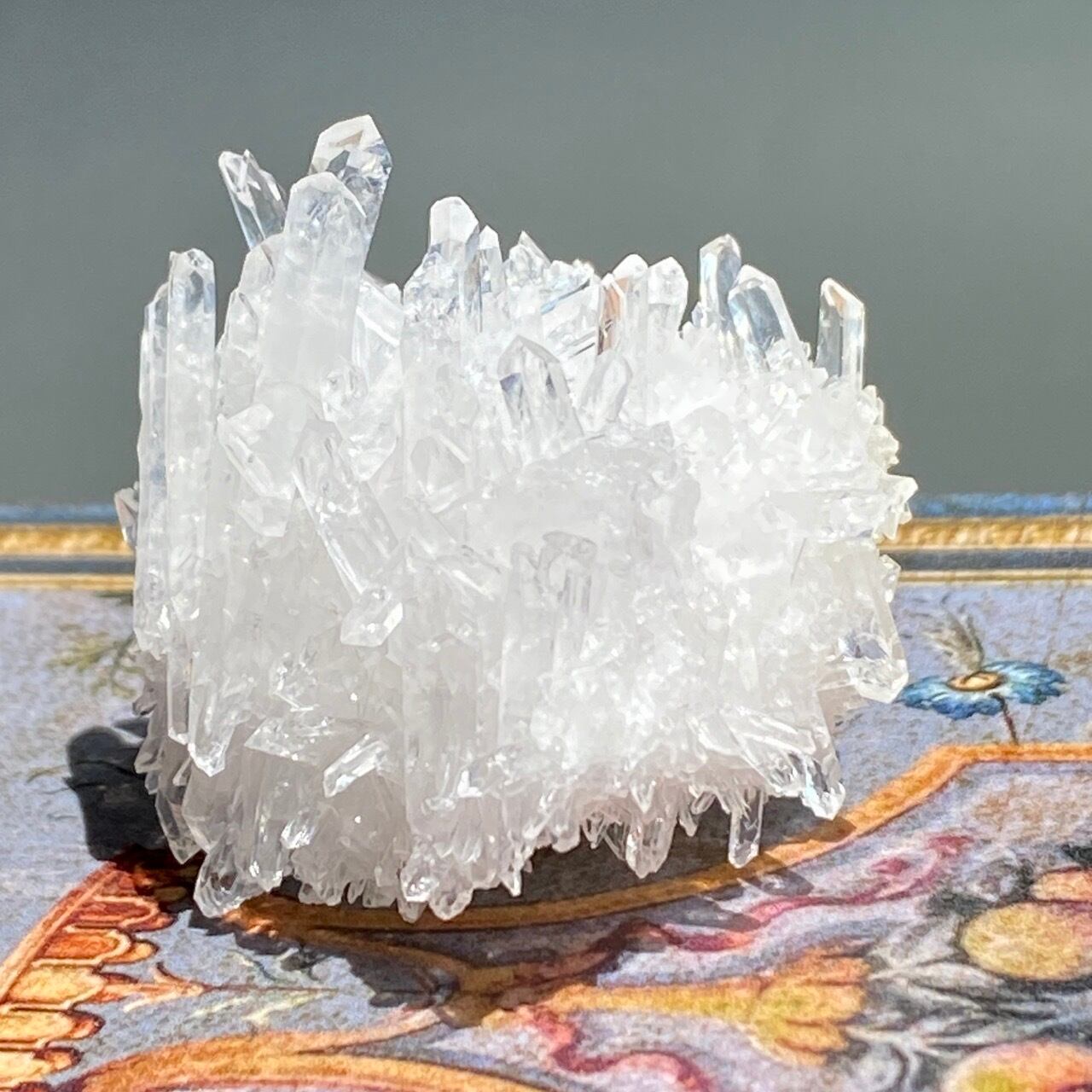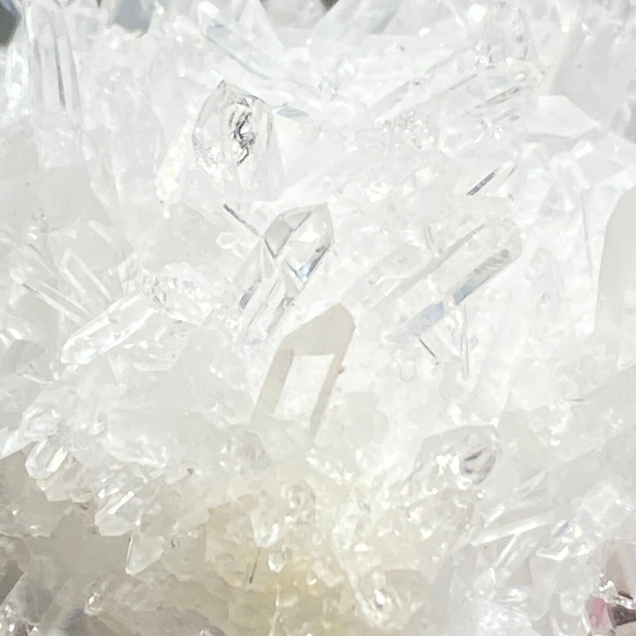 氷の様な清涼感と非常に繊細な極細ポイントが可愛い、ピュアホワイトのプチサイズ水晶クラスターになります。ちょこんと座った姿が愛おしいです。