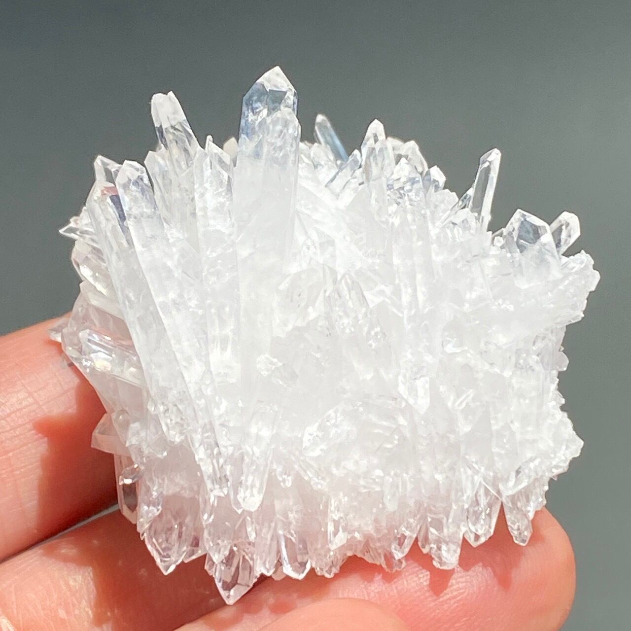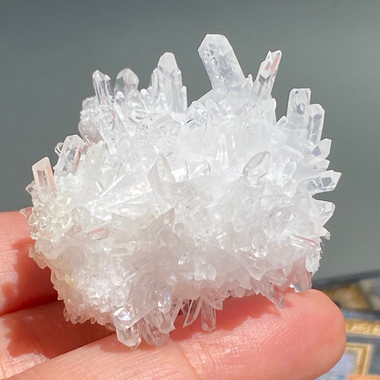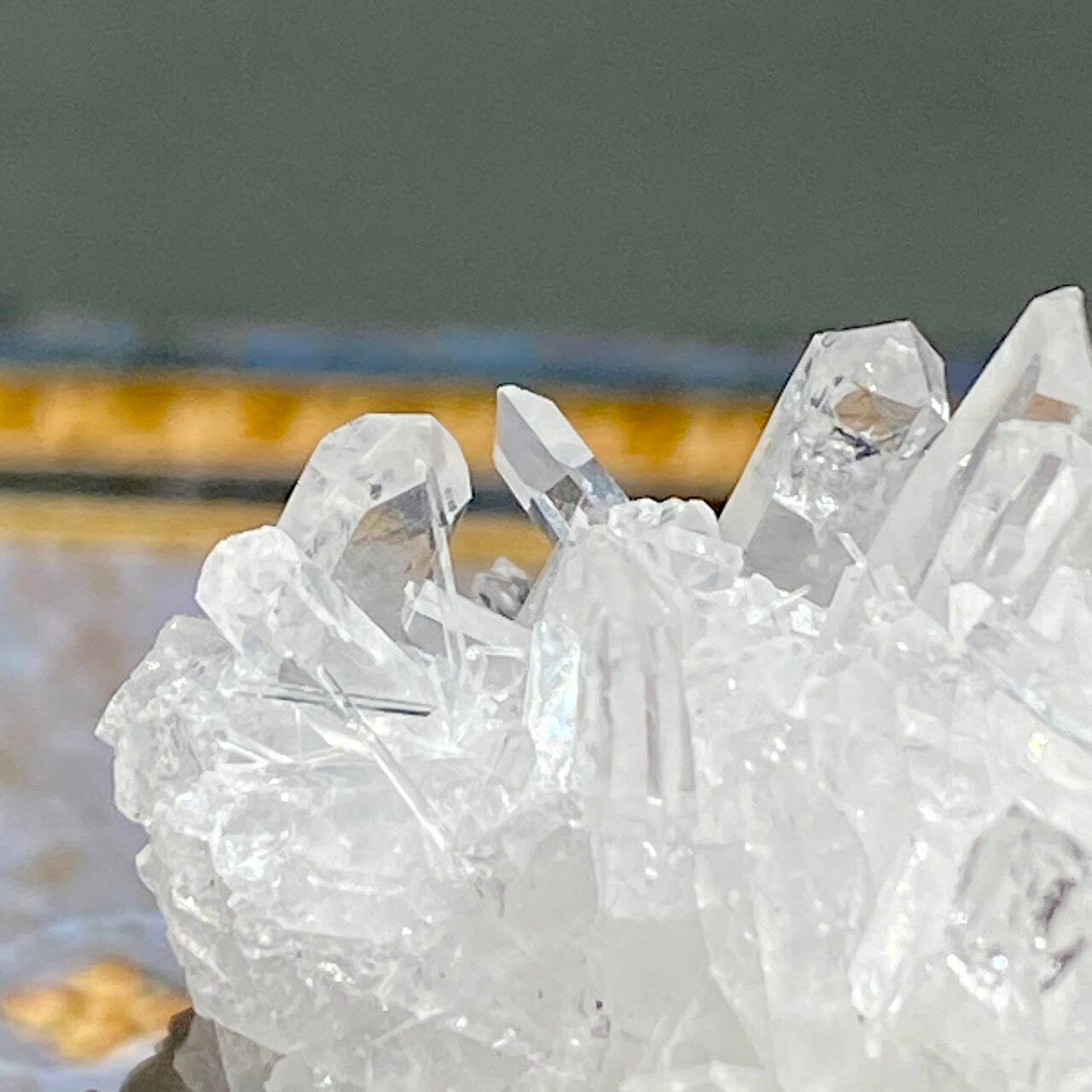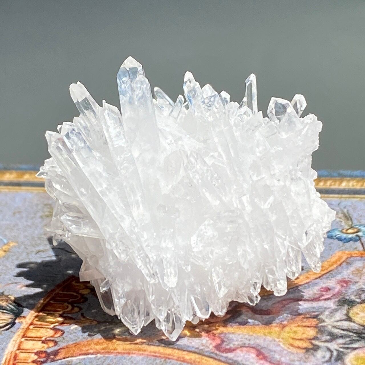 氷の様な清涼感と非常に繊細な極細ポイントが可愛い、ピュアホワイトのプチサイズ水晶クラスターになります。ちょこんと座った姿が愛おしいです。