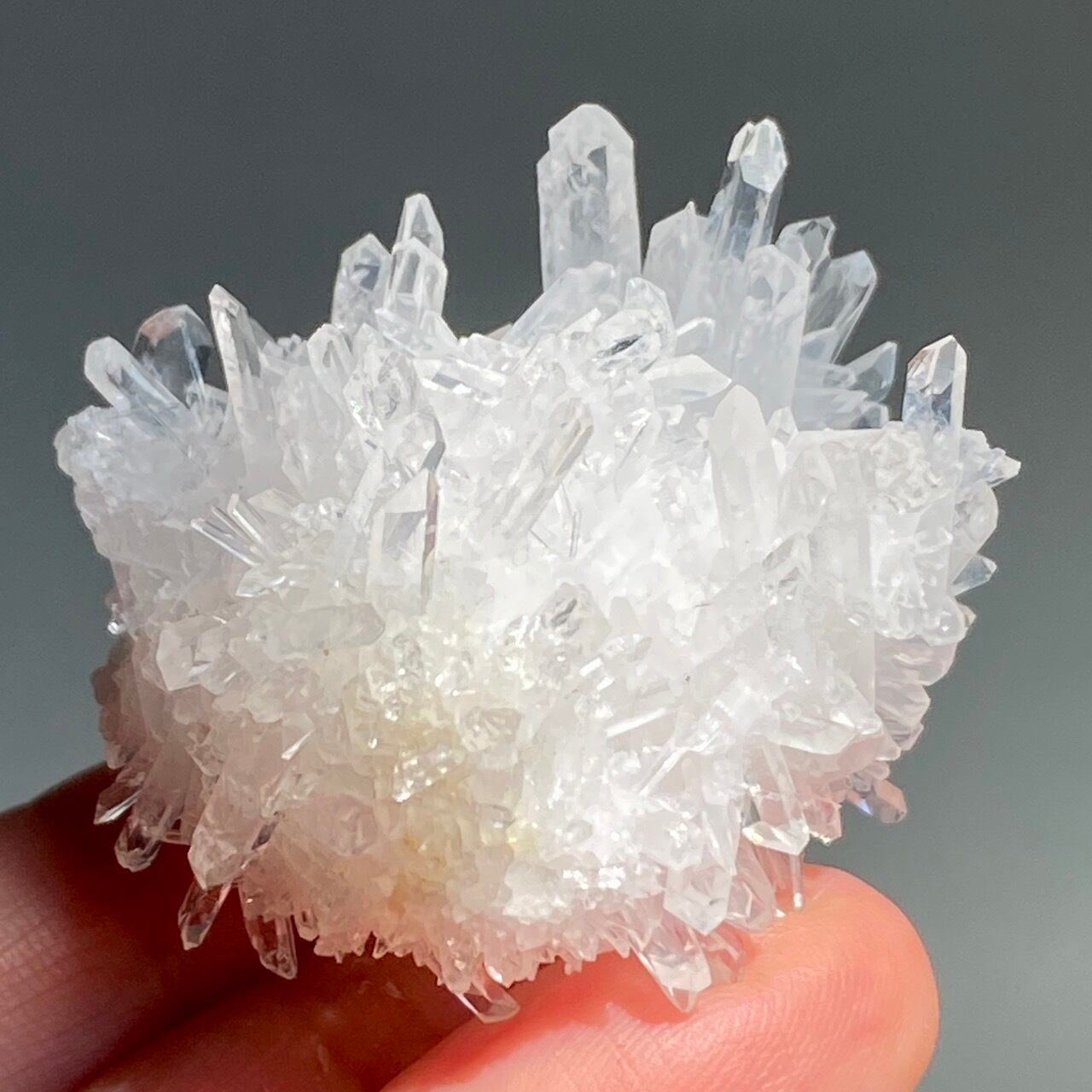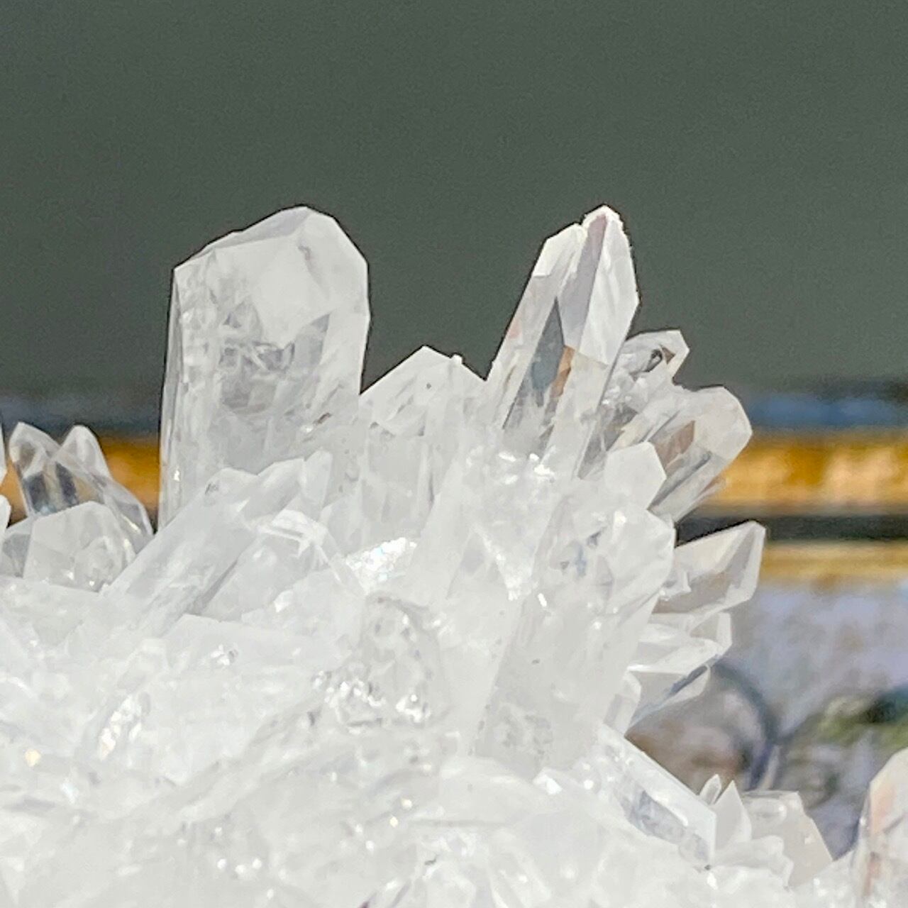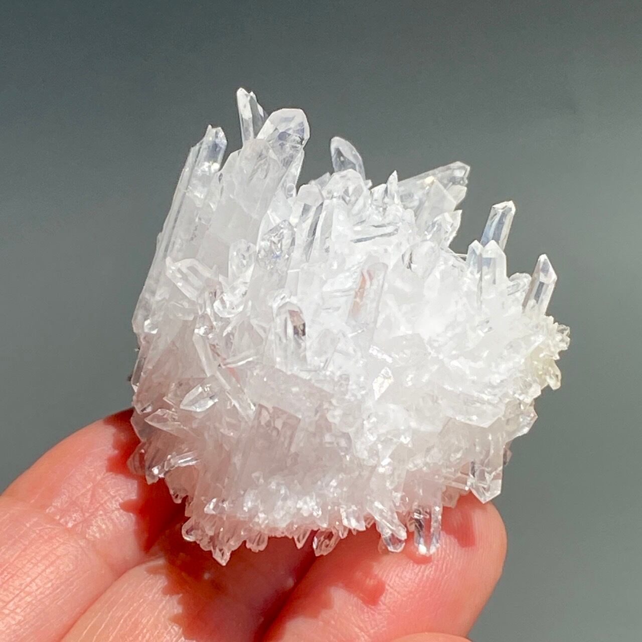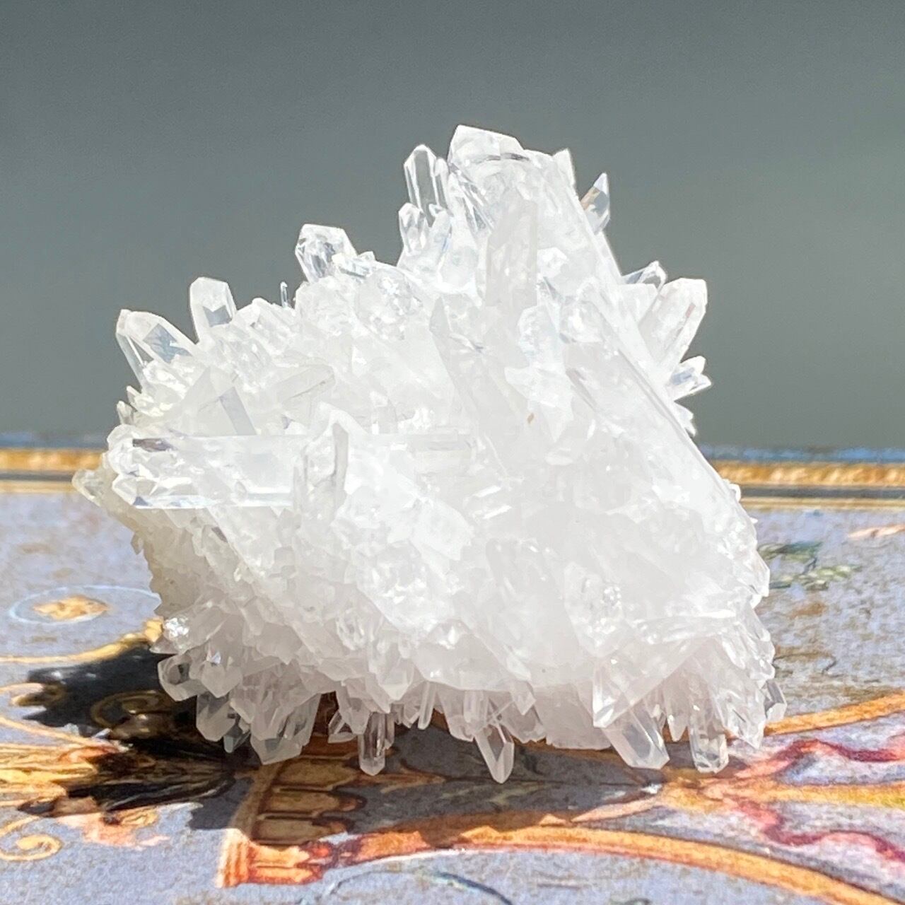 氷の様な清涼感と非常に繊細な極細ポイントが可愛い、ピュアホワイトのプチサイズ水晶クラスターになります。ちょこんと座った姿が愛おしいです。
