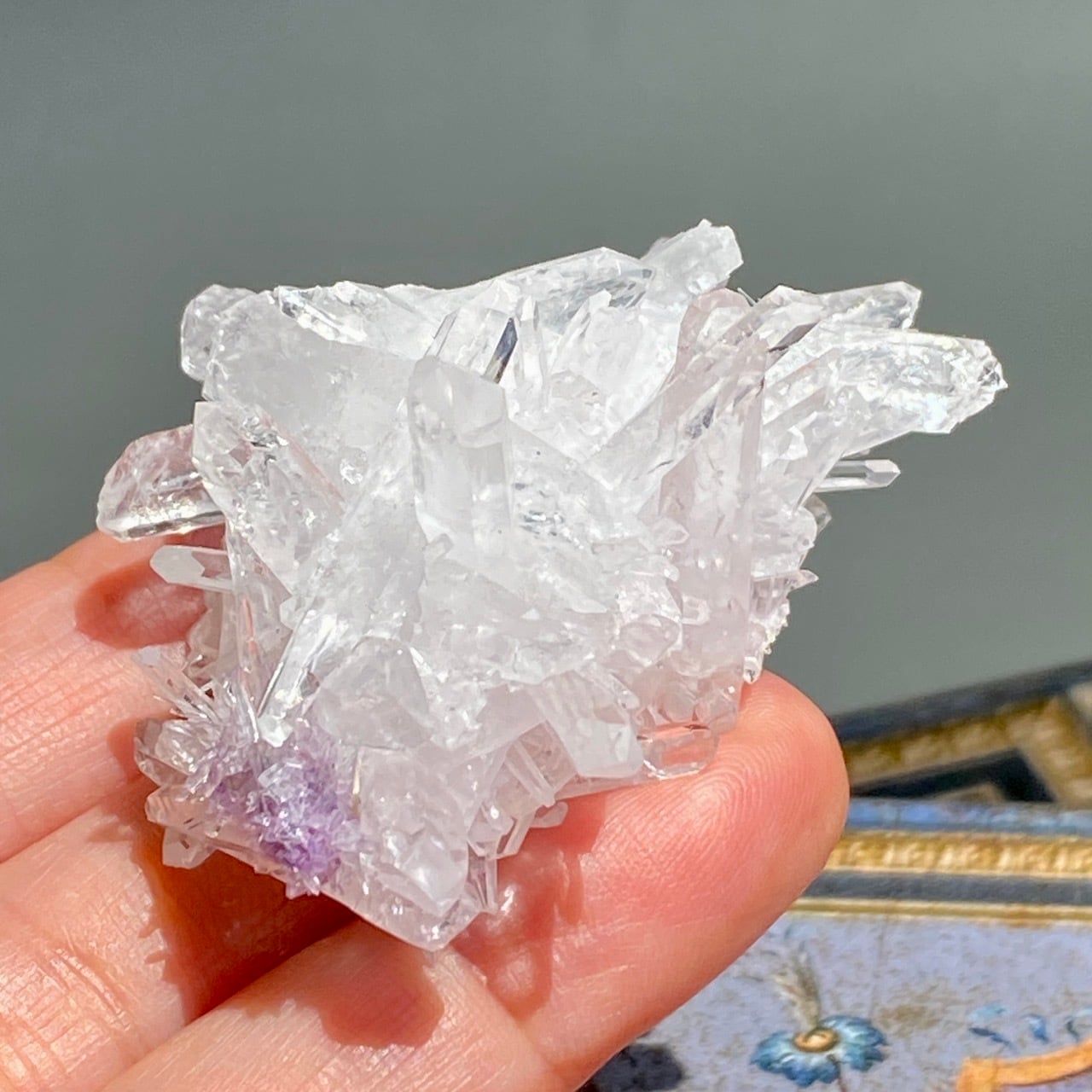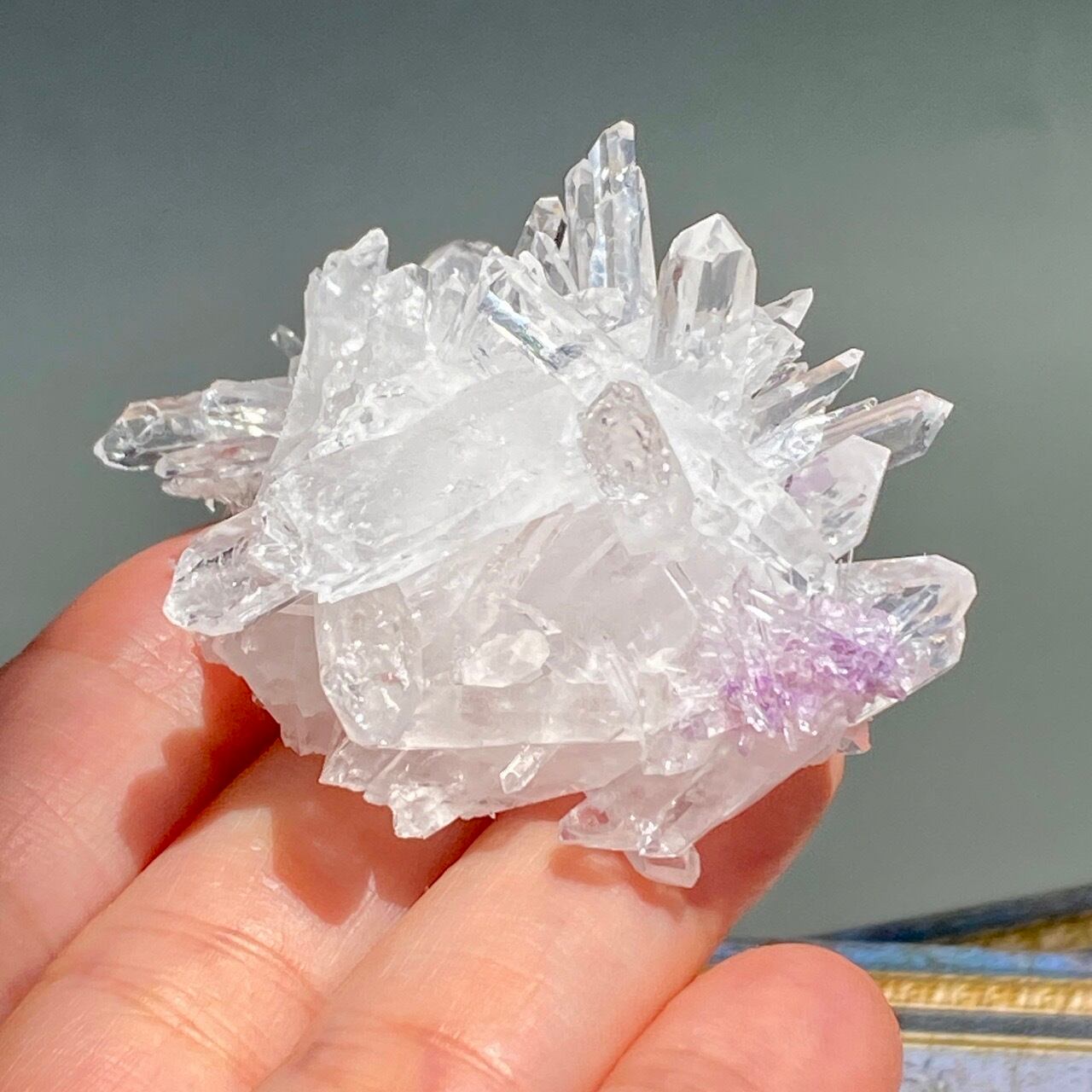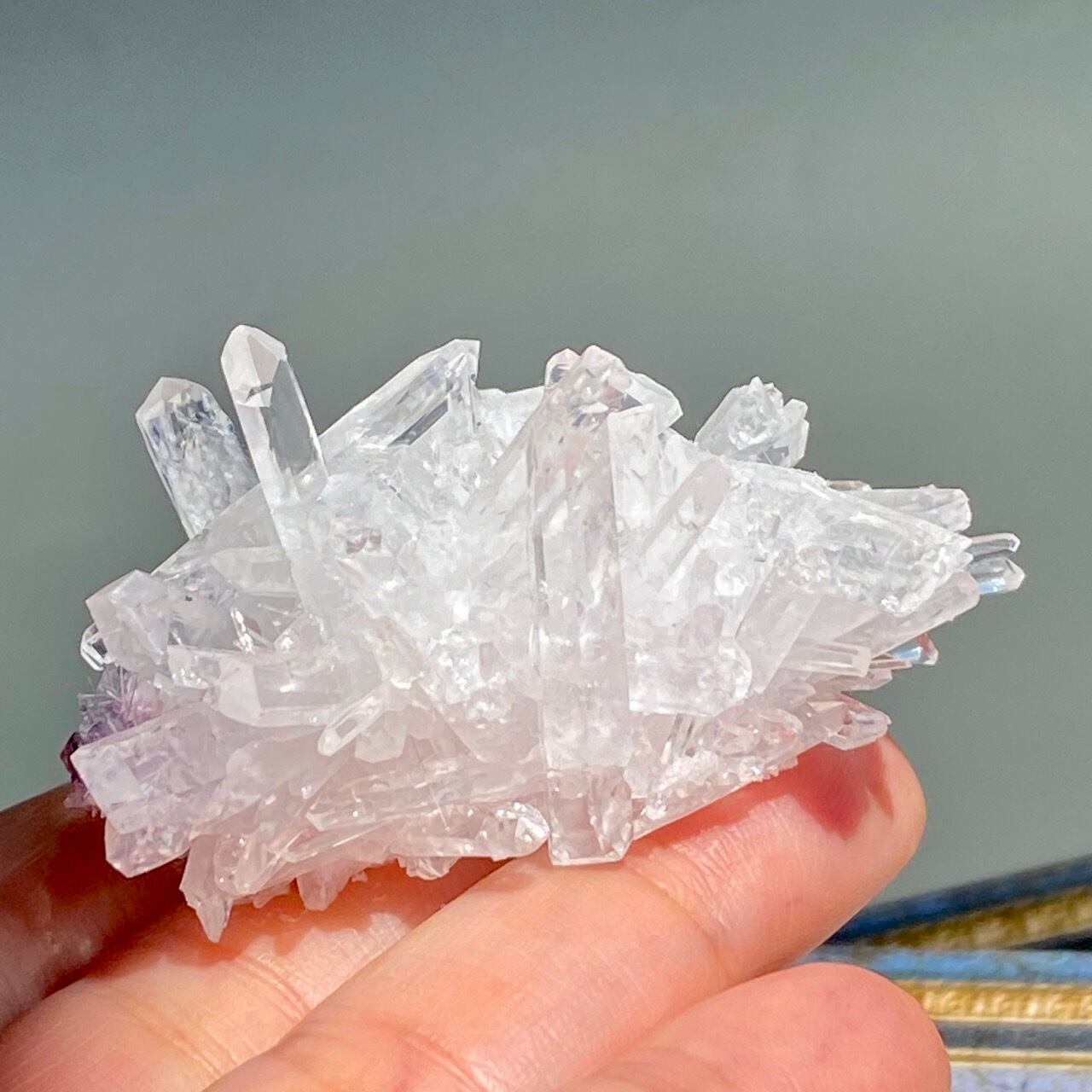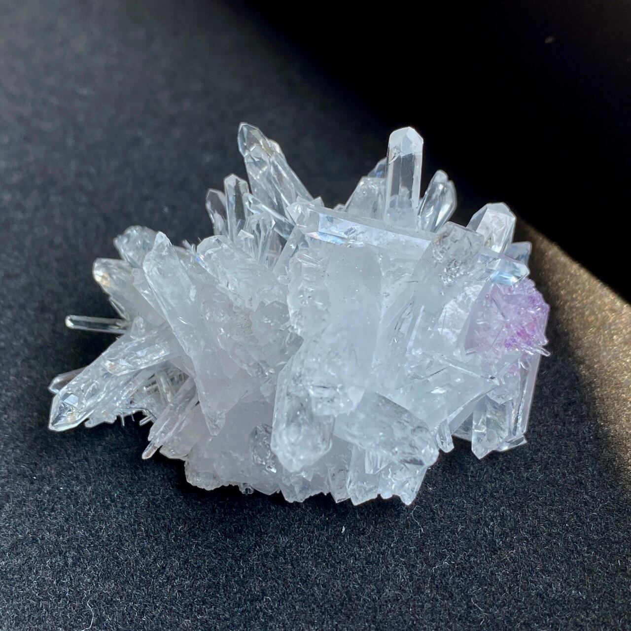 氷の様な清涼感と非常に繊細な極細ポイントが可愛い、ピュアホワイトのプチサイズ水晶クラスターになります。ちょこんと座った姿が愛おしいです。