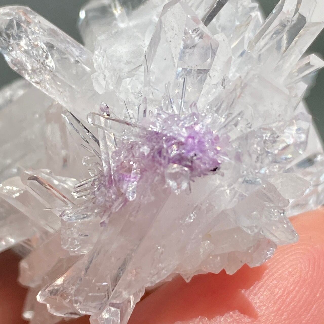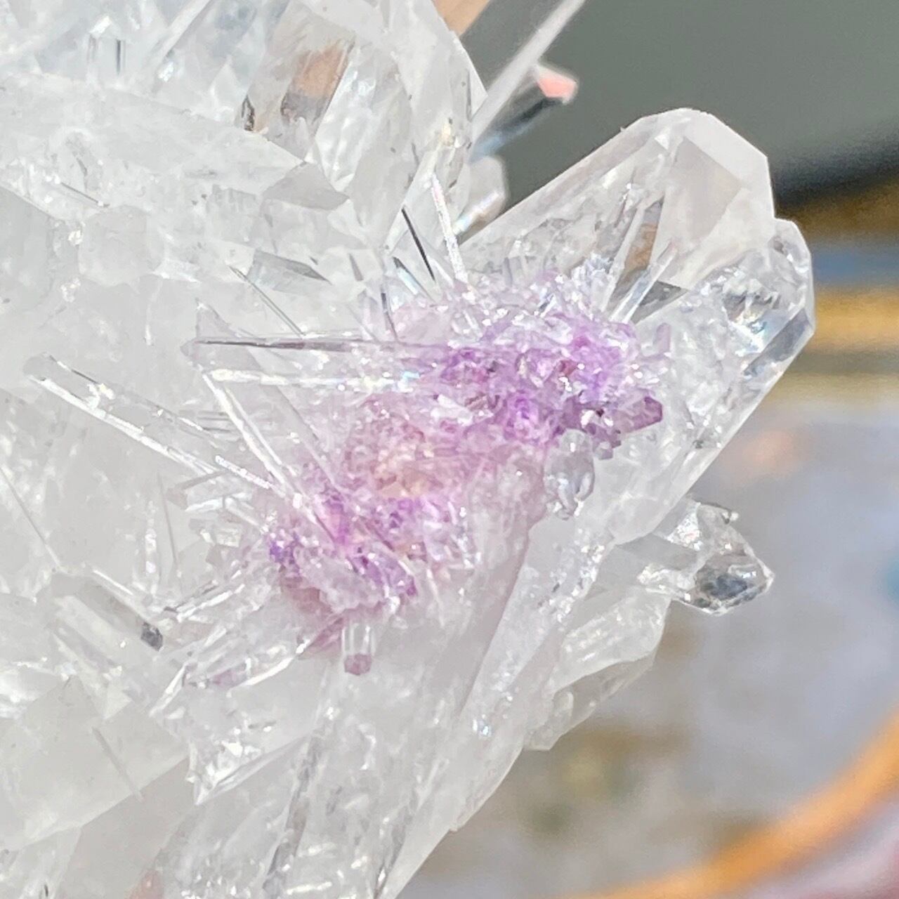 ほんの少し、ラベンダー色のアメシストが共生するラブリーな子です。この部分を発見した時に心がおどりました♡