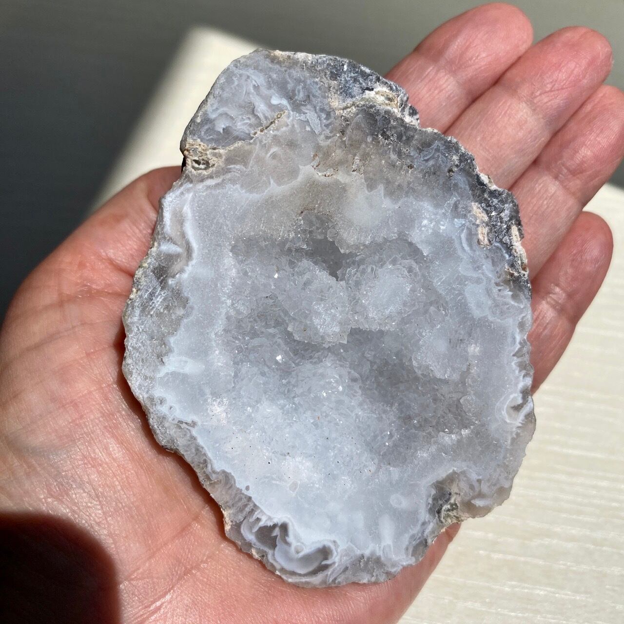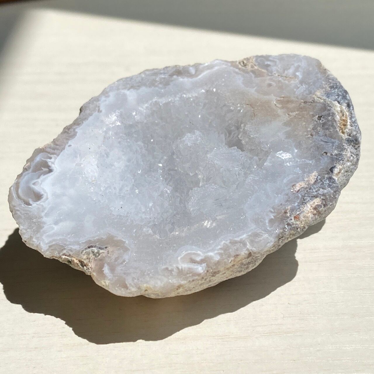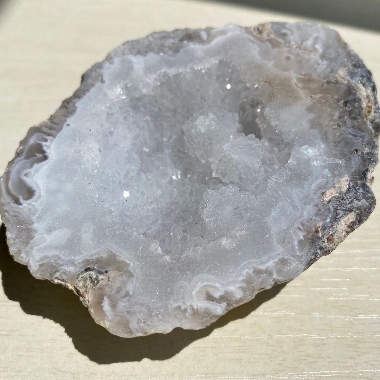 きらきら光るドゥルージークォーツ入りアゲートのジオード Agate Geode with Druzy Quartz RW6231
