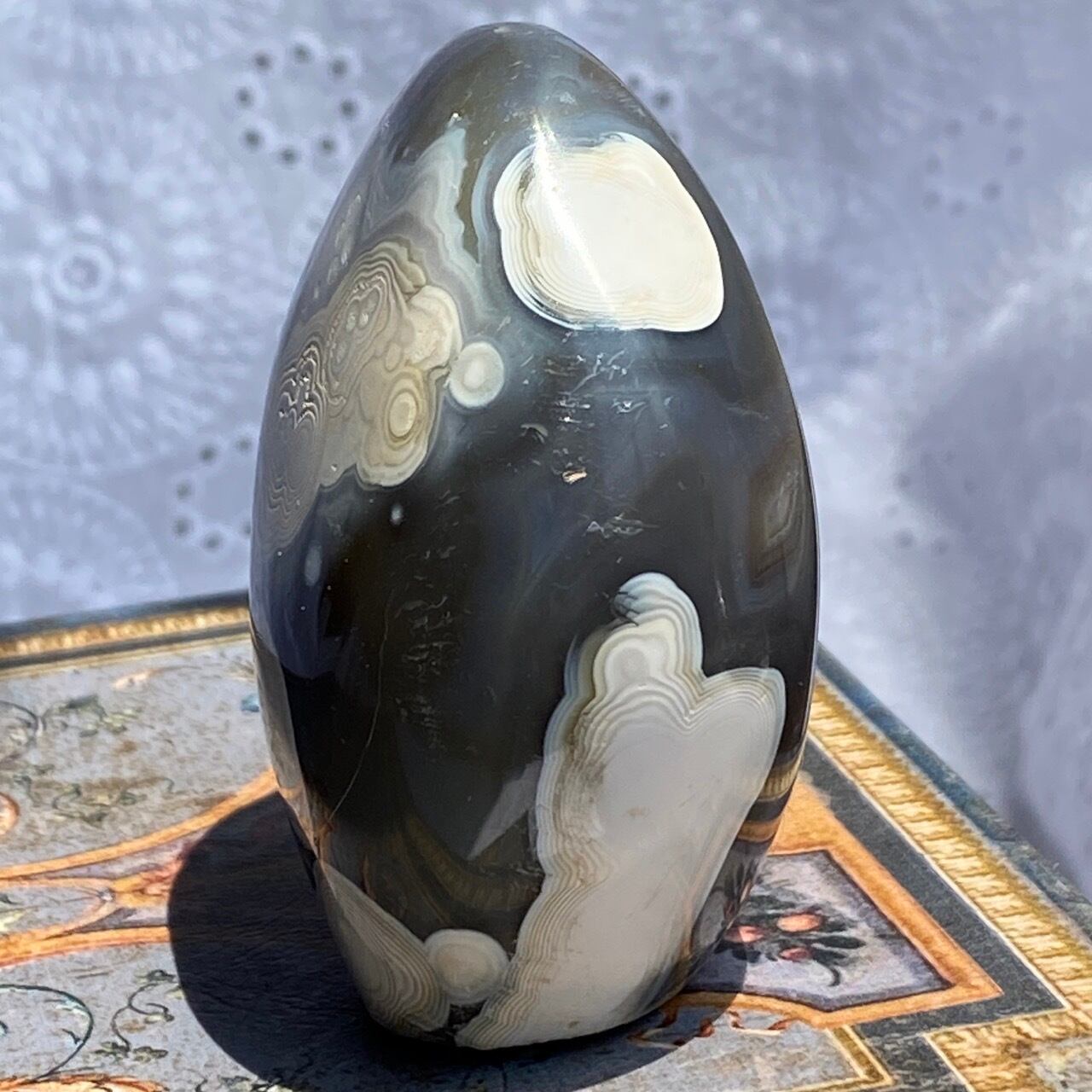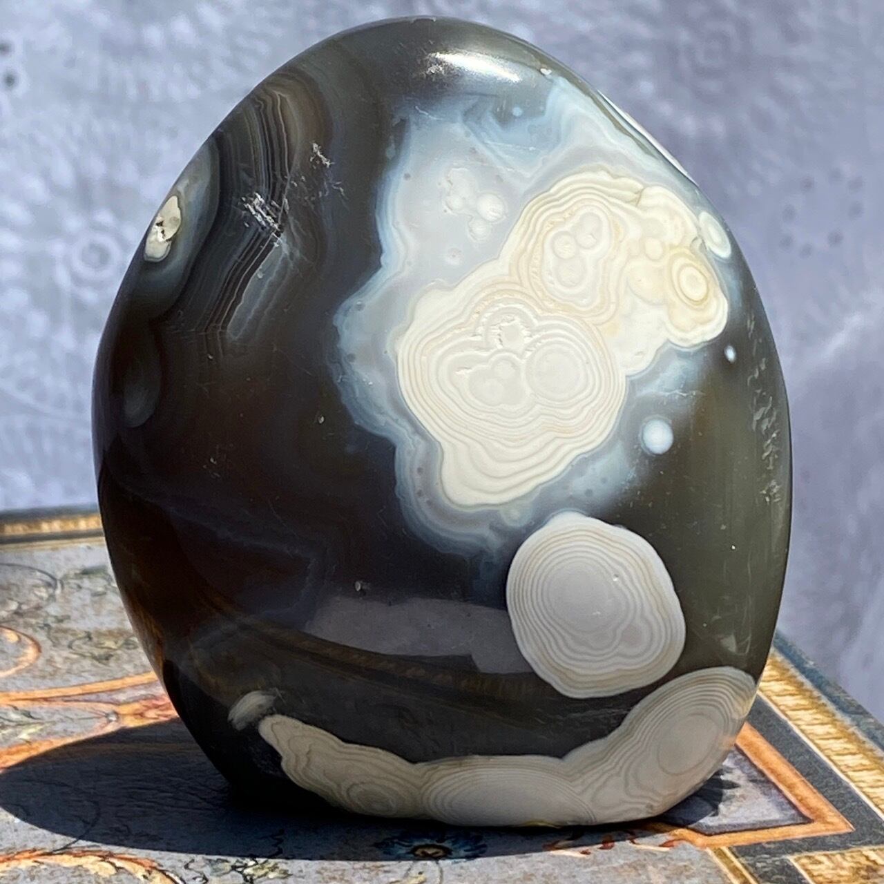 まるでシャチのような濃紺にミルキーな色の斑点が特徴のオルカアゲートは、自分自身と深く向き合う為のサポートをしてくれる石と言われています。
