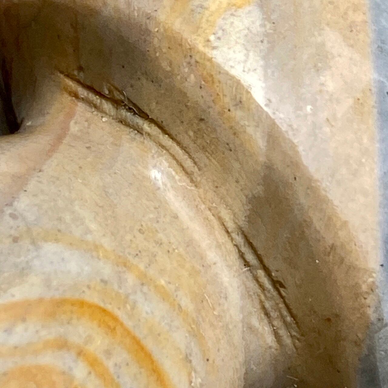 ※全部写しきれていませんが、他のジャスパーと同様、キズやクラック、チップや凹み、そして溝等がございます。また、底面にが平らでなおため若干ぐらつく事、傘の裏の部分にカービング時にできたであろうキズや溝等がある事をご了承ください。