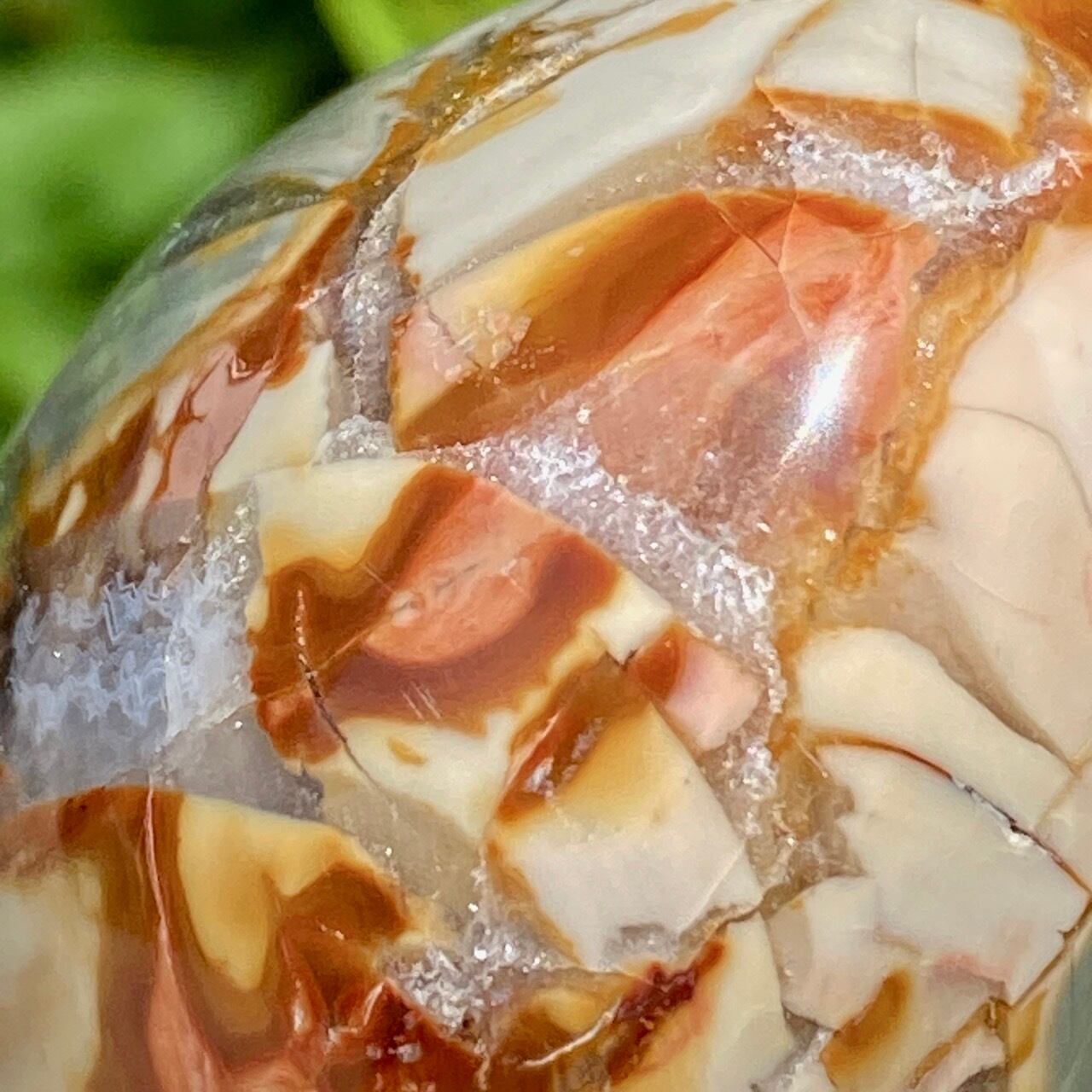 アイビスジャスパーは壊れた卵の殻の様な模様のためエッグシェルジャスパーとも呼ばれています。名前の由来はエジプトのIBIS BIRDの羽に類似しているらそう名付けられたそうです。