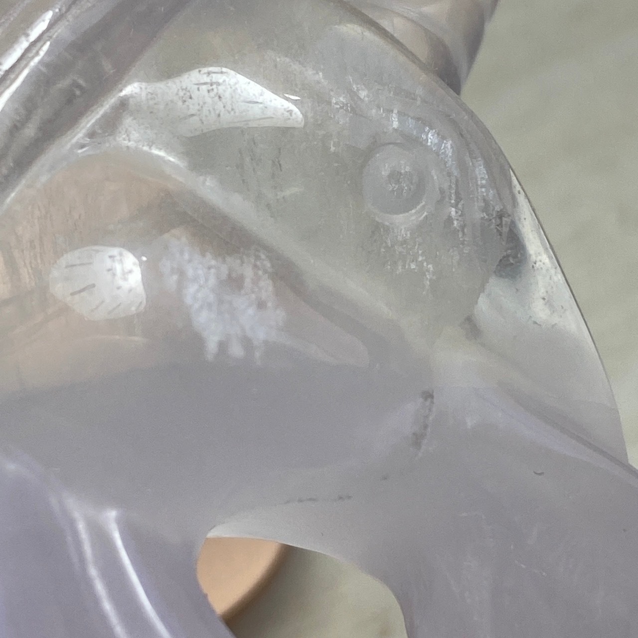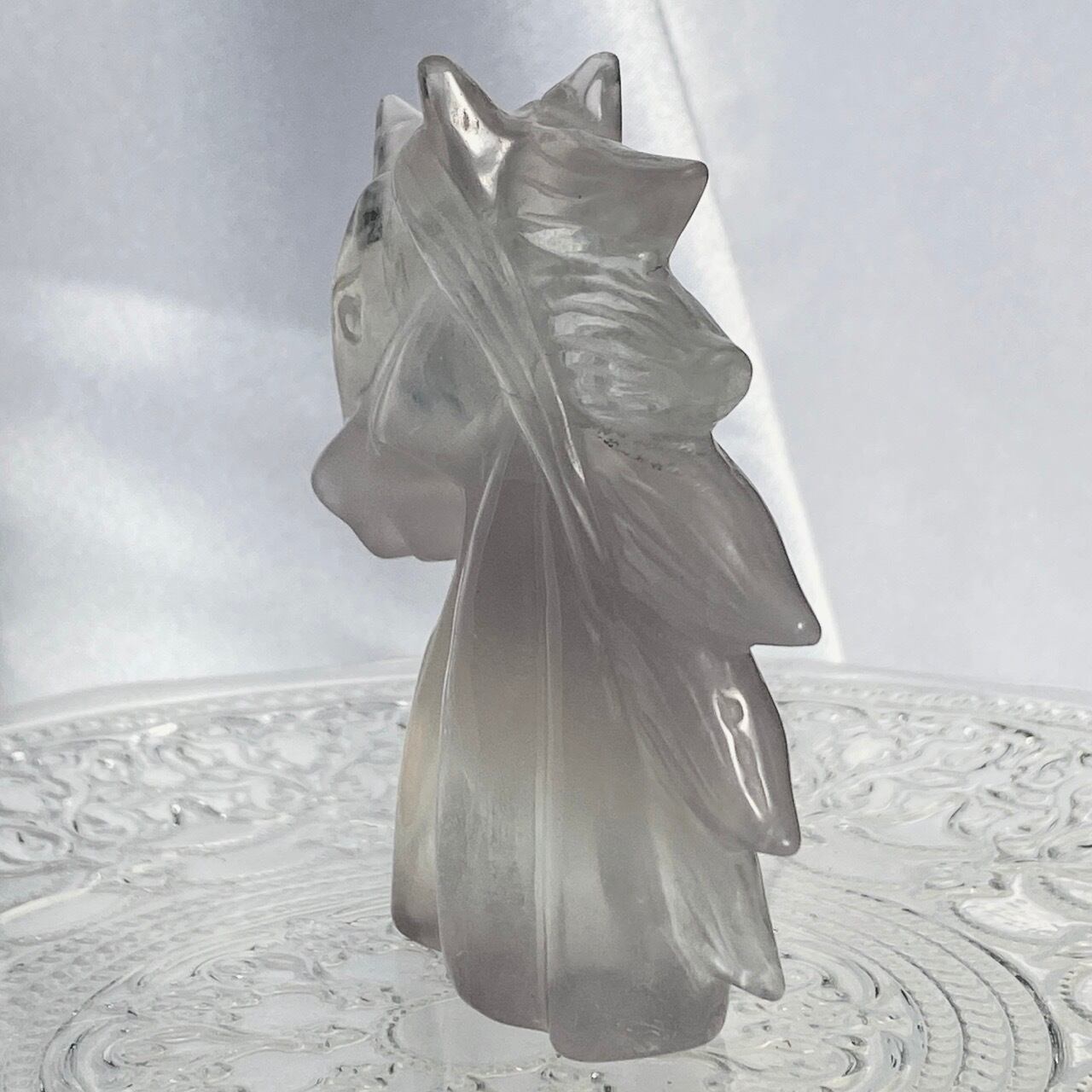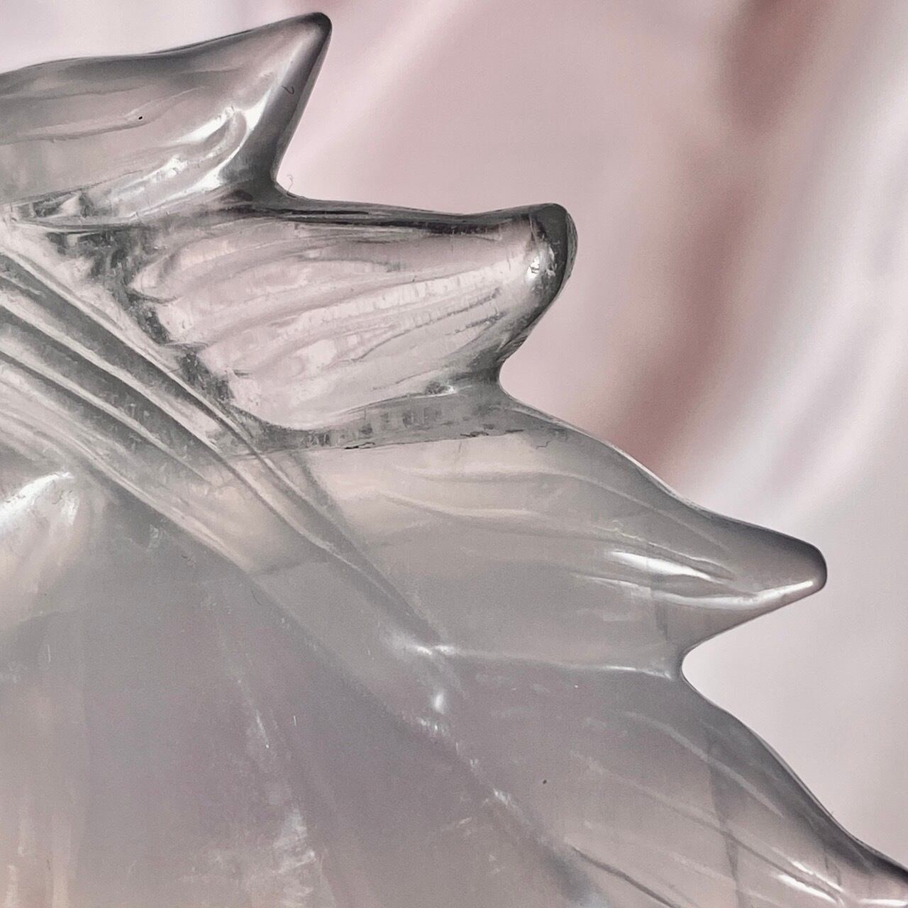 右の顔の目頭とチーク部分に関して黒点のように写っている箇所がありますが、ZOOM撮影で光が当たるとそうなりますが、目視では確認が難しい(極小のカービングのキズか何か?)です。チークに浮かぶ可愛い内包物を最終画像に載せました。