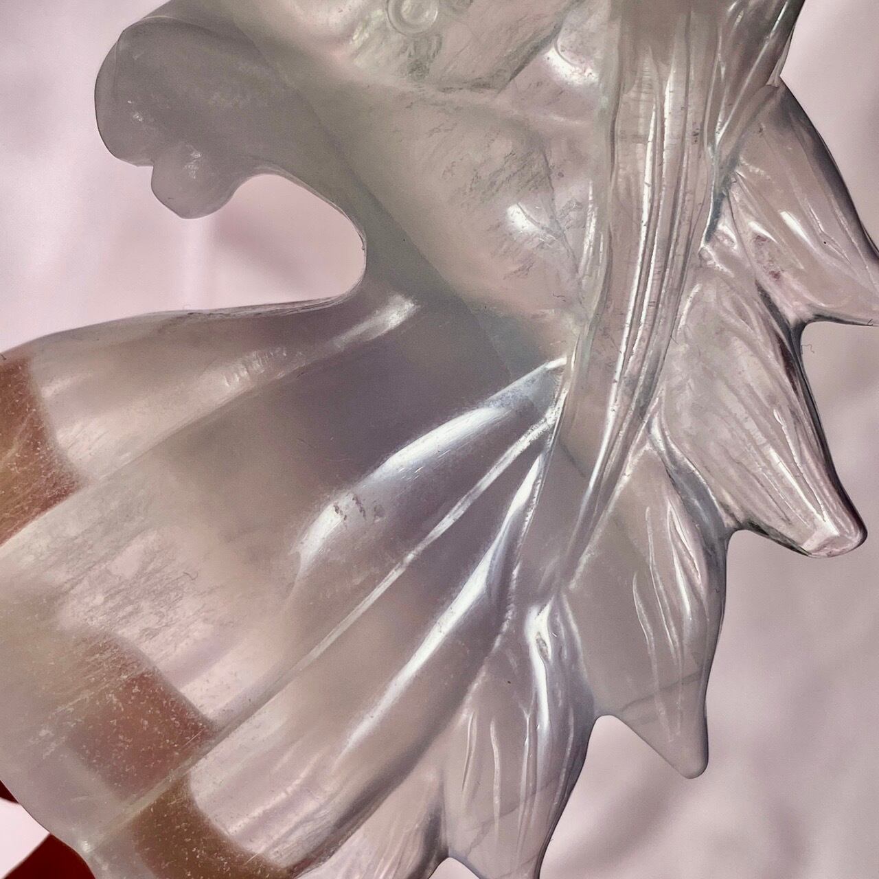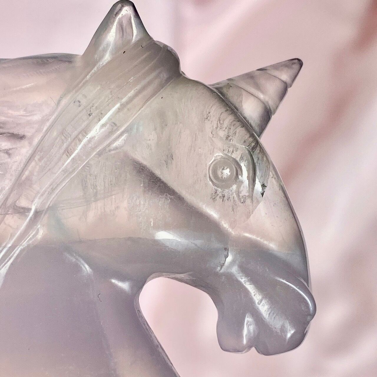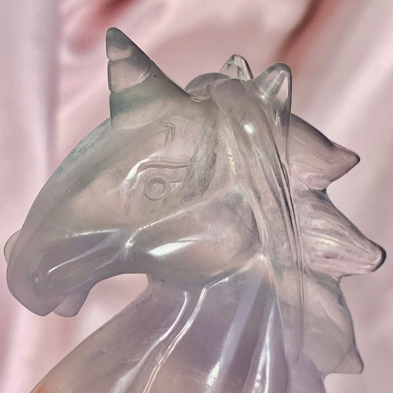 ラベンダーフローライトはイットリウムフローライトと呼ばれ、他のフローライトと異なりその成分の約20%がイットリウムという鉱物に置き換わることにより、このラベンダーカラーが生み出されています。まさにユニコーンにうってつけの石だと感じます。