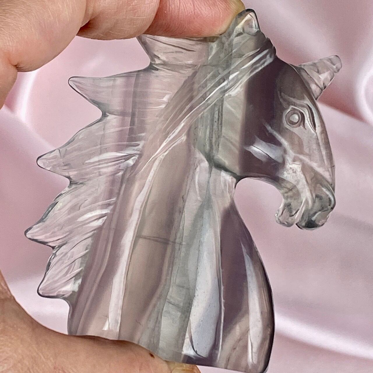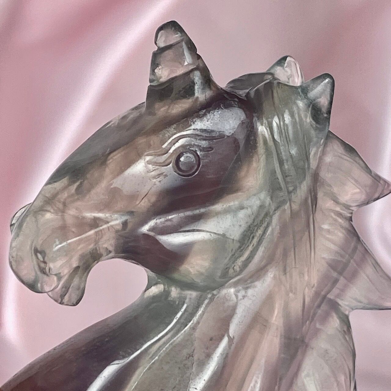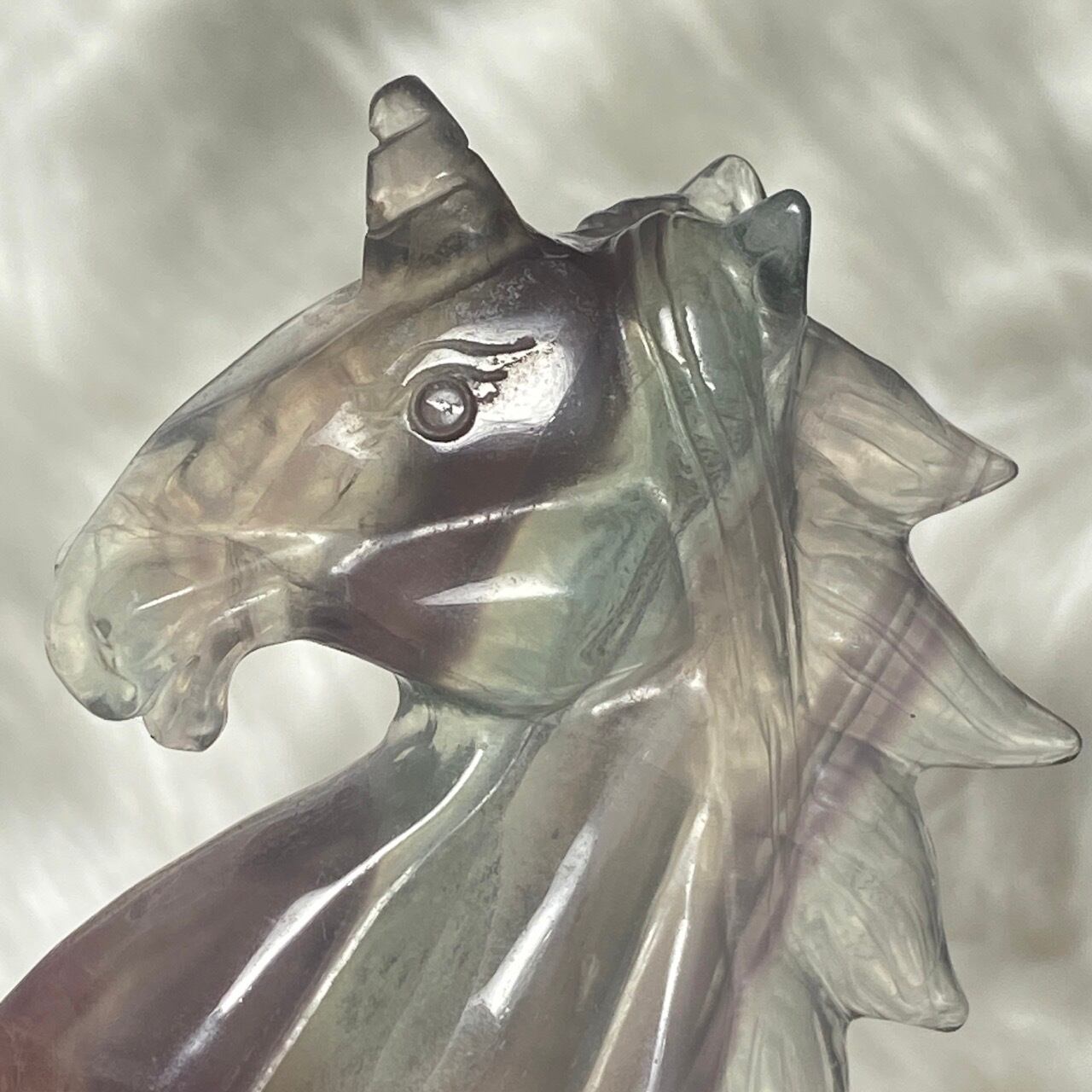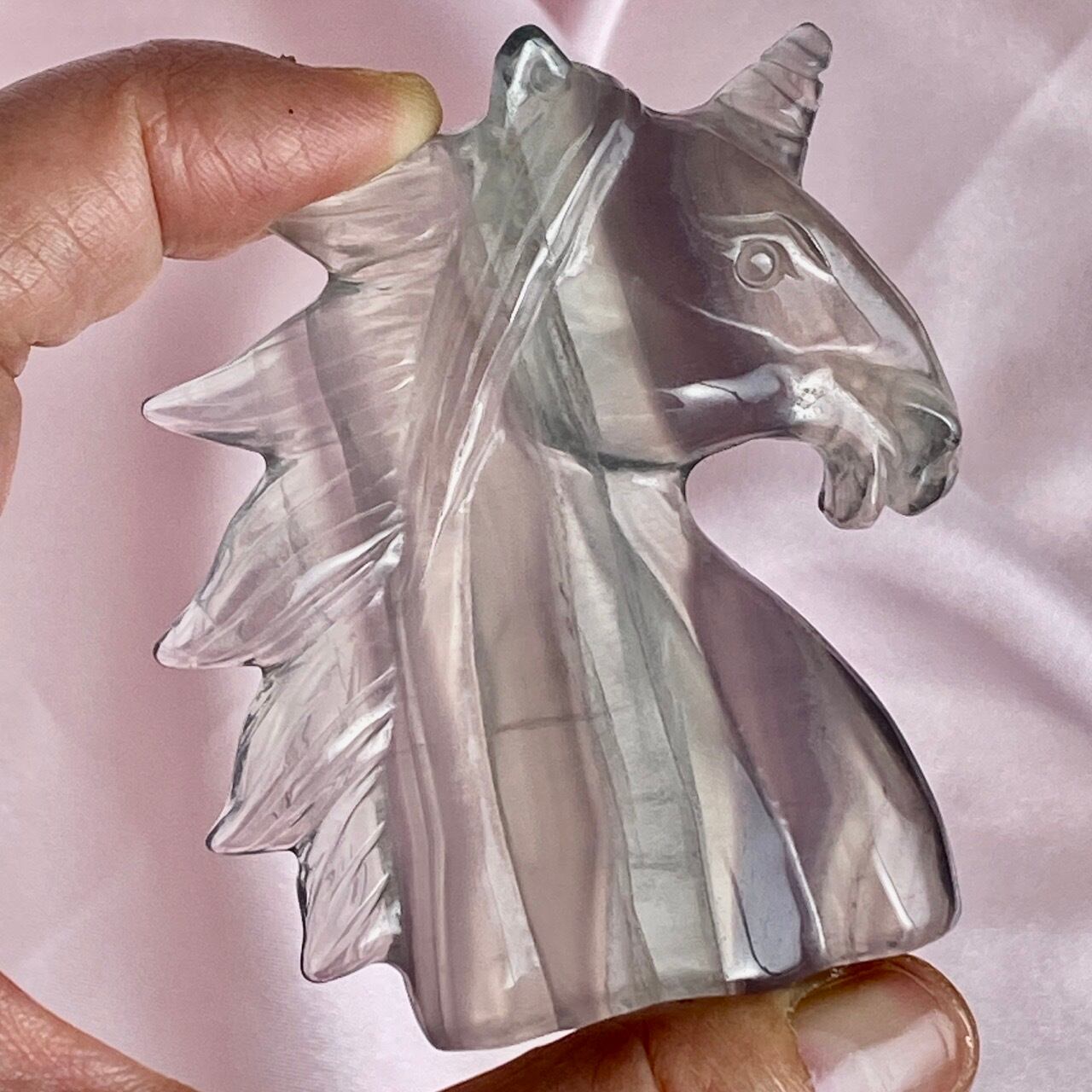 ラベンダーフローライトはイットリウムフローライトと呼ばれ、他のフローライトと異なりその成分の約20%がイットリウムという鉱物に置き換わることにより、このラベンダーカラーが生み出されています。柔らかなミントグリーンカラーとのコンビネーションも本当に可愛くて、まさにユニコーンにうってつけの石だと感じます。