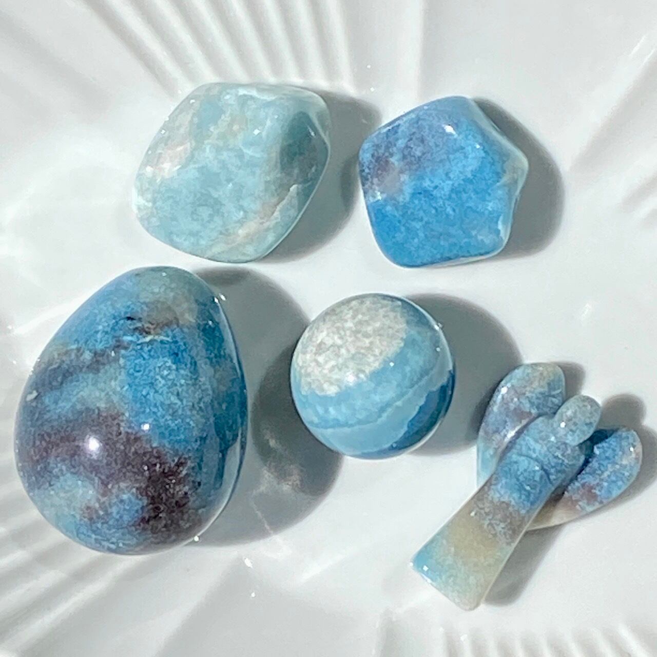 このセットはブルーのグラデーションがある子を♡エンジ中心に選びました。エンジェルは自立しますが、エッグやスフィアはホルダーが必要です。トロレアイト好きな方はお見逃しなく!