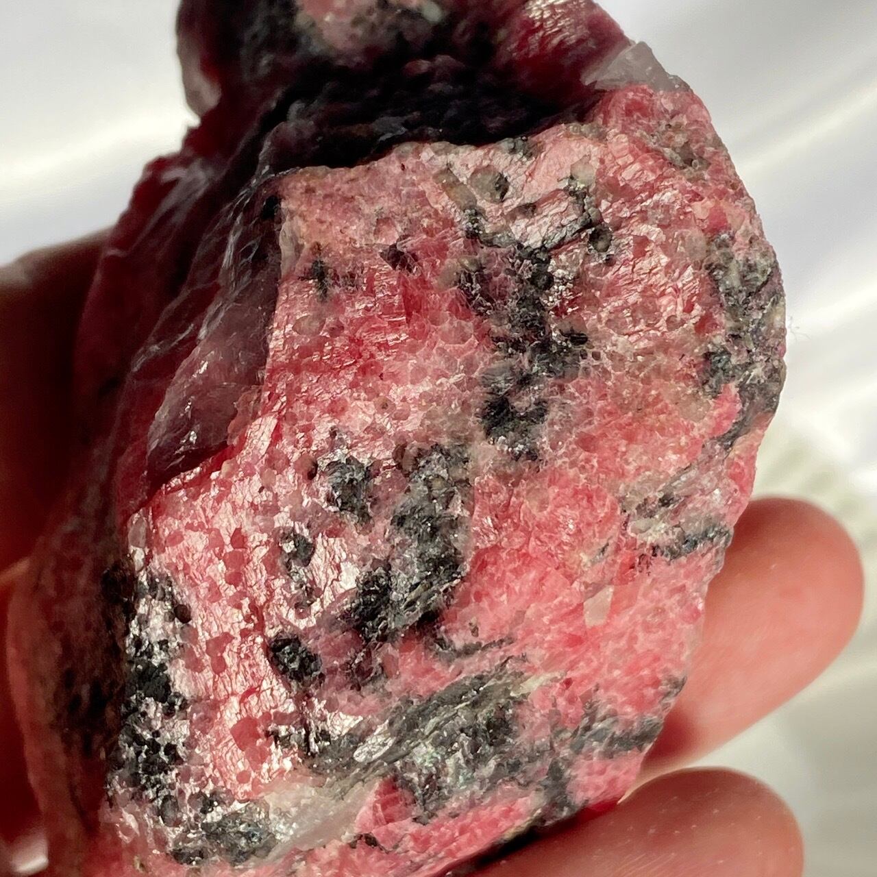 アメリカ産マトリックス付きロードナイトの原石になります。サプライヤーの新在庫の中でも、良質の証である色鮮やかで紅色が沢山入った子達を選びました。