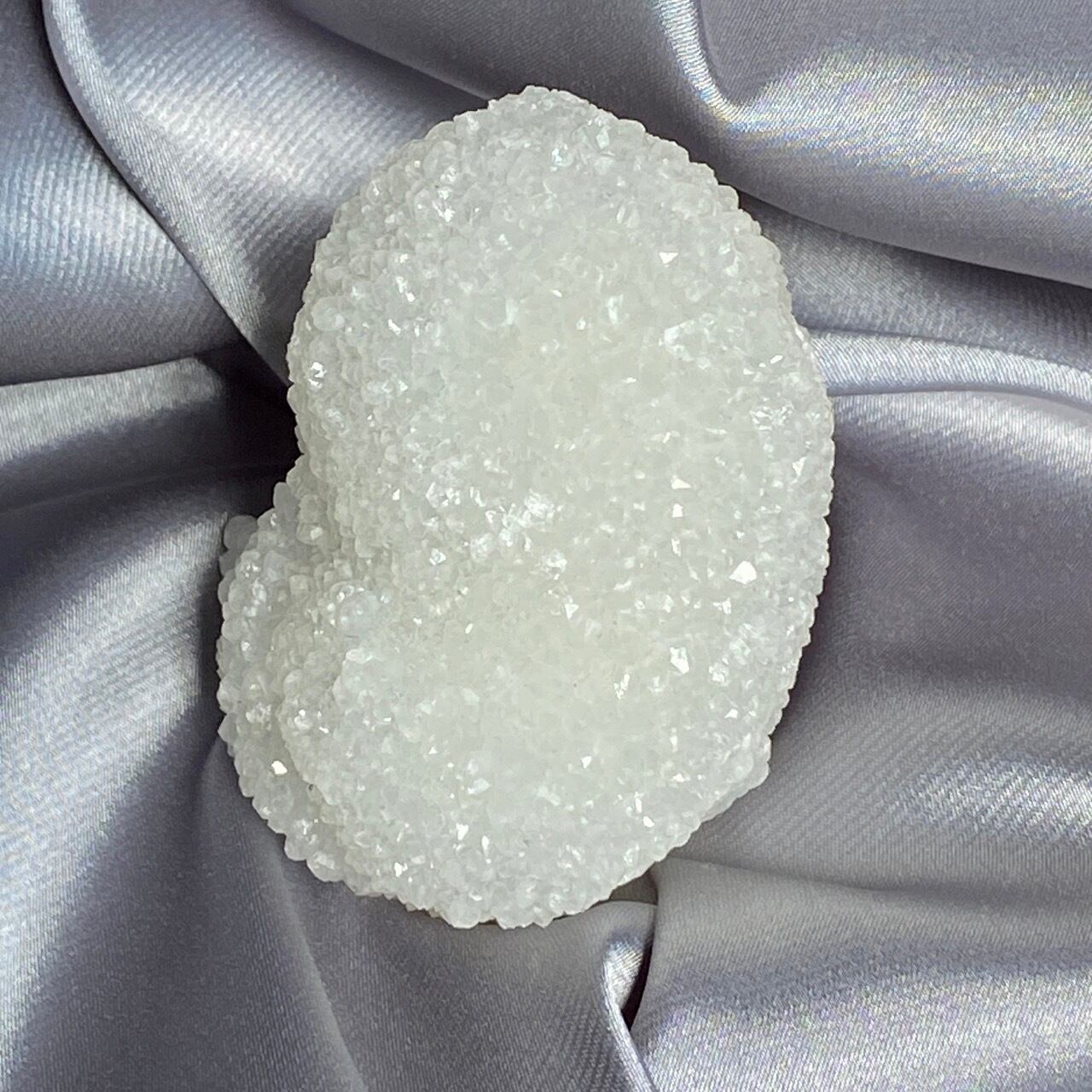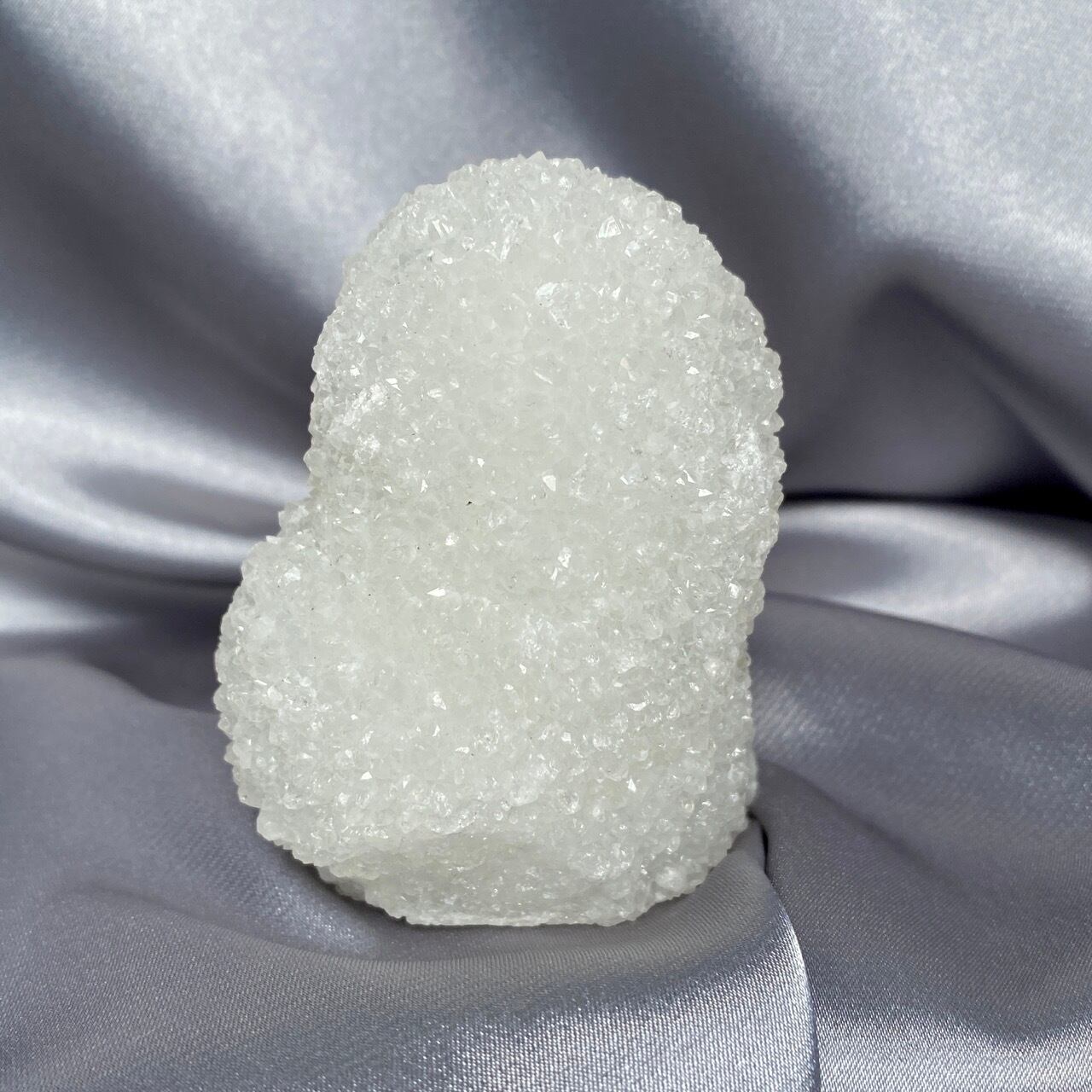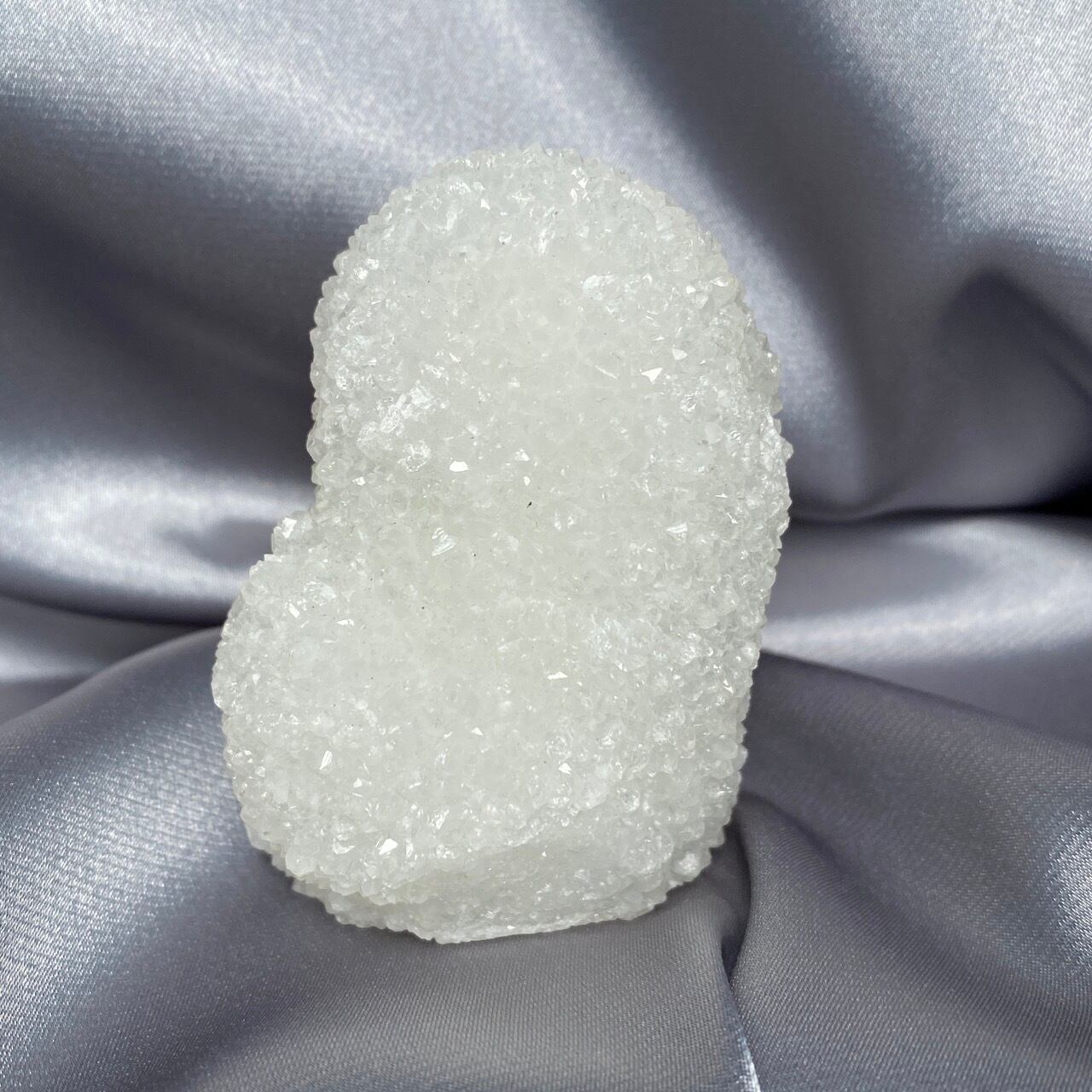 まるで砂糖菓子のようなクォーツで包まれた、スタラクタイトのスペシメン。そして雪だるまのような癒し系の形状♡この白い石を掌に置いて眺めているだけで優しさと愛情が心から放たれるような気がします。きらきらと優しい光が煌めきます。