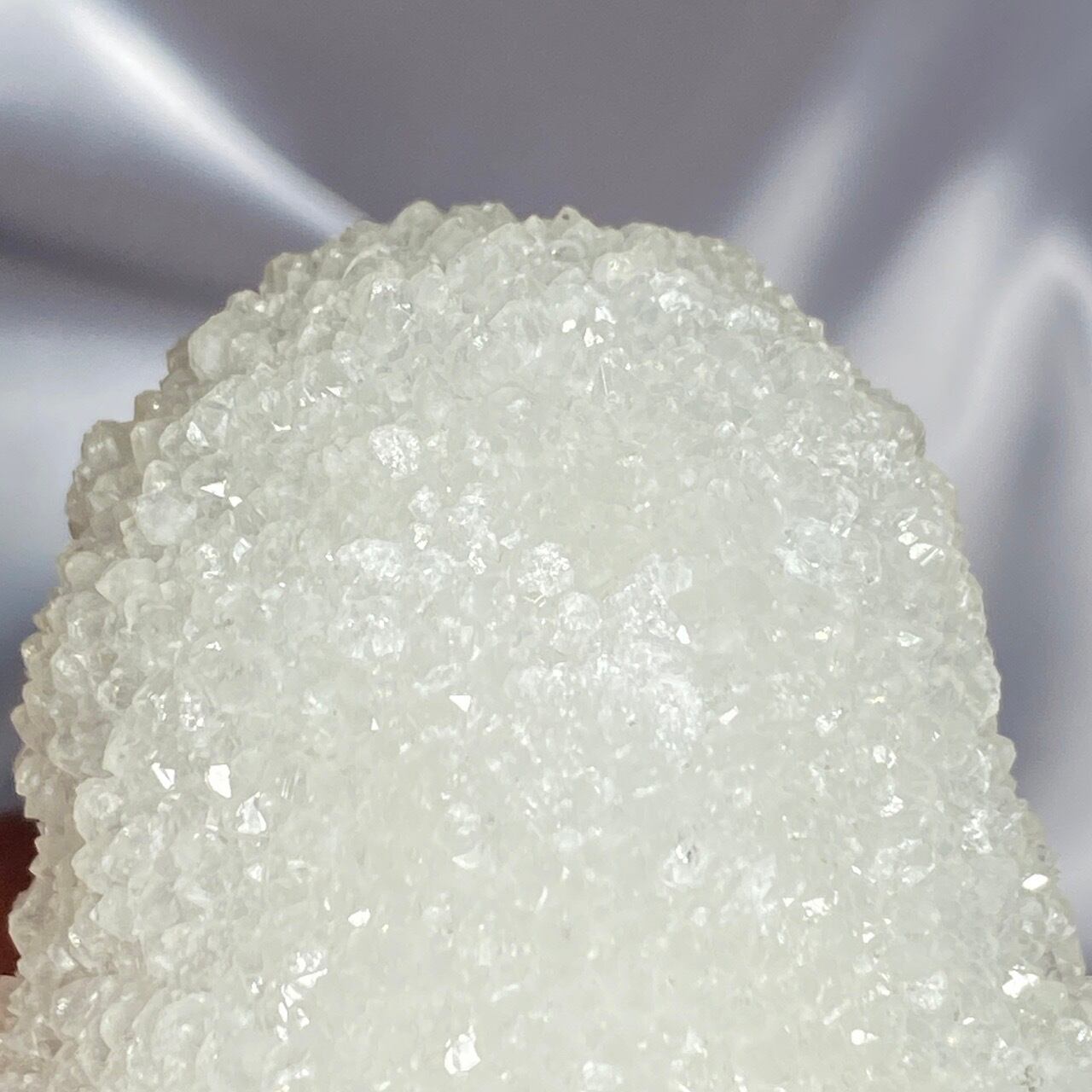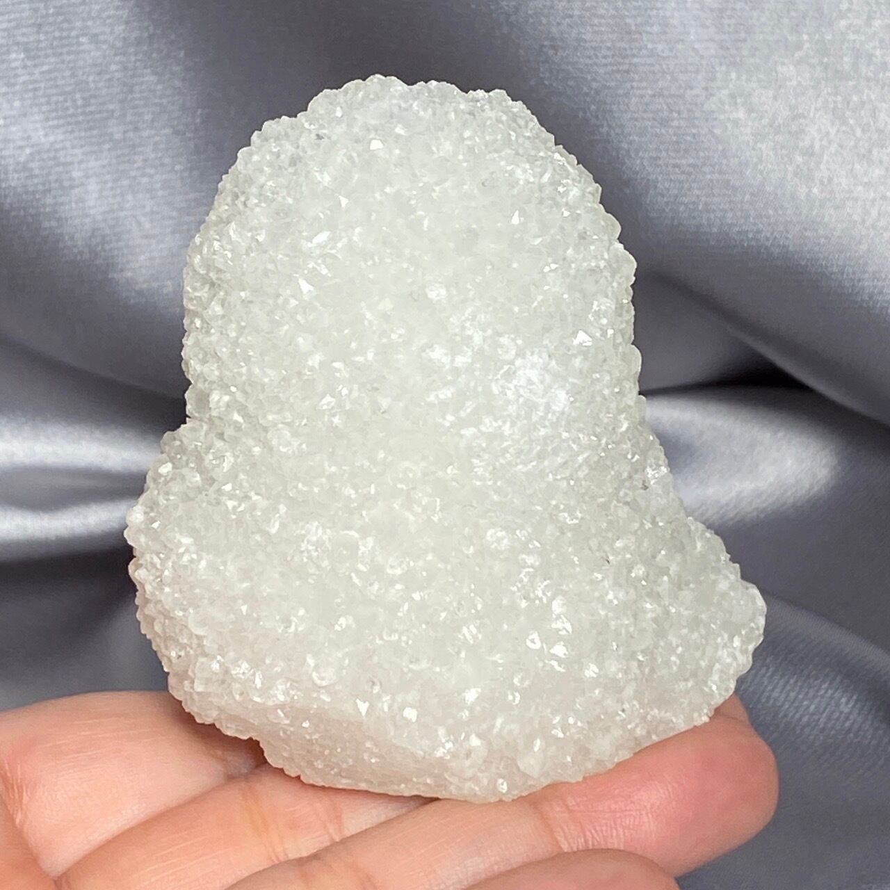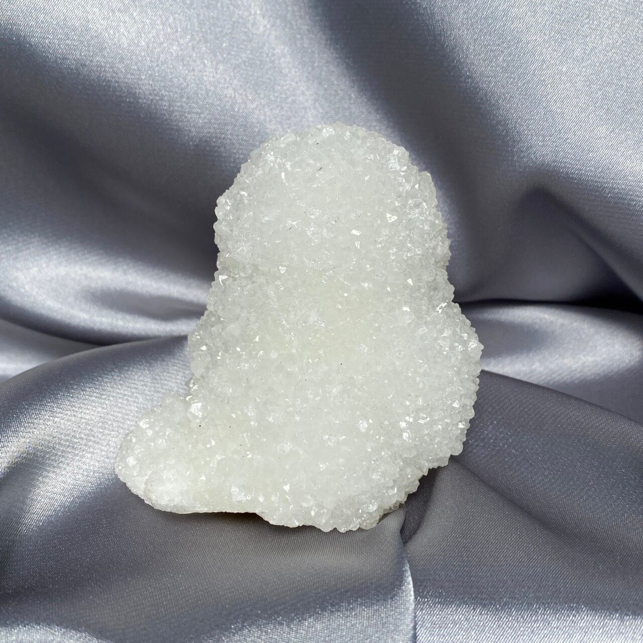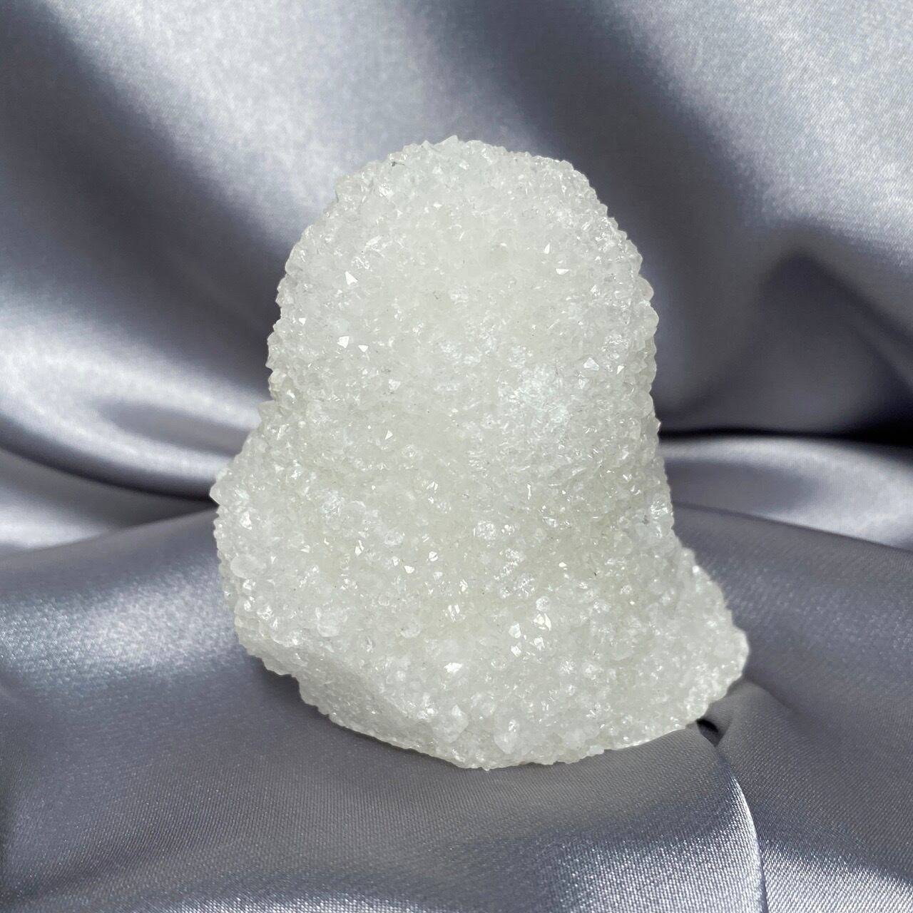 まるで砂糖菓子のようなクォーツで包まれた、スタラクタイトのスペシメン。そして雪だるまのような癒し系の形状♡この白い石を掌に置いて眺めているだけで優しさと愛情が心から放たれるような気がします。きらきらと優しい光が煌めきます。