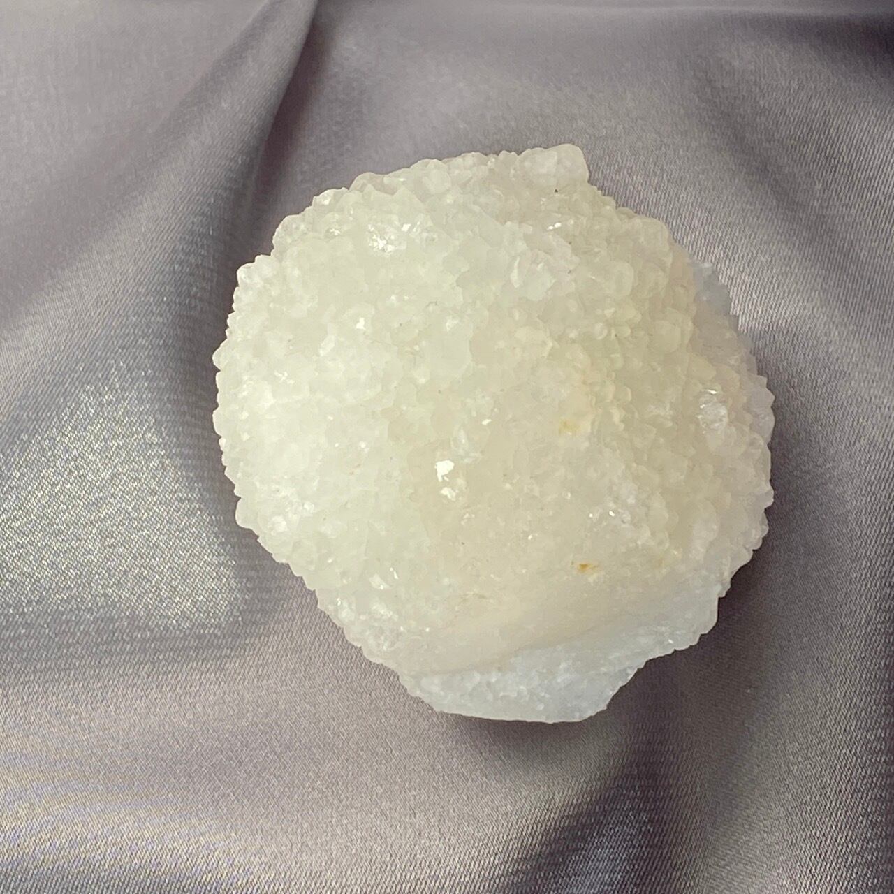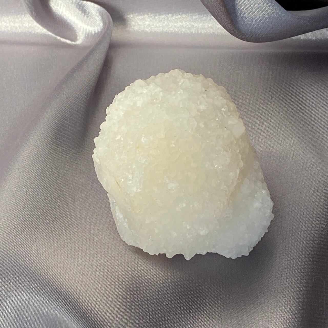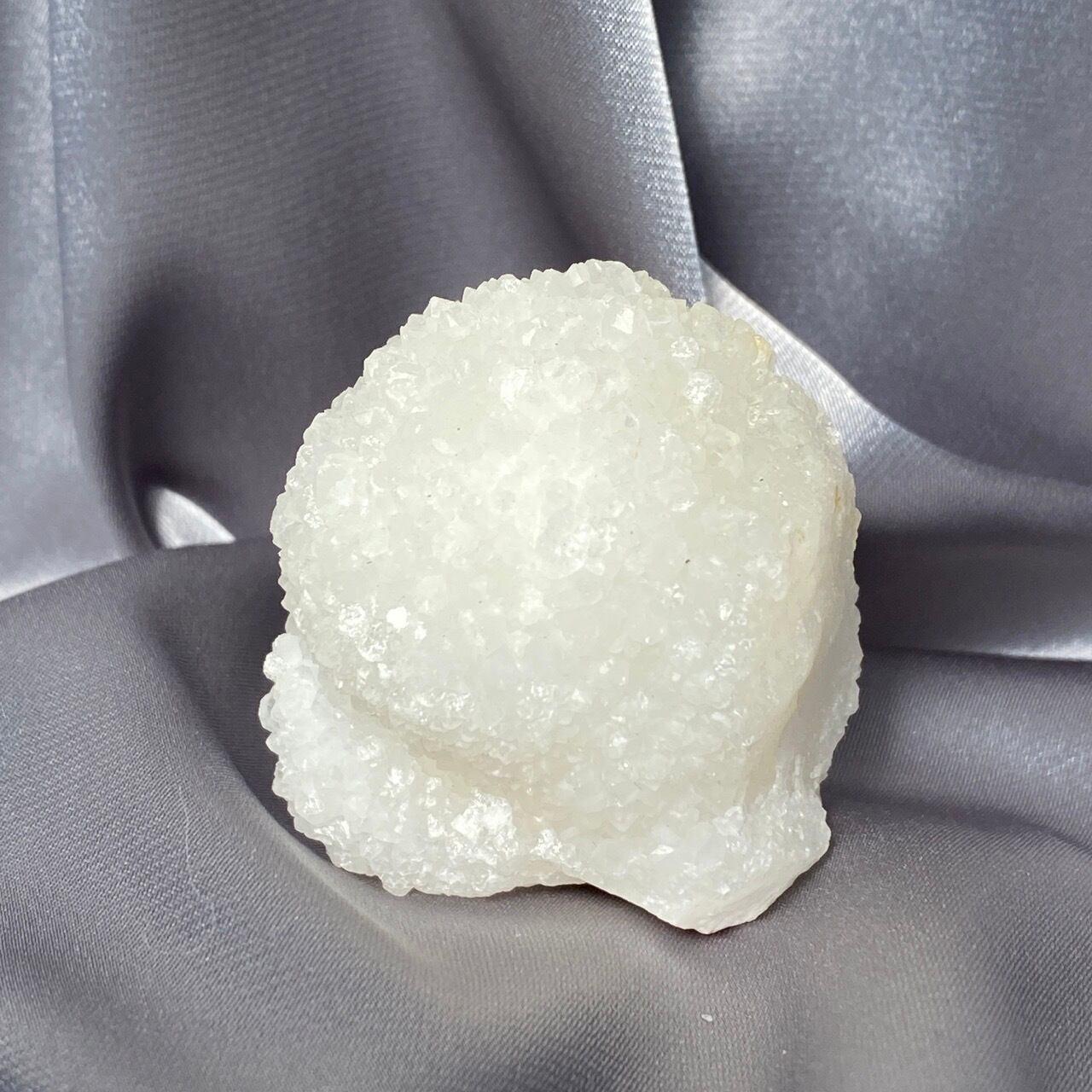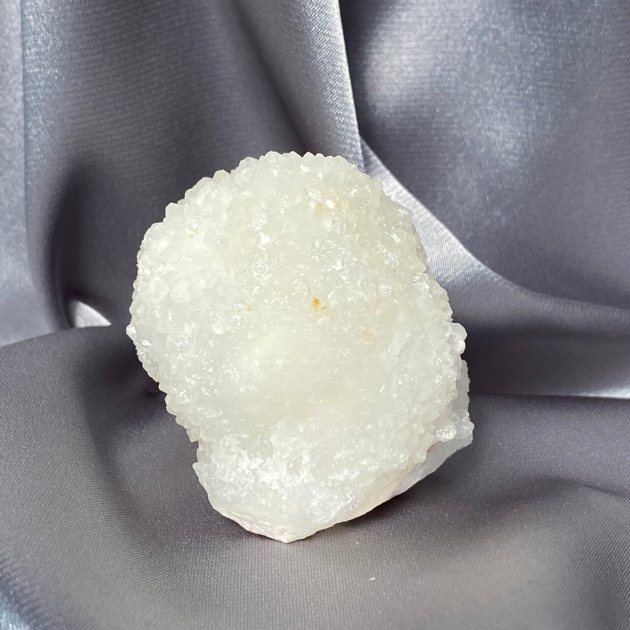 まるで砂糖菓子のようなクォーツで包まれた、カルセドニーのスタラクタイトのスペシメン。そして膨らんだ餅のような癒し系の見た目と形状♡石を掌に置いて眺めているだけで優しさと愛情が心から放たれるような気がします。きらきらと優しい光が煌めきます。