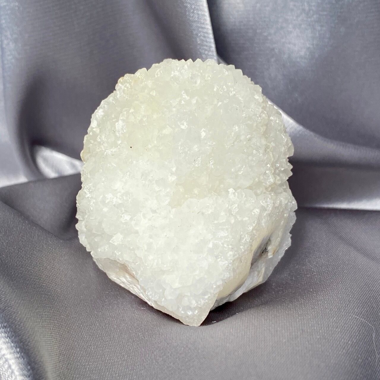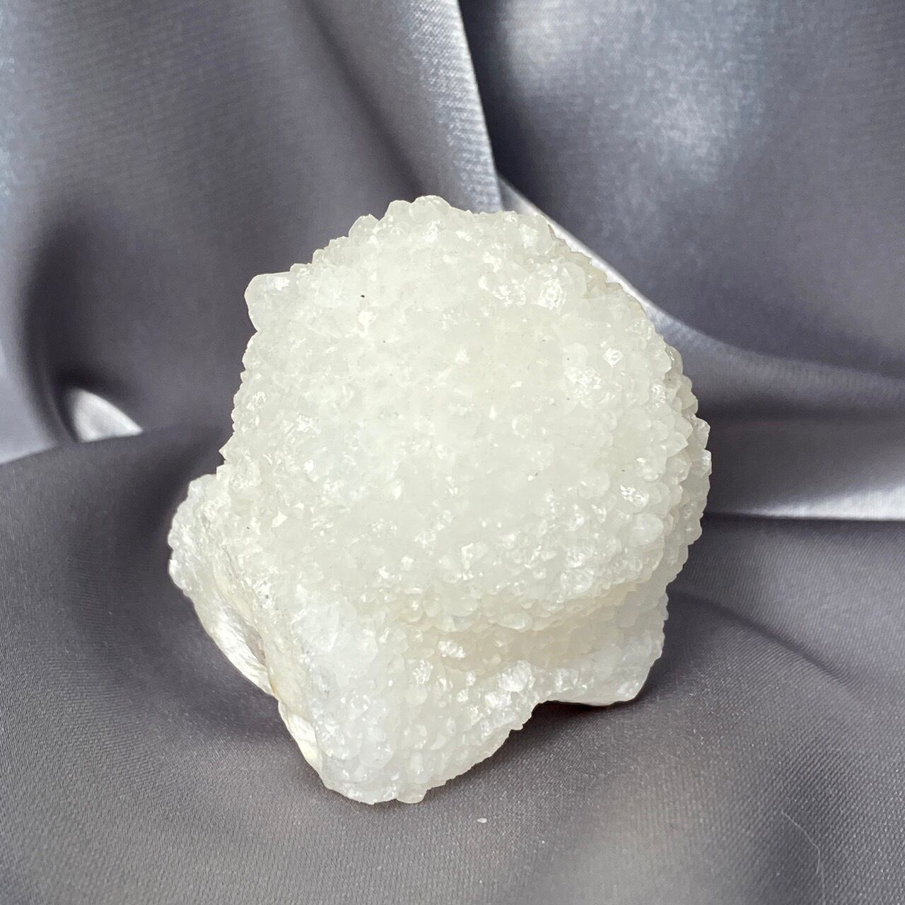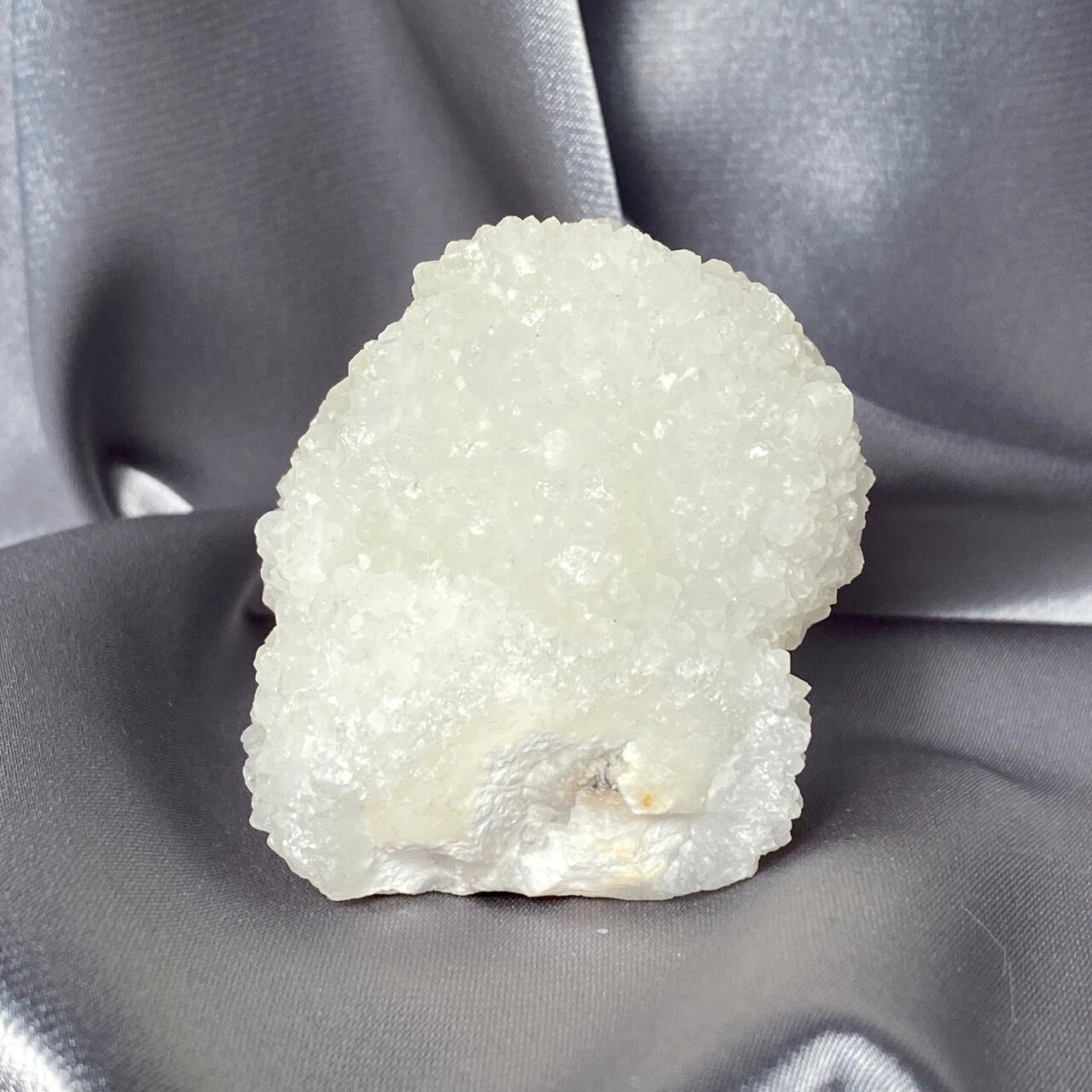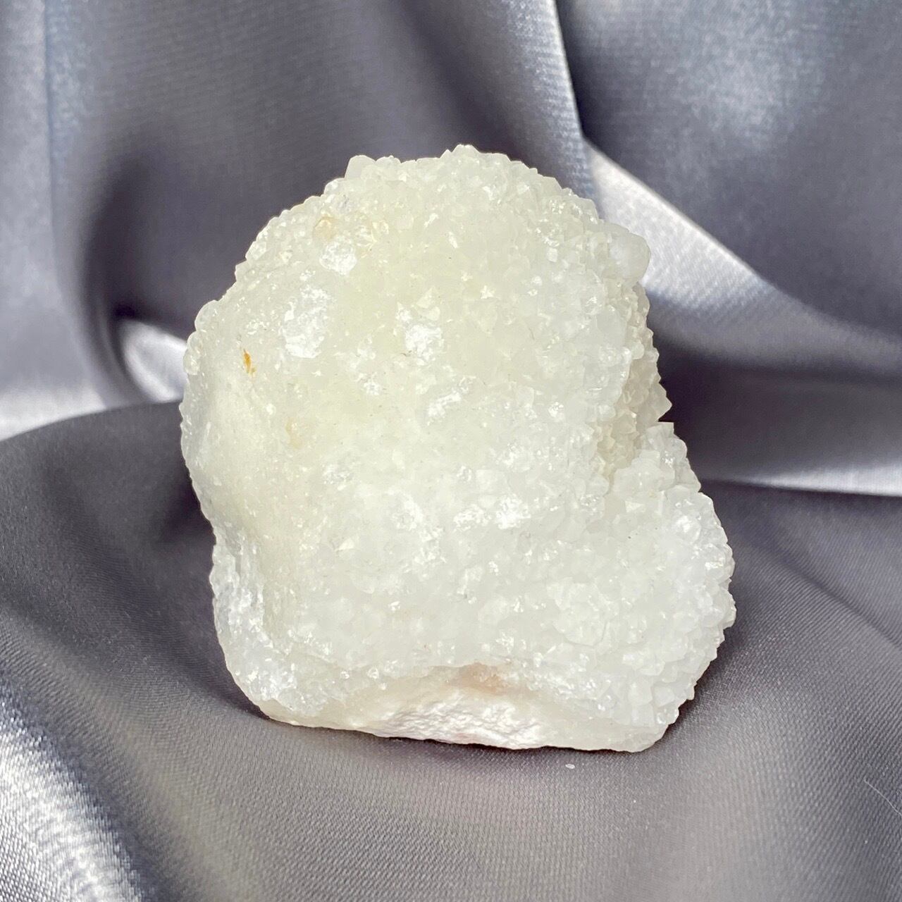 まるで砂糖菓子のようなクォーツで包まれた、カルセドニーのスタラクタイトのスペシメン。そして膨らんだ餅のような癒し系の見た目と形状♡石を掌に置いて眺めているだけで優しさと愛情が心から放たれるような気がします。きらきらと優しい光が煌めきます。