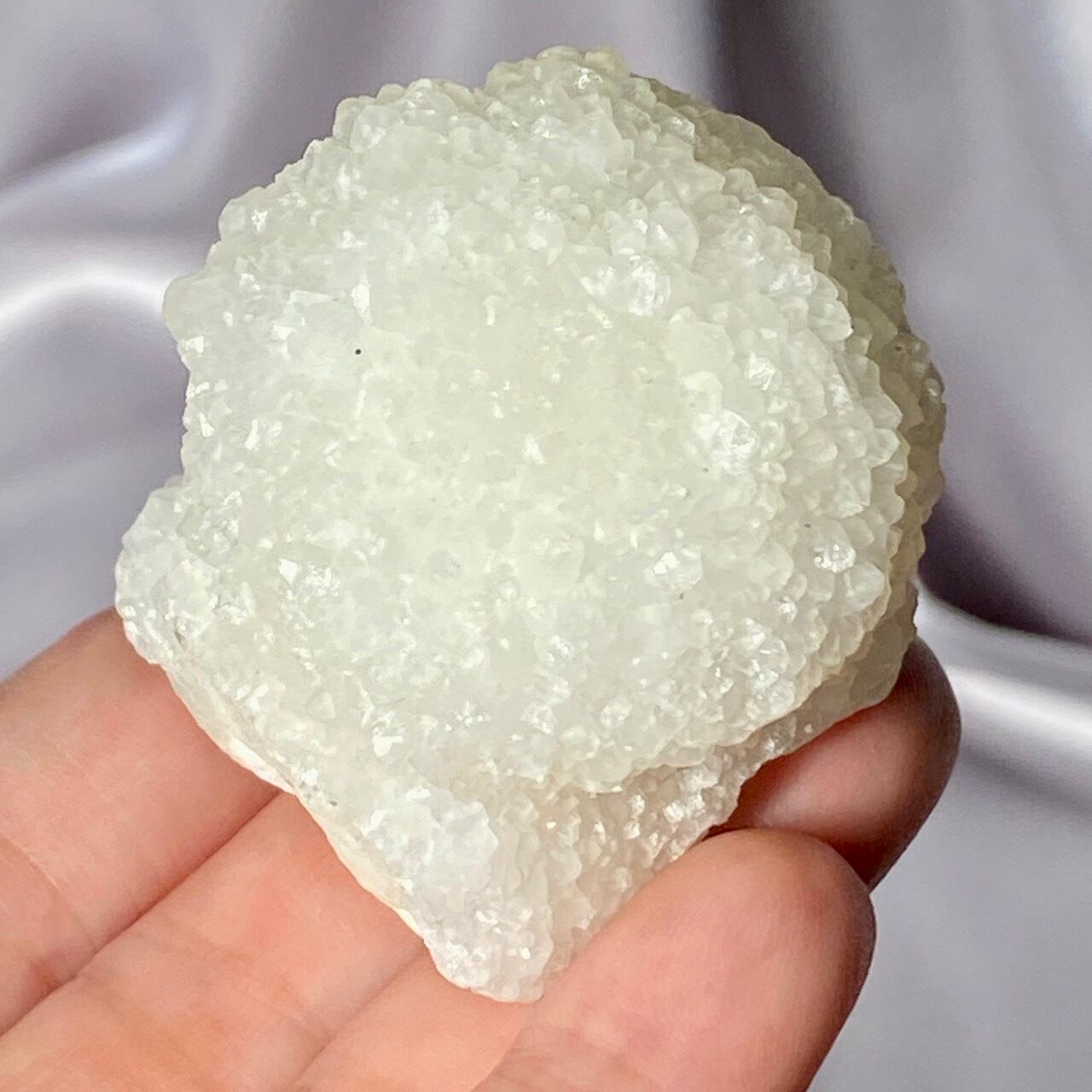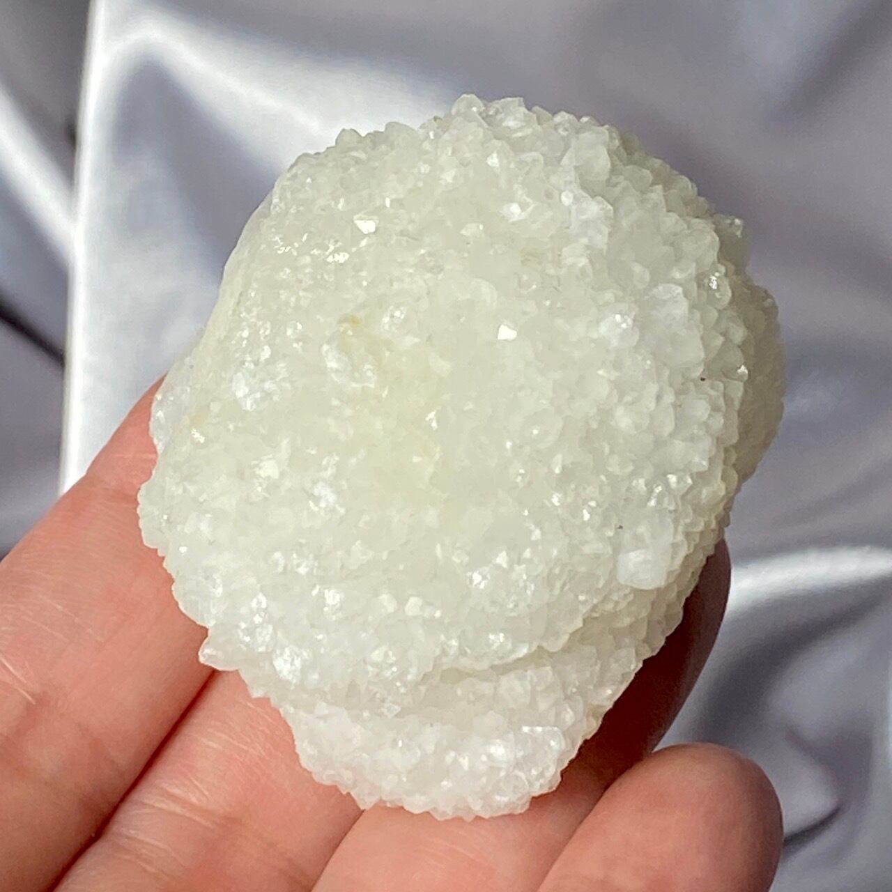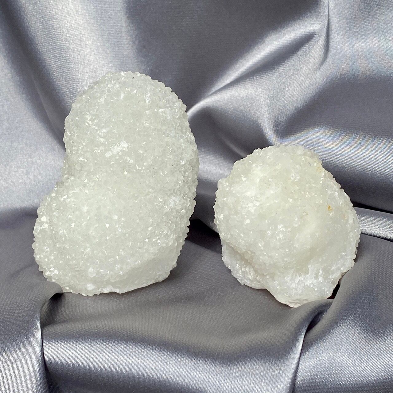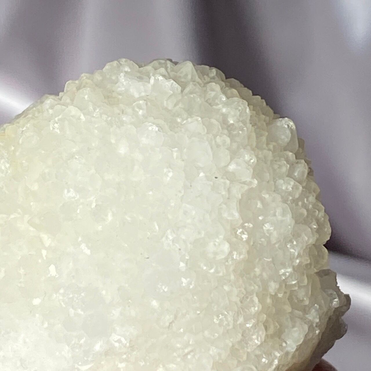 まるで砂糖菓子のようなクォーツで包まれた、カルセドニーのスタラクタイトのスペシメン。そして膨らんだ餅のような癒し系の見た目と形状♡石を掌に置いて眺めているだけで優しさと愛情が心から放たれるような気がします。きらきらと優しい光が煌めきます。