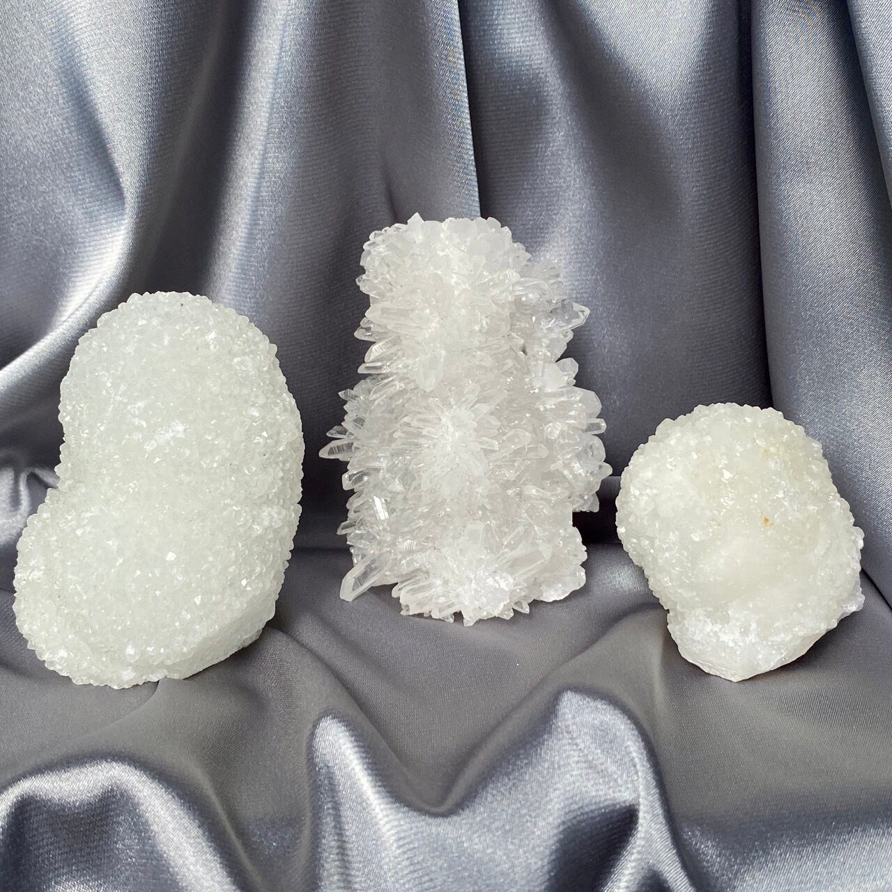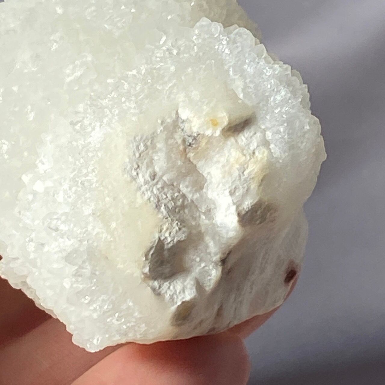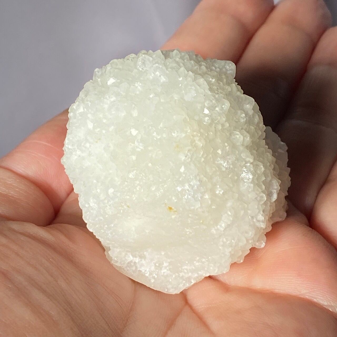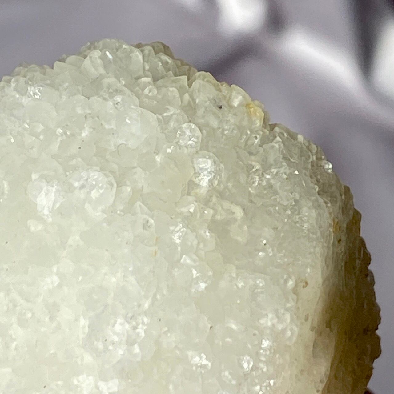 まるで砂糖菓子のようなクォーツで包まれた、カルセドニーのスタラクタイトのスペシメン。そして膨らんだ餅のような癒し系の見た目と形状♡石を掌に置いて眺めているだけで優しさと愛情が心から放たれるような気がします。きらきらと優しい光が煌めきます。