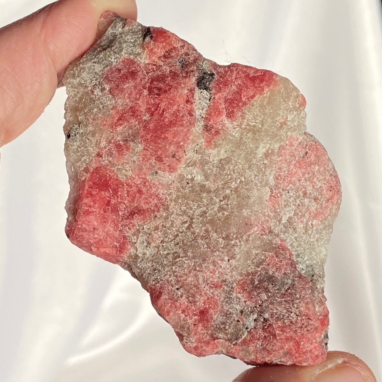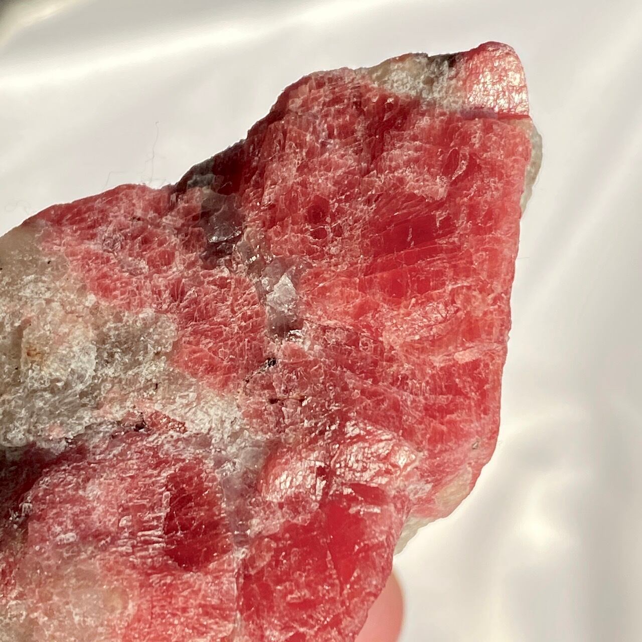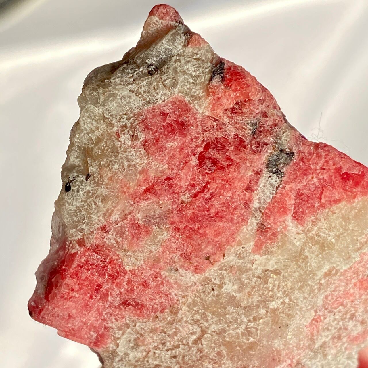 アメリカ産マトリックス付きロードナイトの原石になります。サプライヤーの新在庫の中でも、良質の証である色鮮やかで紅色が沢山入った子達を選びました。